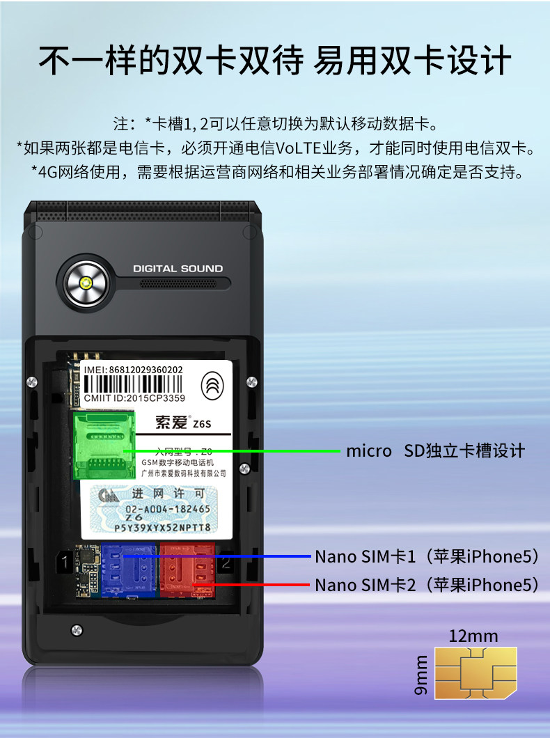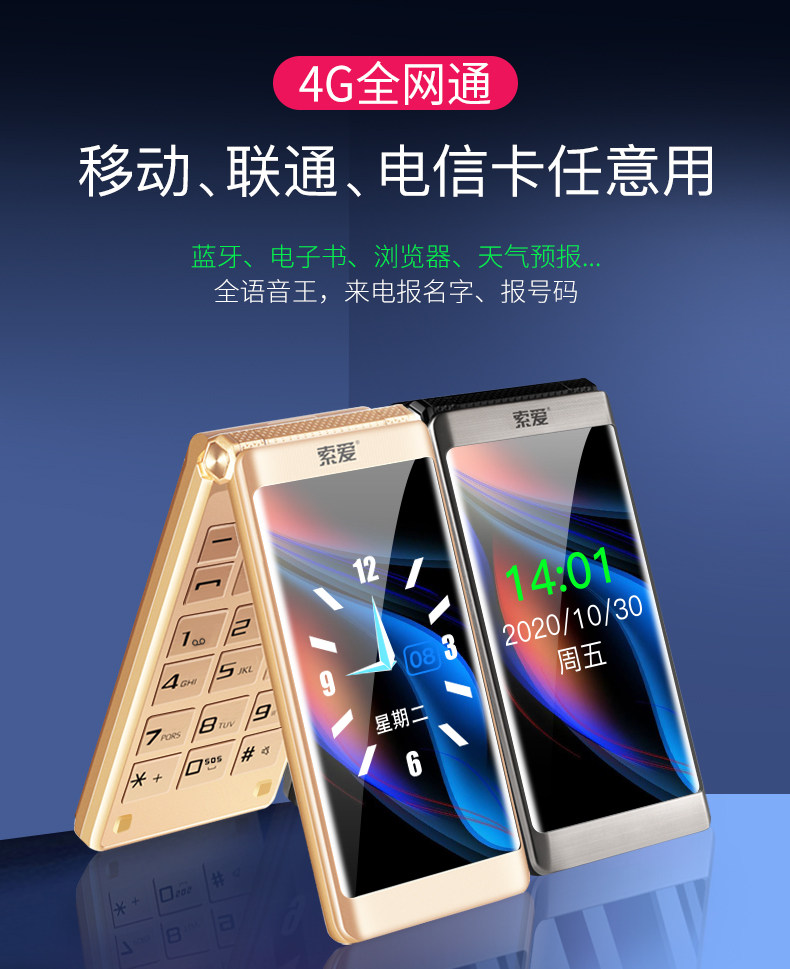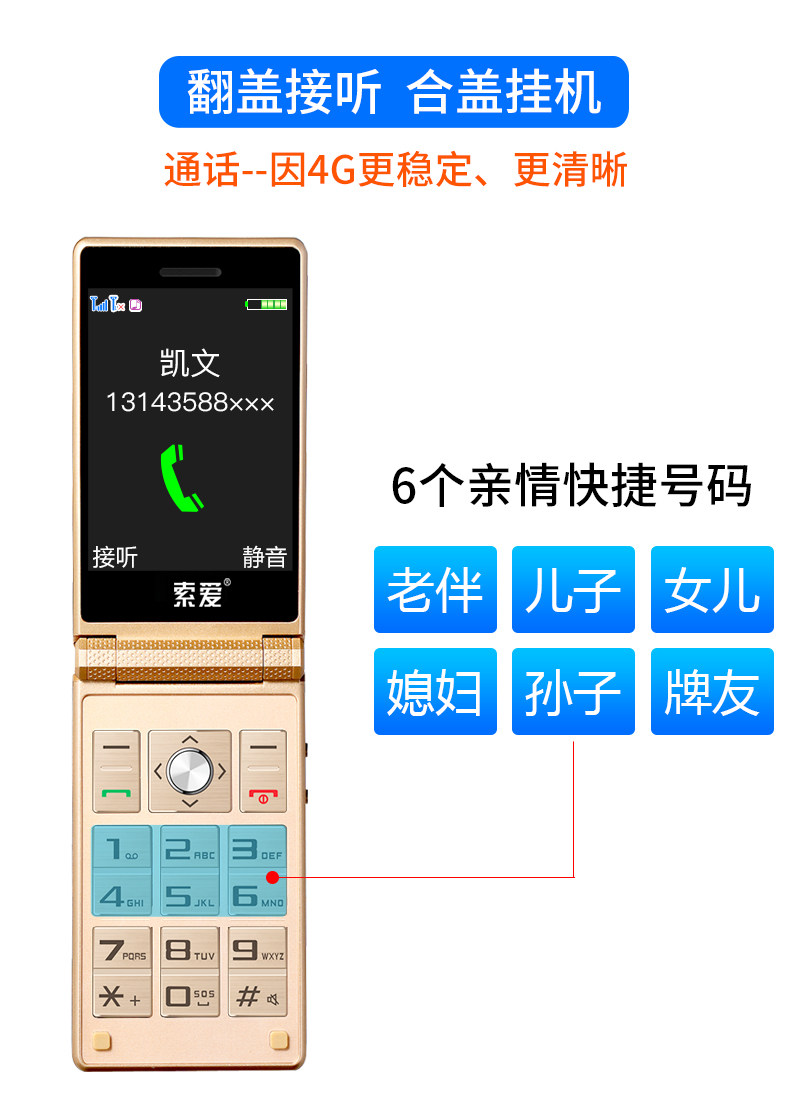 索爱 Раскладной сверхдлинный мобильный телефон для пожилых людей подходит для мужчин и женщин, Z6, функция поддержки всех сетевых стандартов связи, 4G, 4G, бизнес-версия