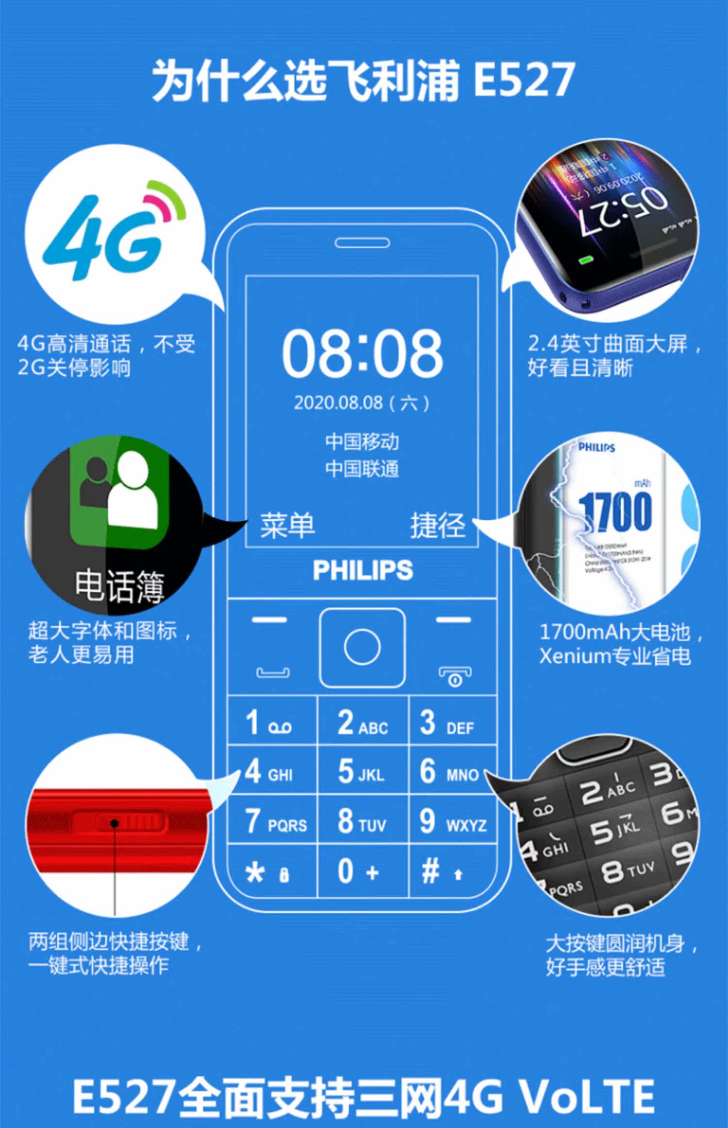 Philips, электронный сверхдлинный экран для пожилых людей, модный мобильный телефон, bluetooth, 4G, E527, функция поддержки всех сетевых стандартов связи, 4G, широкий экран, звуковая система, официальный флагманский магазин
