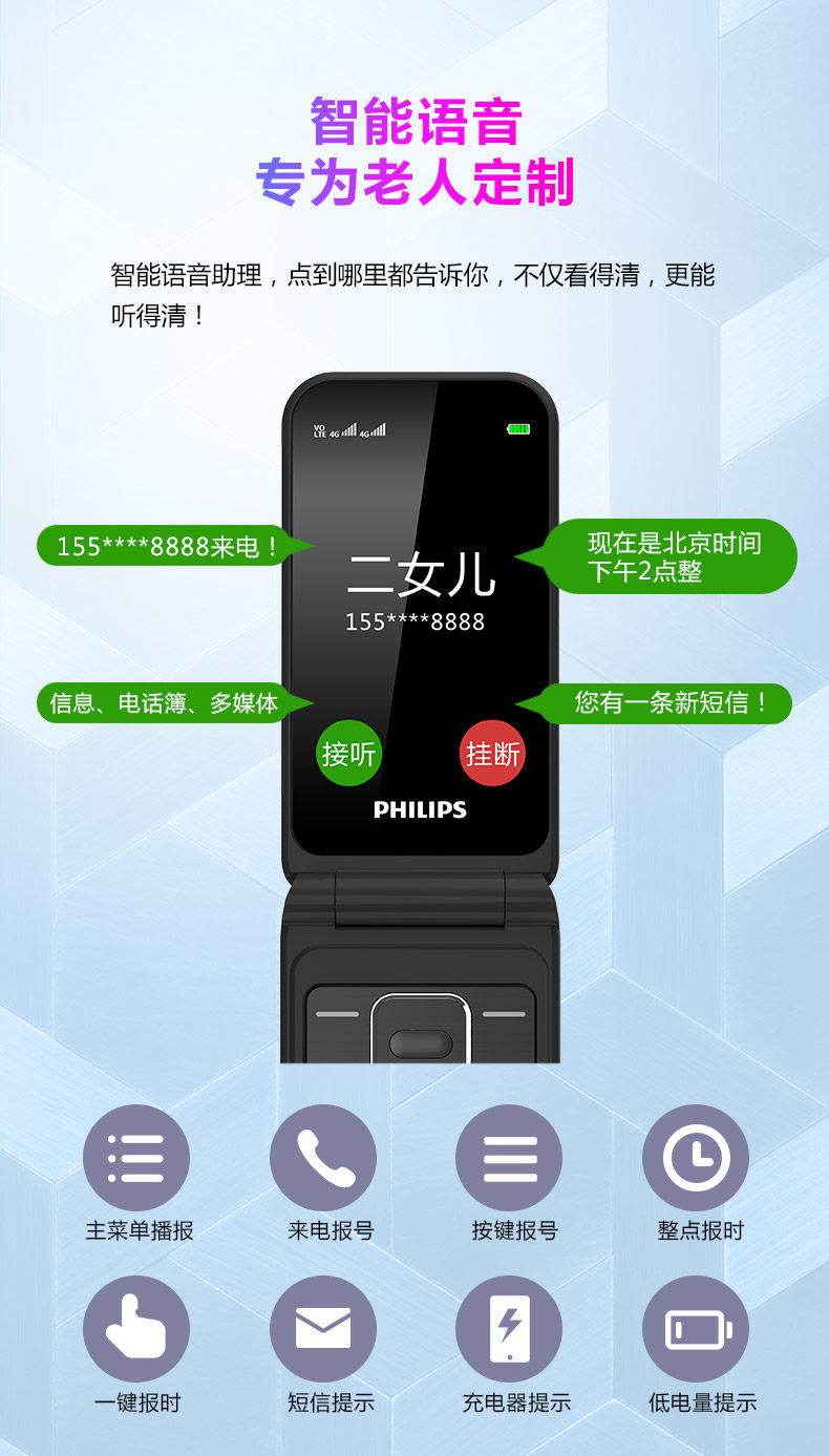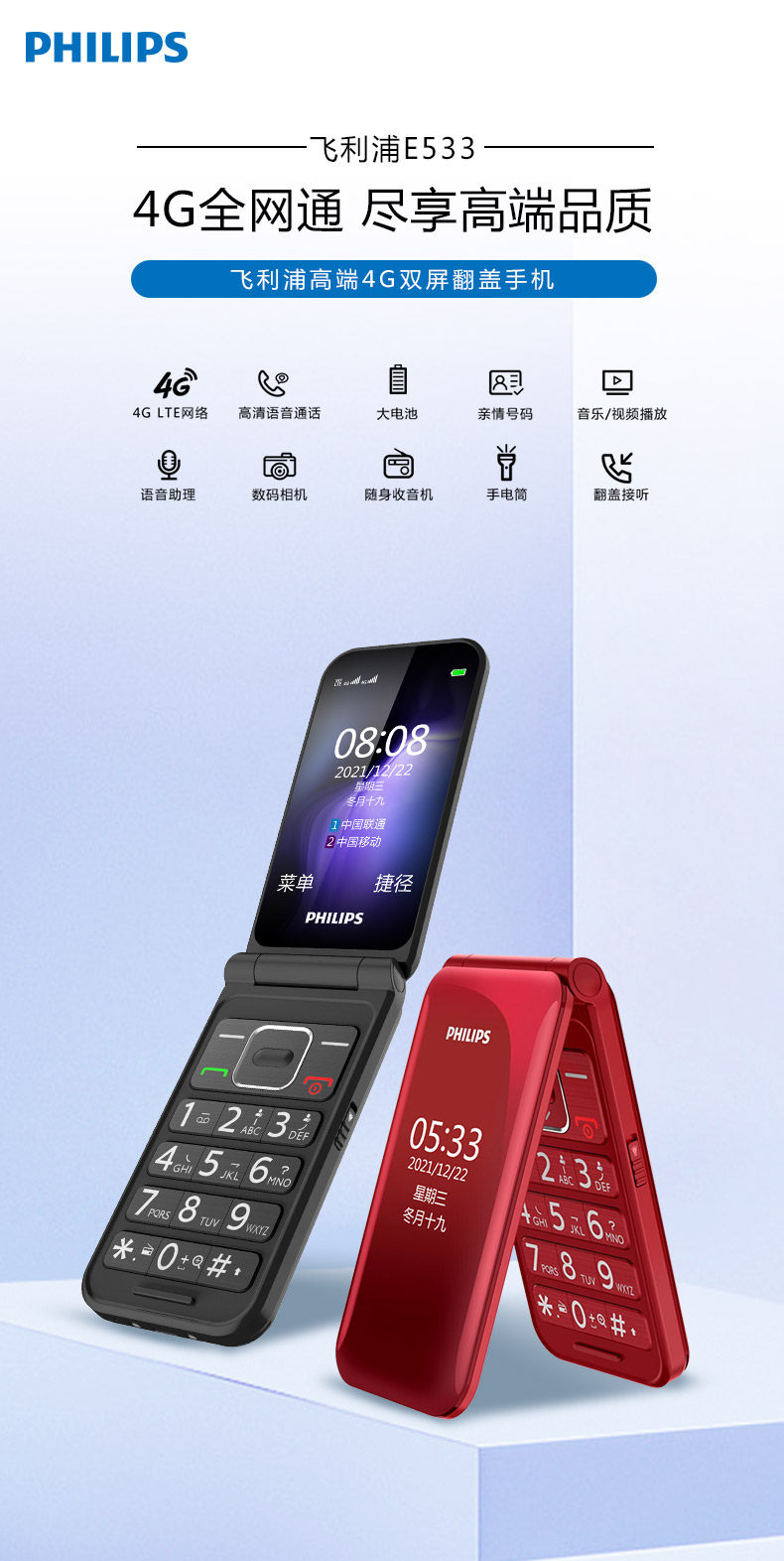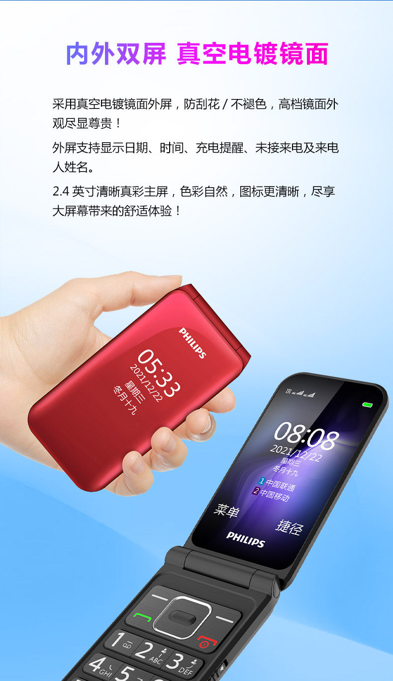 Philips, раскладной мобильный телефон для пожилых людей, сверхдлинный экран, официальный флагманский магазин, E533, 533шт, 4G, функция поддержки всех сетевых стандартов связи, широкий экран, звуковая система