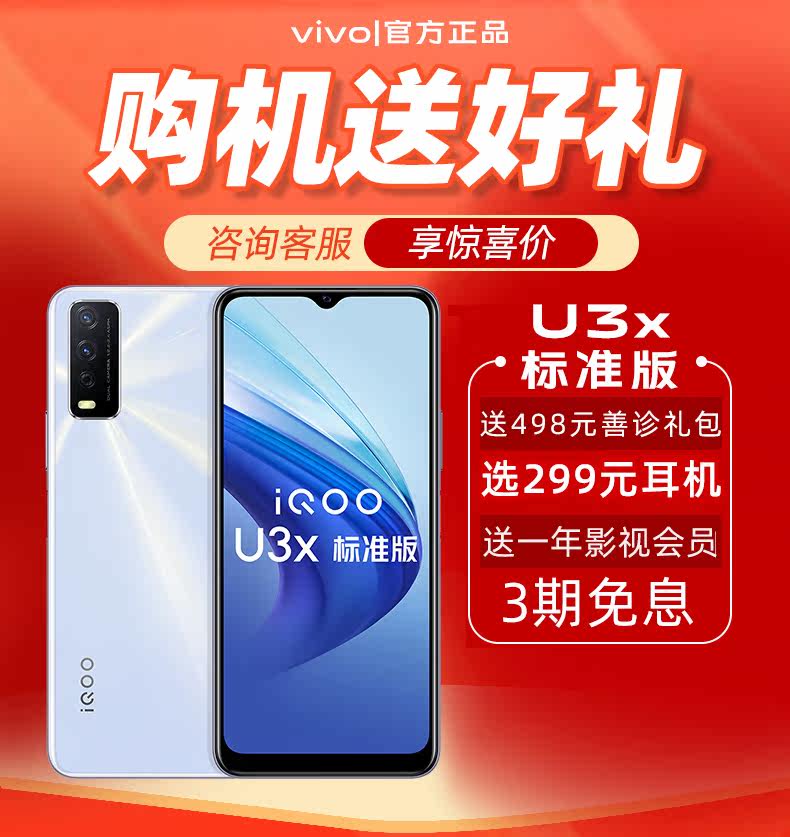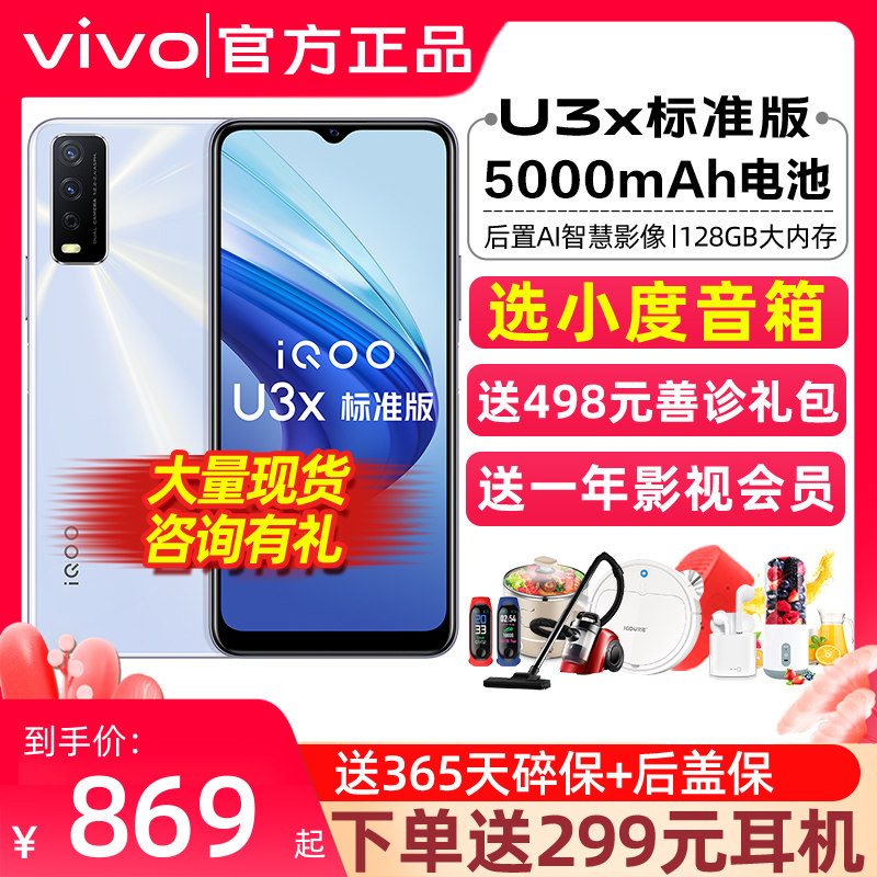 Дайте 299 наушников Yuan Vivo IQOO U3X Стандартная версия мобильного телефона vivoiqoou3x vivou3x мобильный телефон vivou3 iq00 iqoou3 vivo официальный флагманский магазин