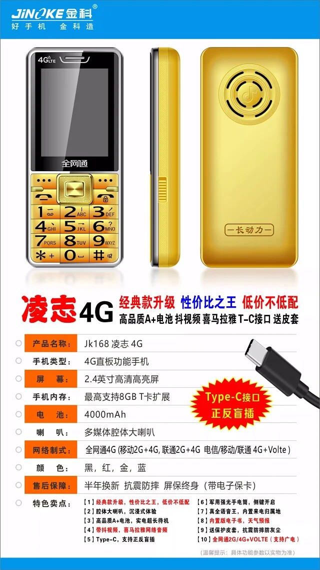 Golden KE JK168 Full NetCom 4G Mobile Unicom True Full Voice King Function Big Batter Battery Гималайский телефон