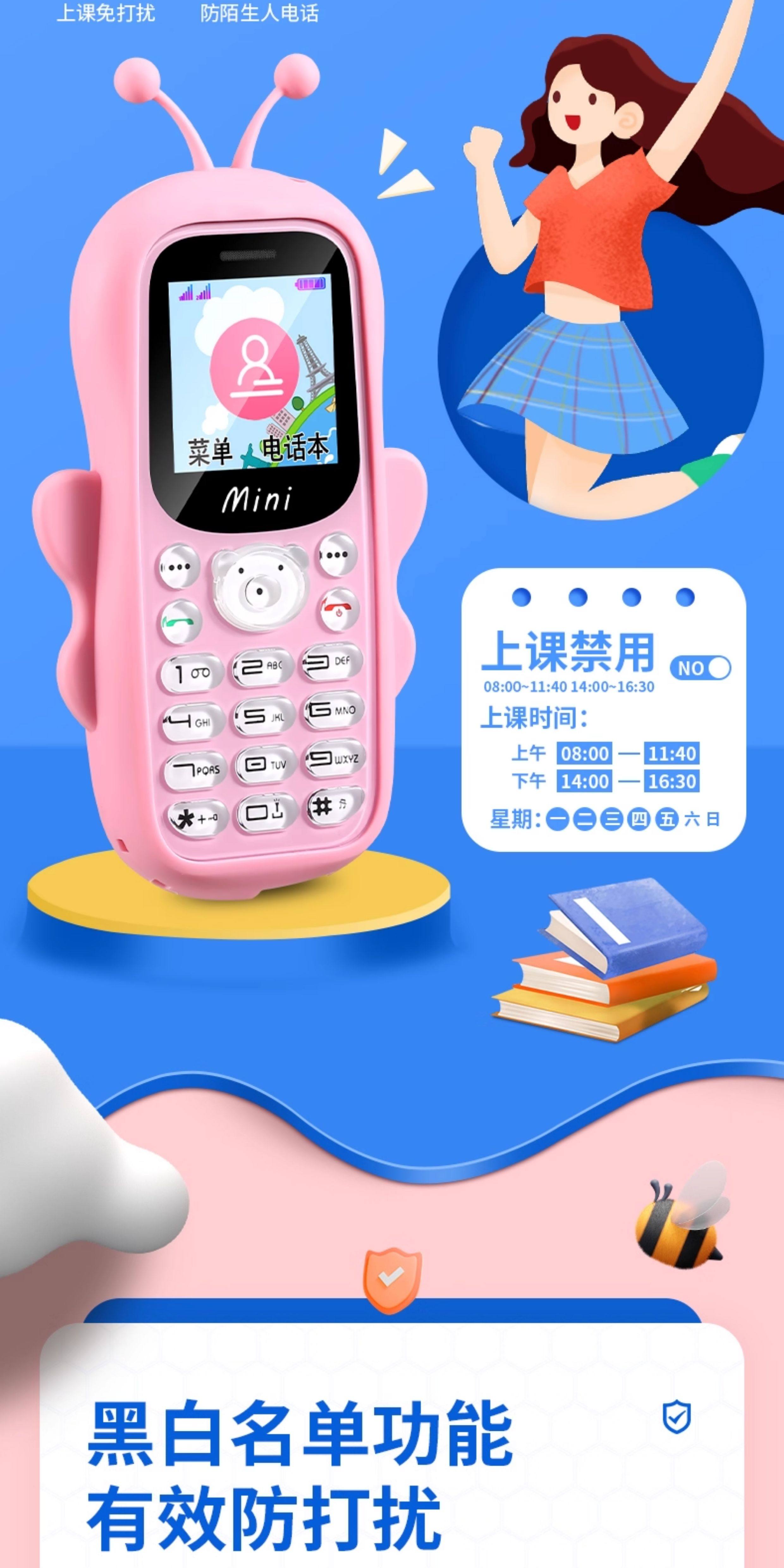 Мультяшный маленький мобильный телефон для школьников подходит для мужчин и женщин для пожилых людей, 4G, функция поддержки всех сетевых стандартов связи, функция контроля интернет-зависимости