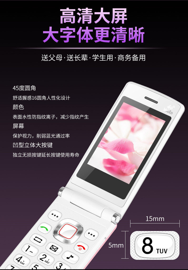 Раскладной мобильный телефон для пожилых людей подходит для мужчин и женщин, 4G, G5, 5G, функция поддержки всех сетевых стандартов связи, широкий экран