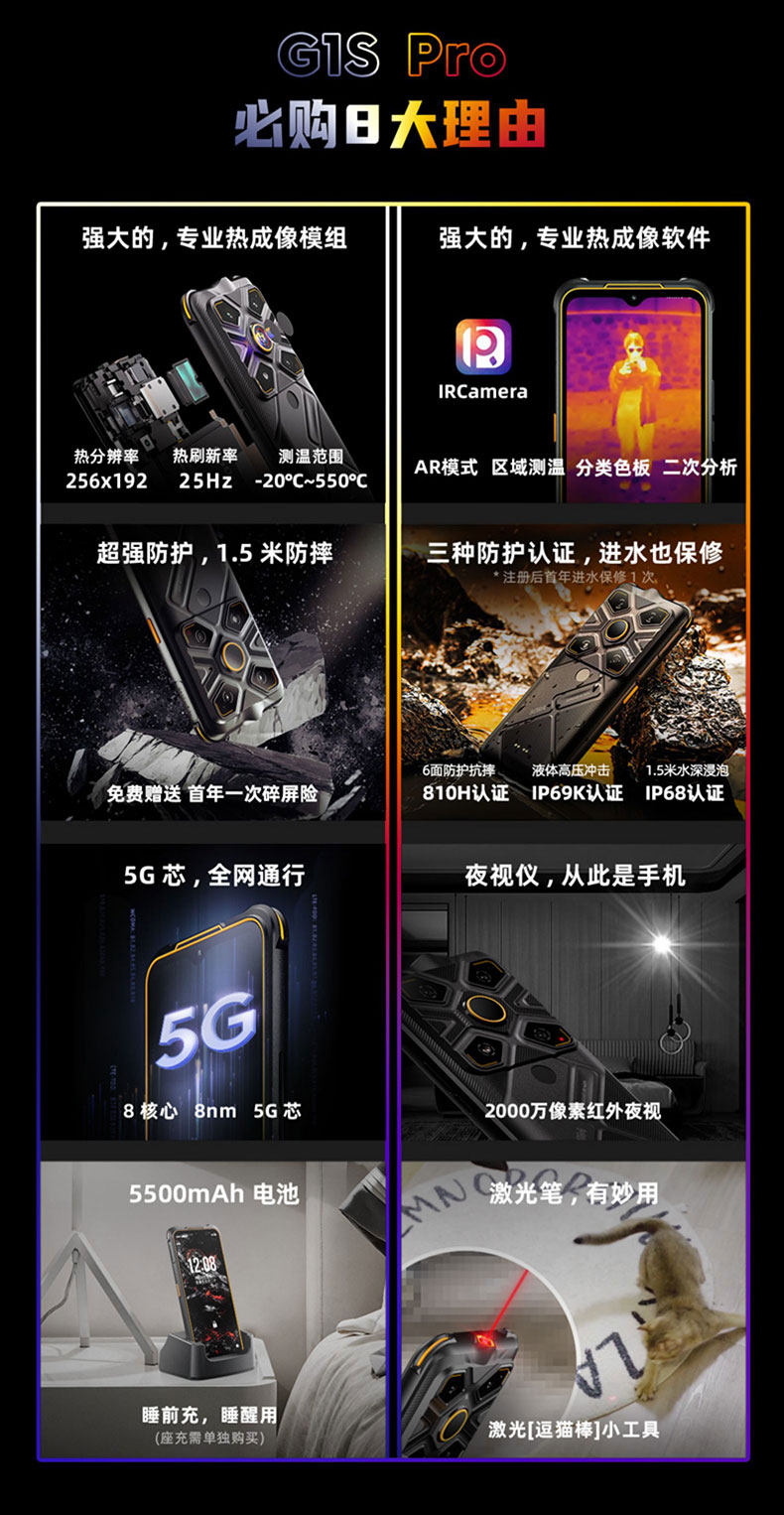 AGM(手机) G1S Pro Трехсторонняя инфракрасная термическая визуализация 5G Интеллектуальная высокопроизводительная визуализация Полная сеть водонепроницаемая P68