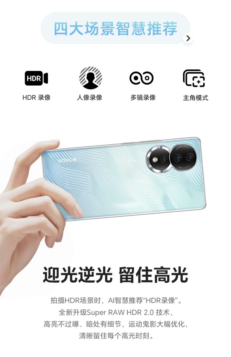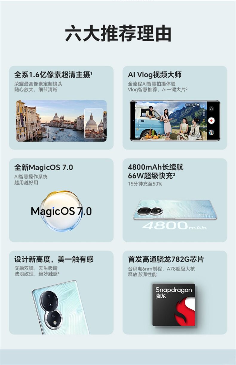 Честь 80160 миллионов пикселей супер -клейрная основная фотография AI Vlog Master New Magic OS 7.0 System 5G Мобильный телефон 8 ГБ+256 ГБ Blue Wave Micro Blue