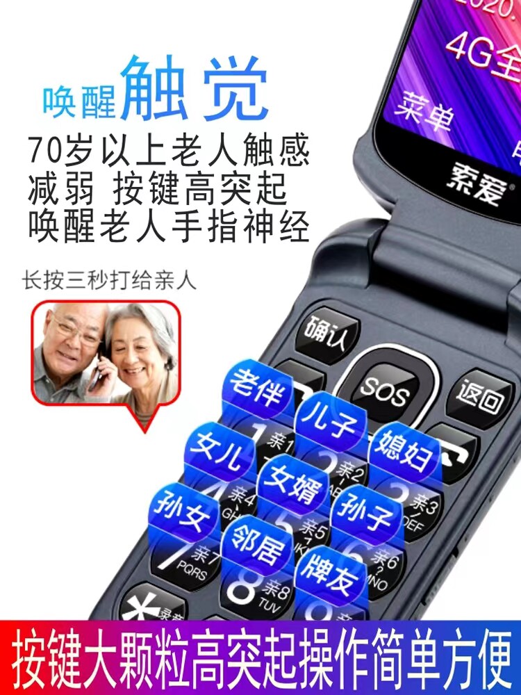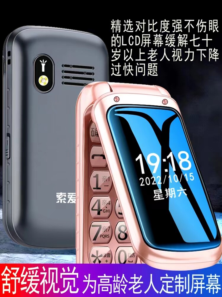 索爱 Раскладной сверхдлинный очень большой мобильный телефон для пожилых людей, коллекция 2022, широкий экран, звуковая система