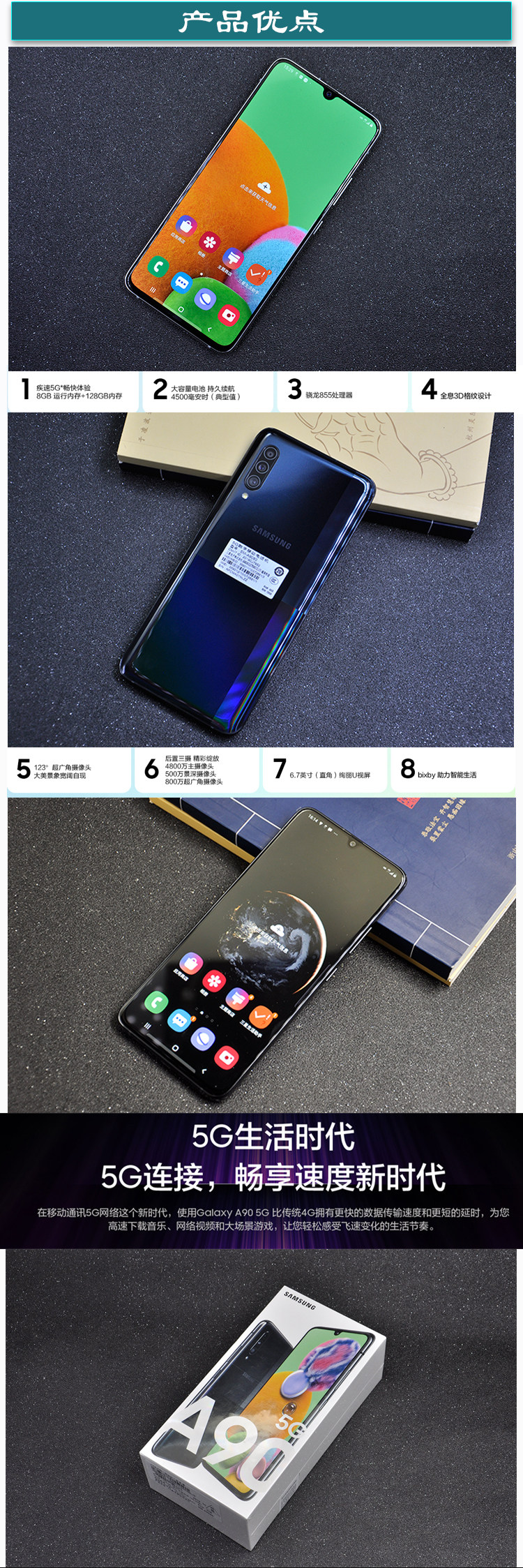 Samsung/三星 Мобильный телефон, A90, 5G, A9080, функция поддержки всех сетевых стандартов связи, 5G