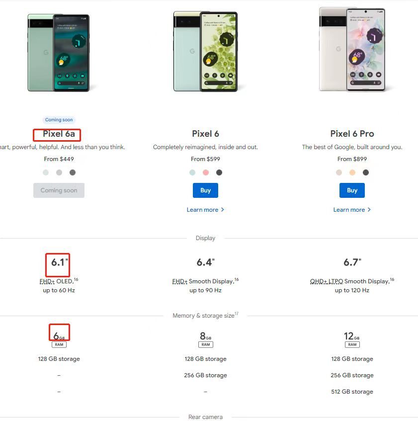 Конкретные параметры Google Pixel 6a указаны на официальном сайте.