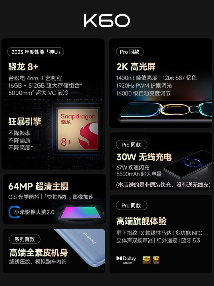 MIUI/小米 Redmi K60 Полный экран 5G мобильный телефон отпечаток пальцев Snapdragon 8+GNE1 Redmi K60Pro