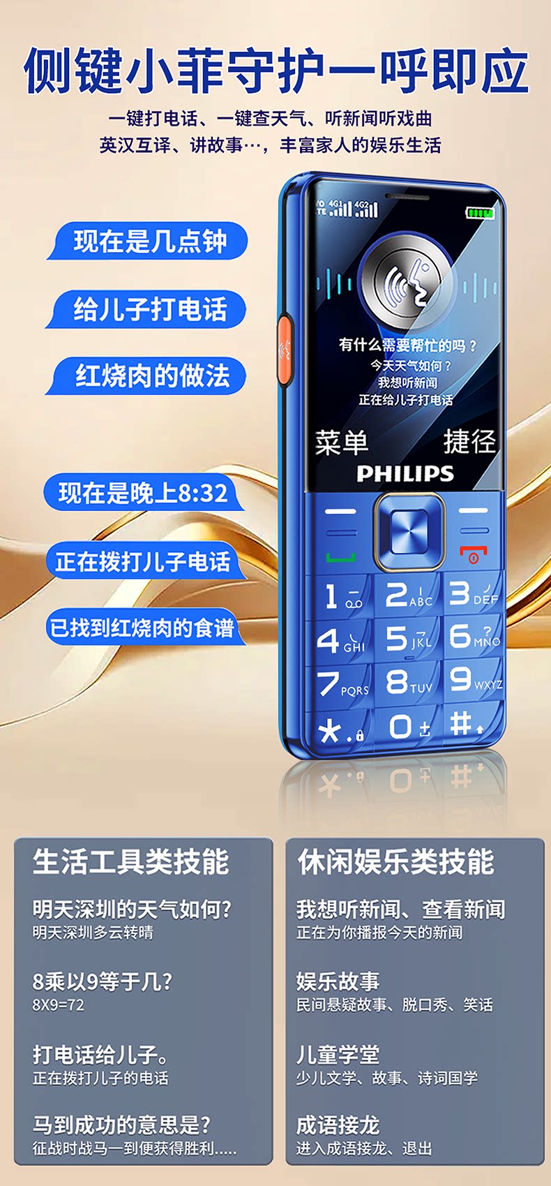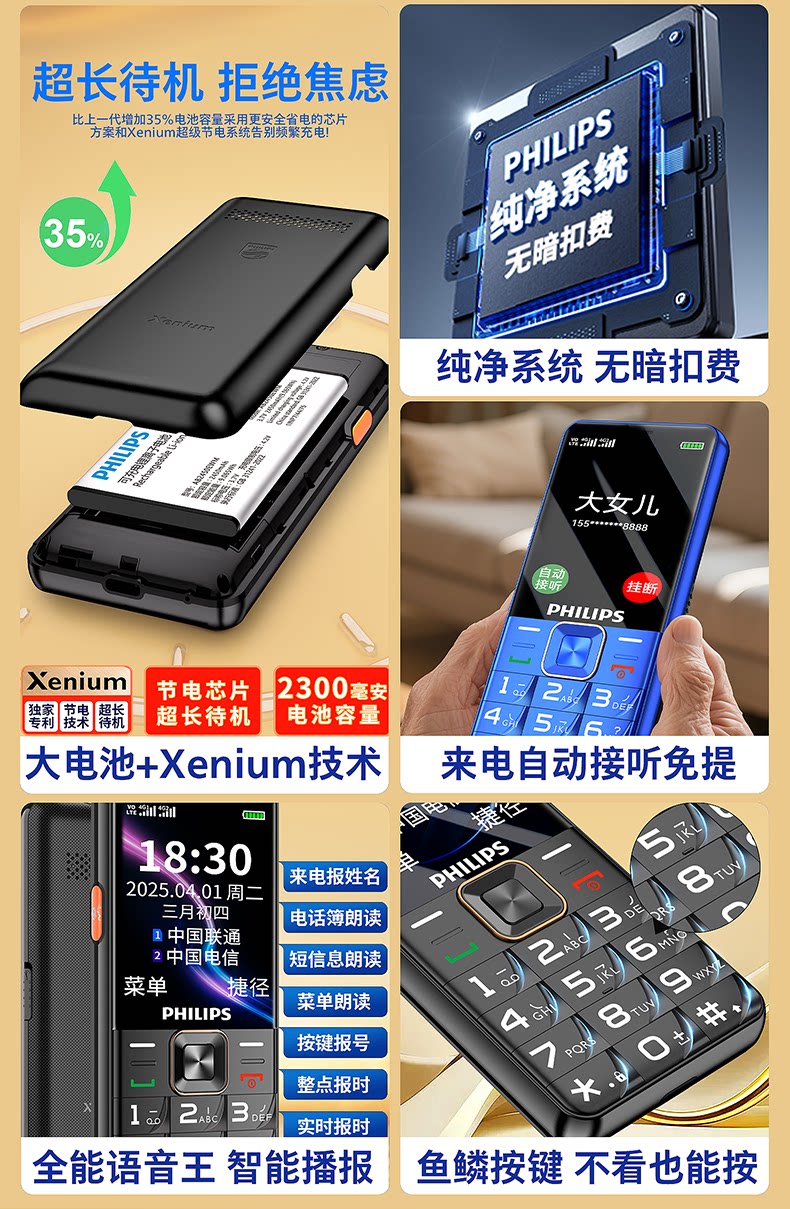 Philips, мобильный телефон для пожилых людей, сверхдлинный умный экран подходит для мужчин и женщин для школьников, официальный флагманский магазин, новая коллекция, 4G, функция поддержки всех сетевых стандартов связи, широкий экран, звуковая система