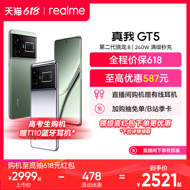 [Наслаждайтесь 6 беспроцентными периодами в 20:00 17-го числа] Новый флагманский телефон Realme GT5, игровой телефон Snapdragon 8 второго поколения, полностью заряжаемый за секунды, конкурентоспособный прямой экран, официальный аутентичный мобильный телефон gt5