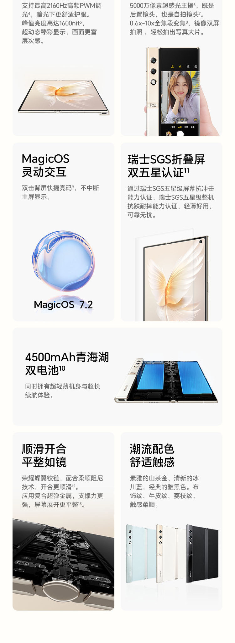 Honor, складной бумажник, сверхлегкий легкий и тонкий мобильный телефон, камера из провинции Цинхай, батарея, официальный сайт, складывающийся экран, 5G, 8.6мм, защита глаз, широкий экран