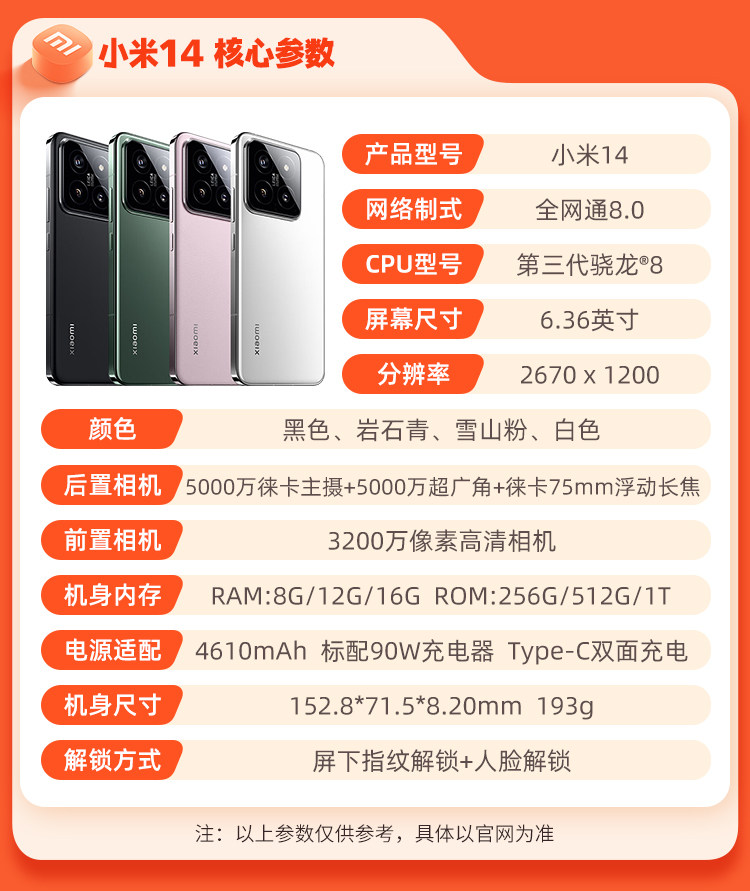 MIUI/小米 Xiaomi 14 оригинальный подлинный смартфон 5G Xiaomi Snapdragon 8GEN3 Leica с камерой