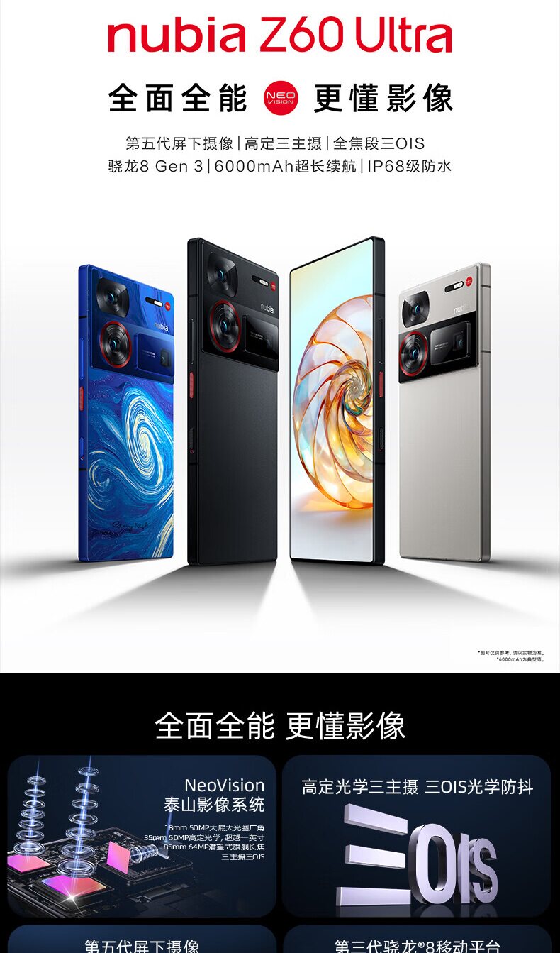 Nubia/Nubia Z60 Ultra Under-Ecrree Camera Camera Snapdragon 8 5G Мобильный телефон