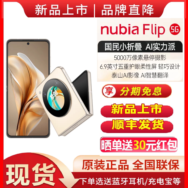 Скорость пятна /процент -Free /Nubia Nubia flip5g Небольшой складной подвеска Фотография 50 миллионов пикселей AI Smart Translsion 6.9 -INCH Eye Screen Официальный флагманский магазин Новый мобильный телефон Flip
