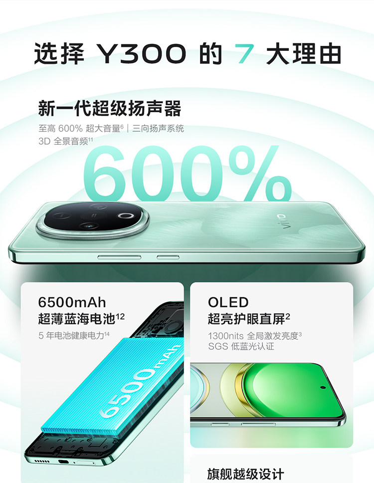 [National Subsidy + Platform Subsidy] Vivo Y300 Новый мобильный телефон Супер динамик длинная батарея с большим памятью, противоположная защита глаз Прямой экран Официальный сайт Студенческий мобильный телефон Официальный веб-сайт y300pro