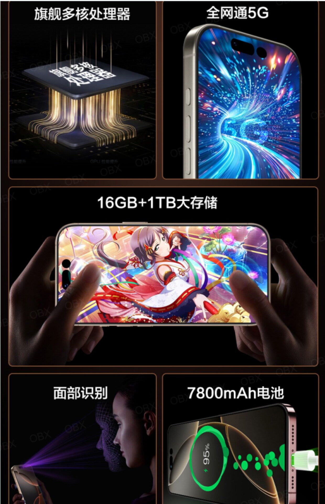 | Внутренняя память телефона: | 12GB+256GB, 16GB+512GB, 16GB+1TB |