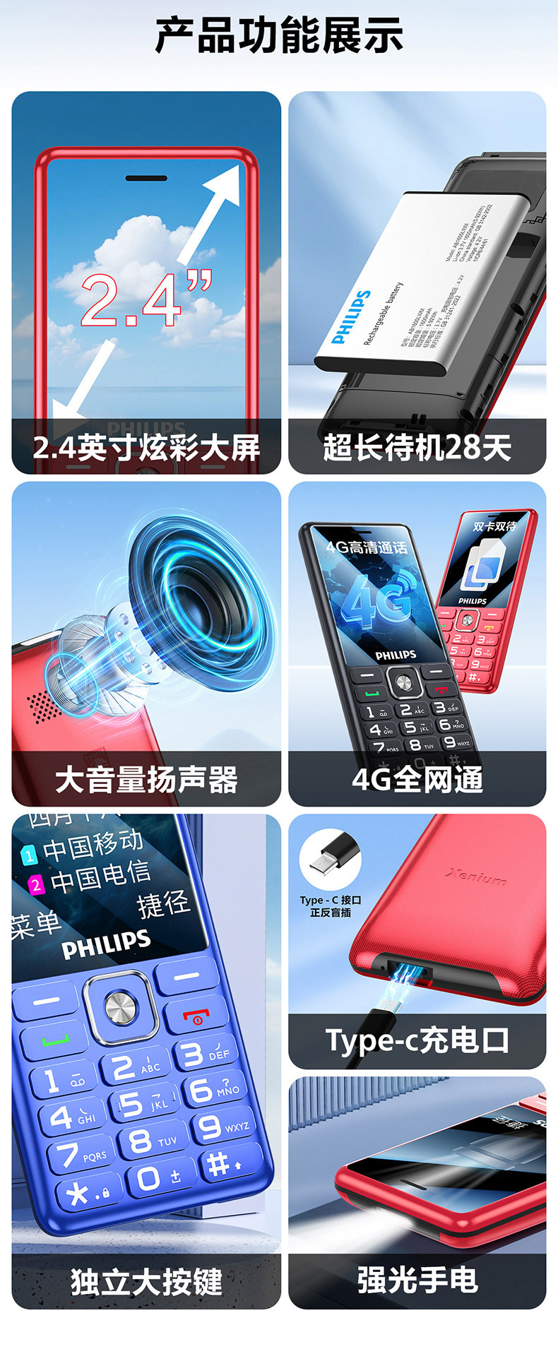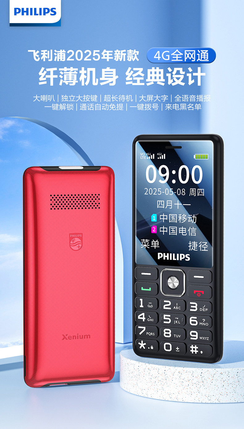 Philips, сверхдлинный мобильный телефон для пожилых людей для школьников, официальный флагманский магазин, 4G, функция поддержки всех сетевых стандартов связи, E539, 539A, официальный продукт, широкий экран, звуковая система