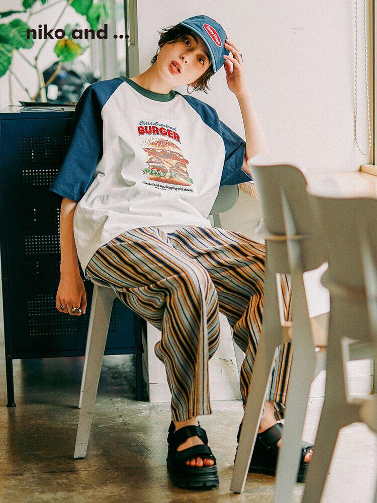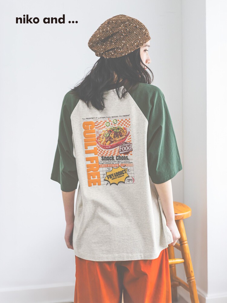 niko and ... Футболка женская, лето 2026, новый стиль, хлопковый реглан с принтом, топ со средними рукавами, 654215