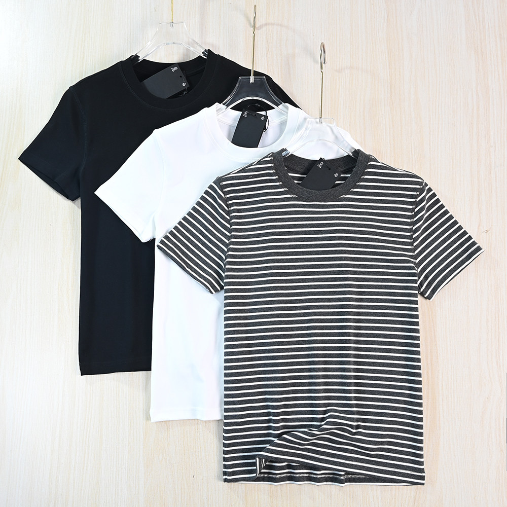Комфортная эластичная футболка с коротким рукавом с круглым воротником, облегающий крой