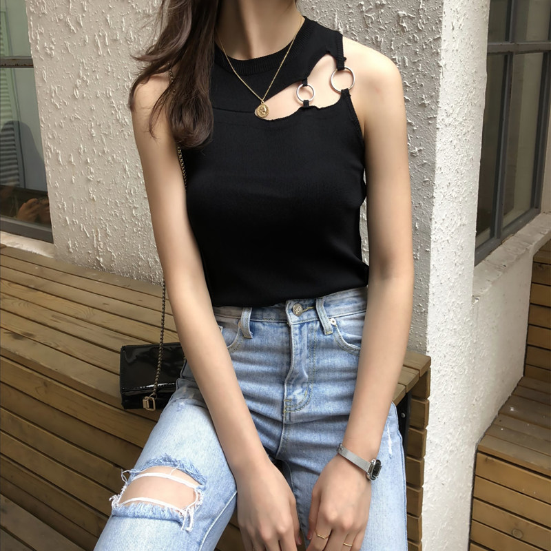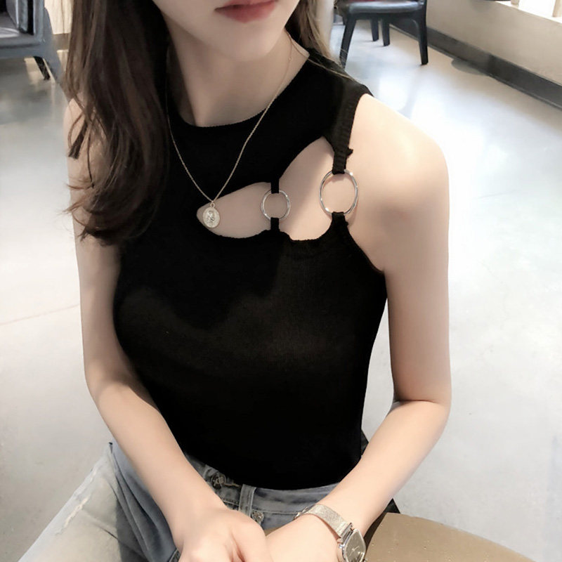 Дизайнерская майка топ, базовый трикотажный костюм без рукавов, французский стиль, тренд сезона