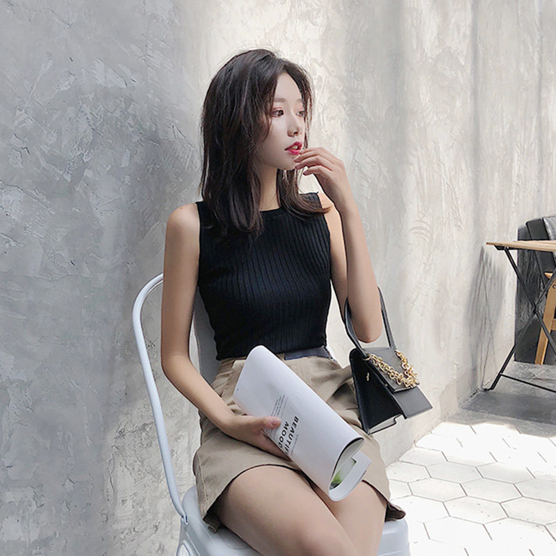Летняя летняя одежда, трикотажная майка топ, белье для повседневной носки без рукавов, базовая футболка