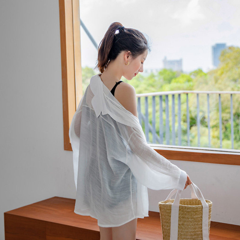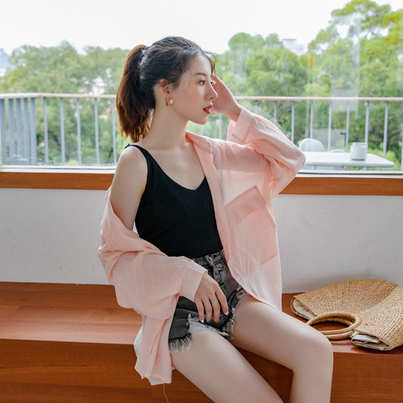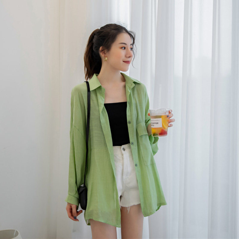 Рубашка, летняя одежда для защиты от солнца, куртка для школьников и студентов, из хлопка и льна, 2019, популярно в интернете, свободный крой, в корейском стиле