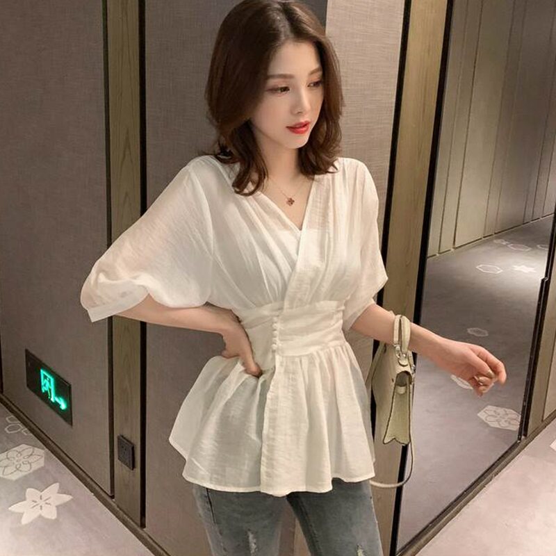 Модный топ в середине рукава летом 2020 г. Новая женская одежда Трендовая супер-сказочная универсальная рубашка с 7-четвертью рукав