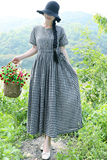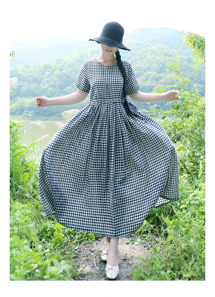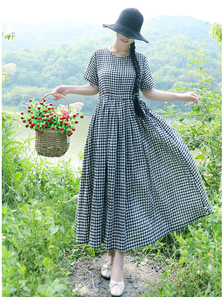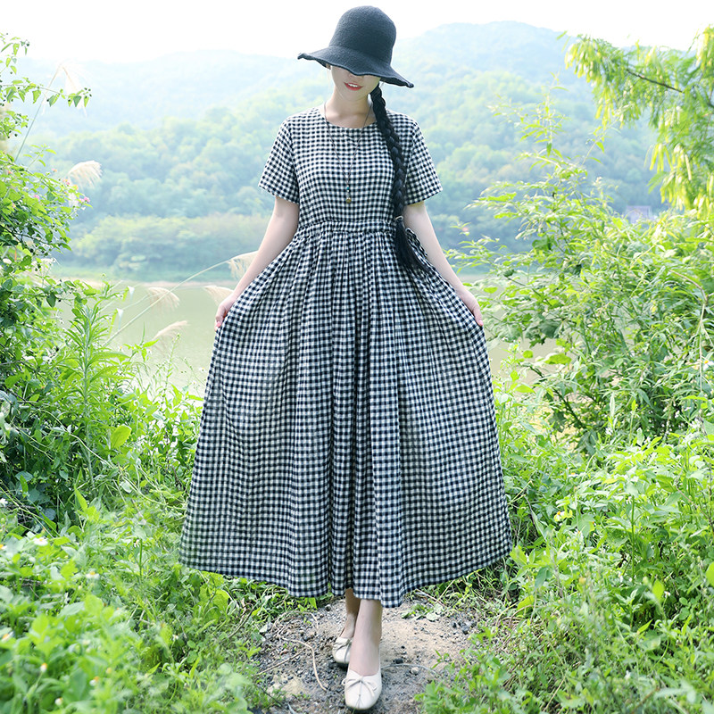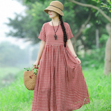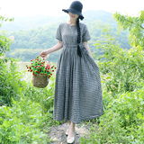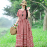 Летнее ретро платье, длинная юбка, 2020, из хлопка и льна, на шнурках, короткий рукав, свободный крой
