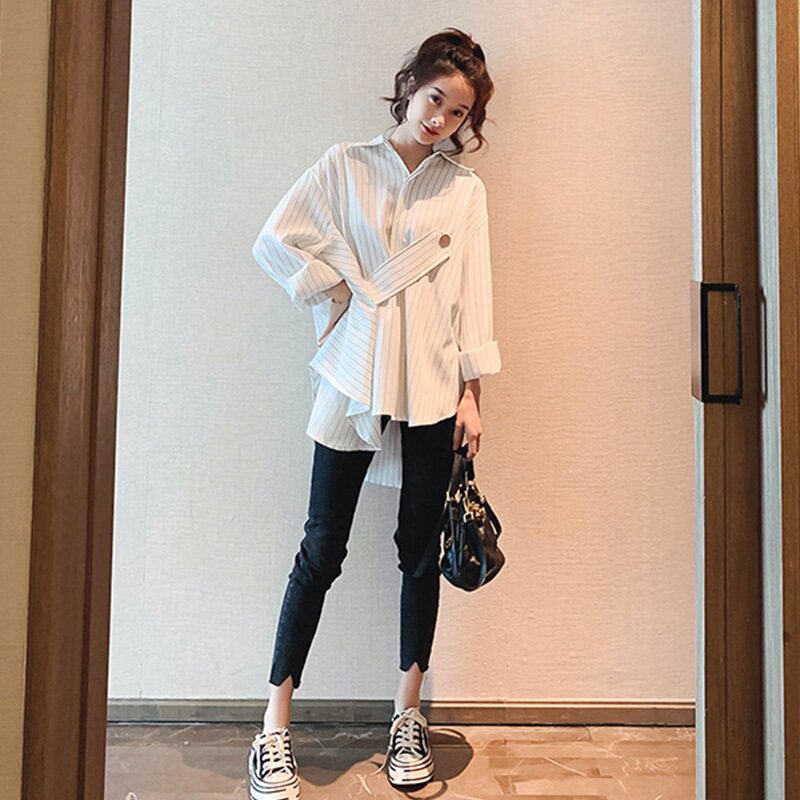Шифоновая рубашка, лонгслив, осеннее модное термобелье, 2019 года, городской стиль, в западном стиле