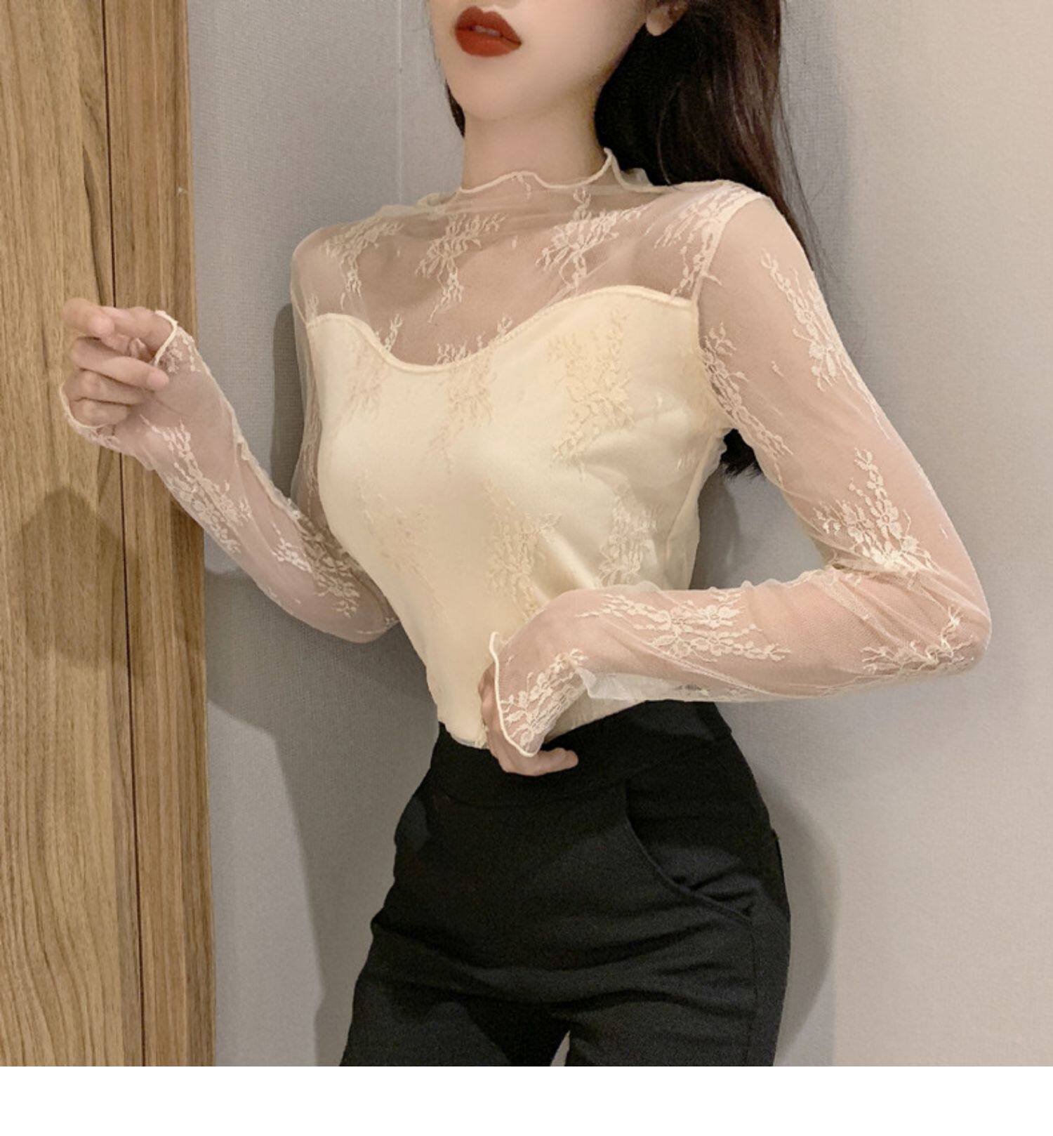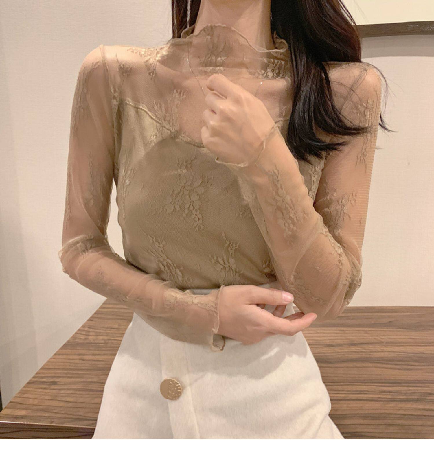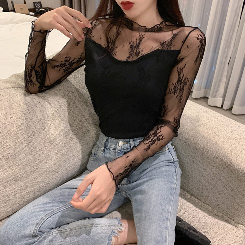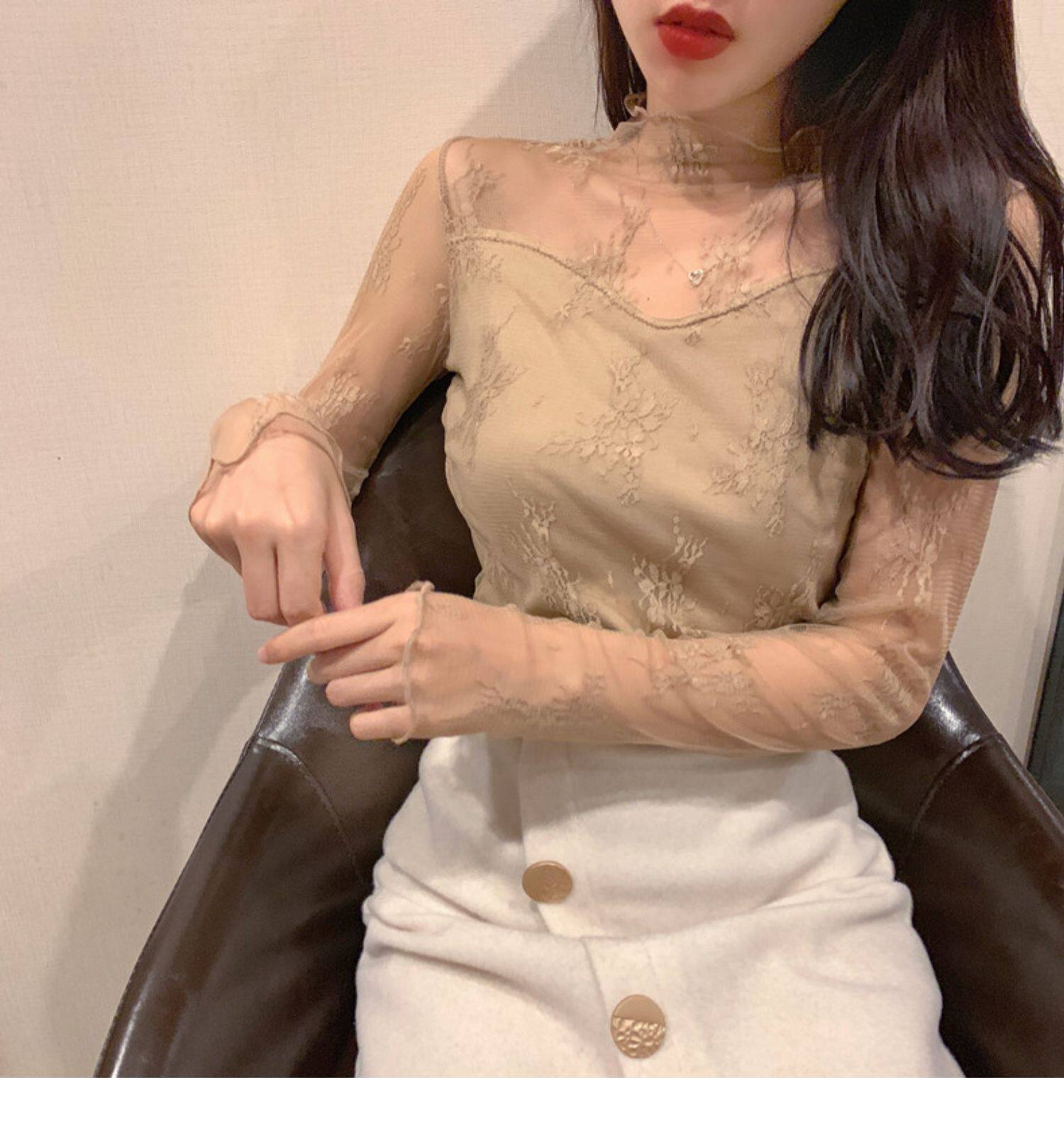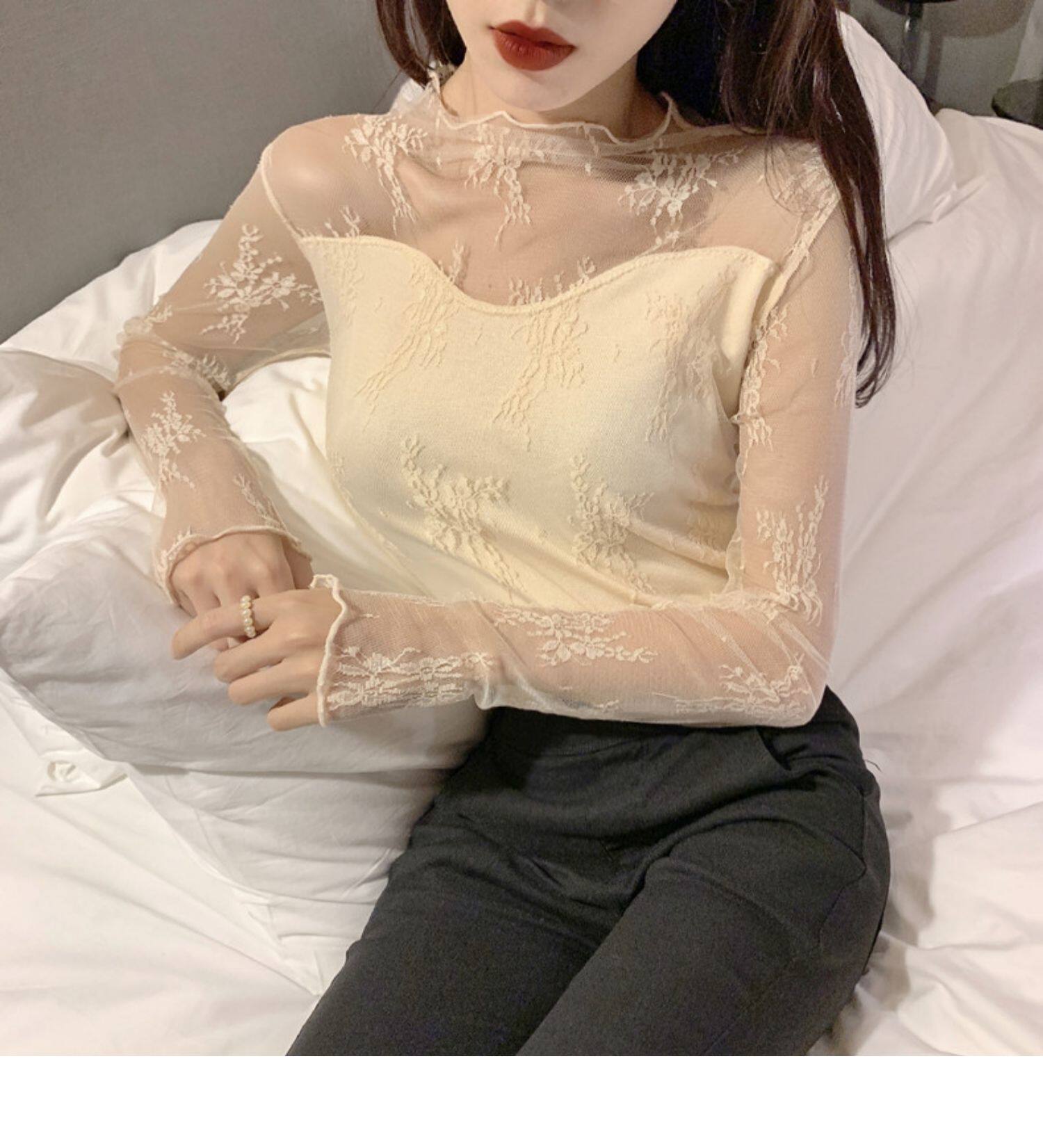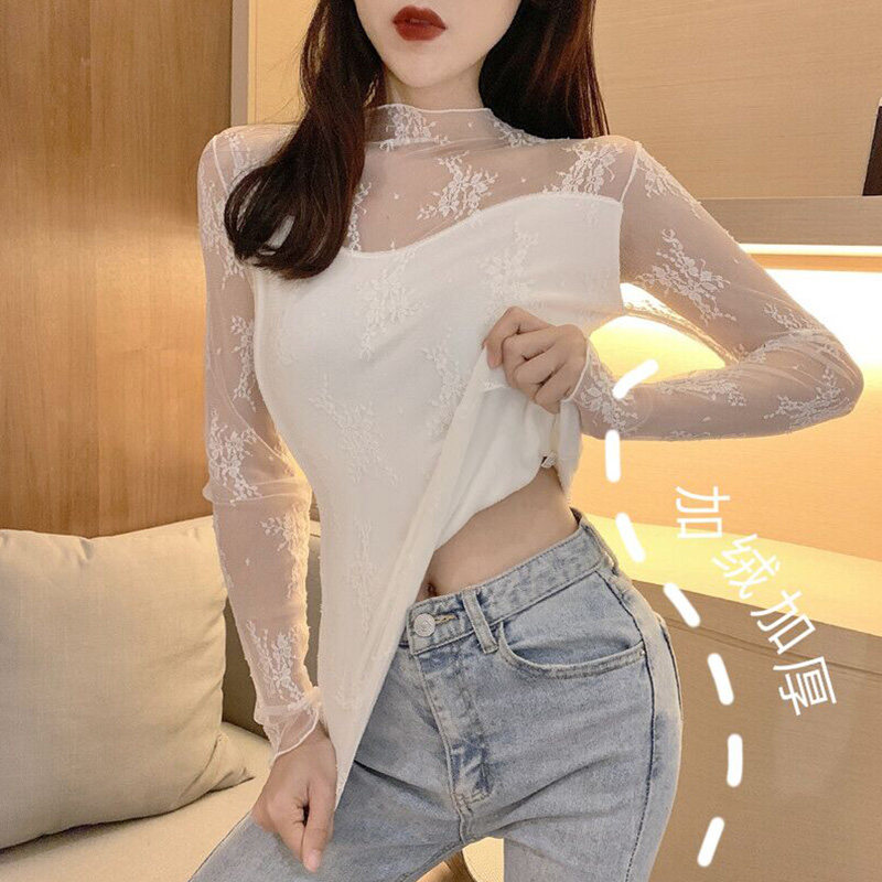 Кружевая базовая рубашка для женщин с рубашкой из французского стиля тюля на весну, осень, зима, Dev Velvet осень -новая сетка.