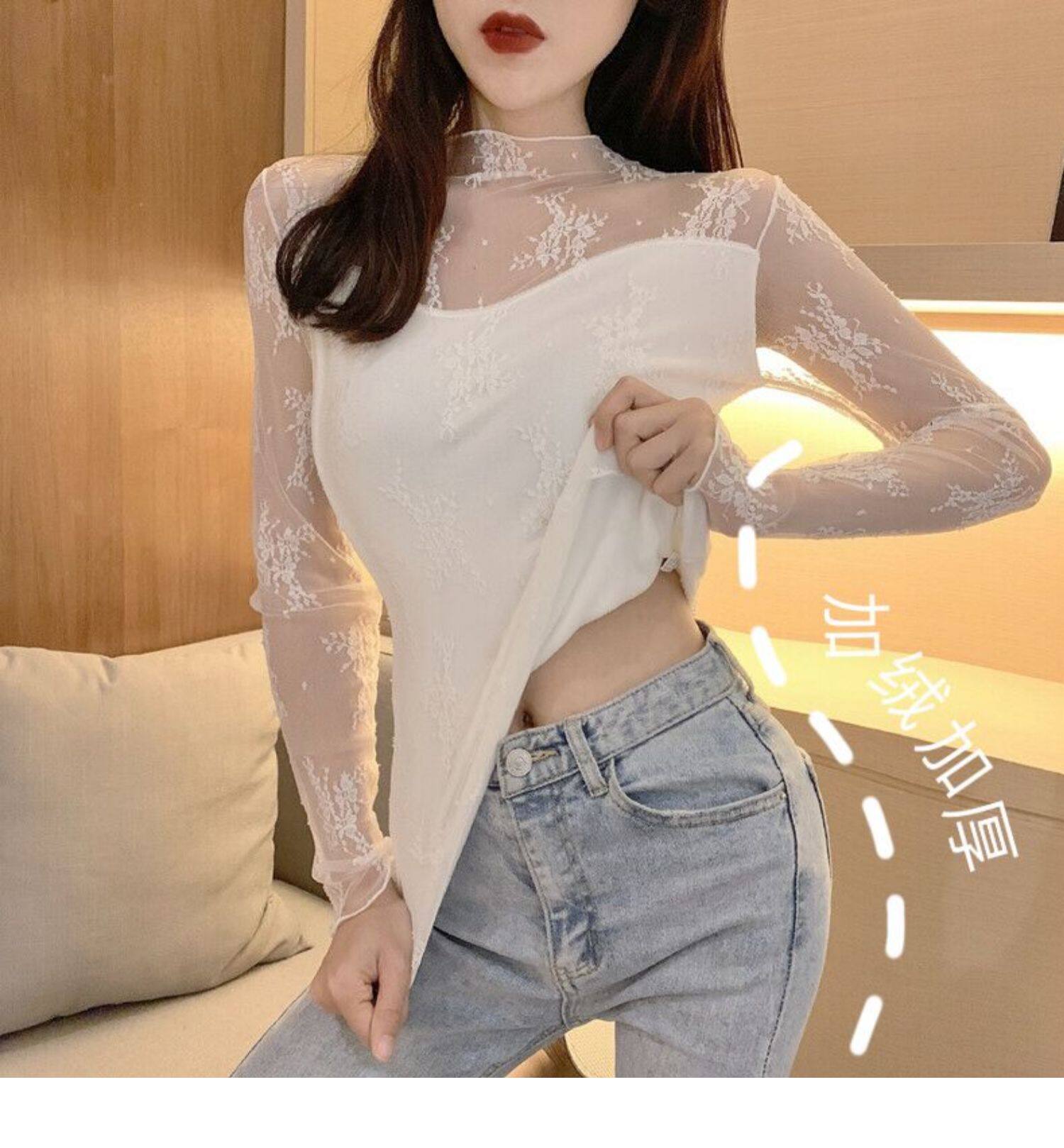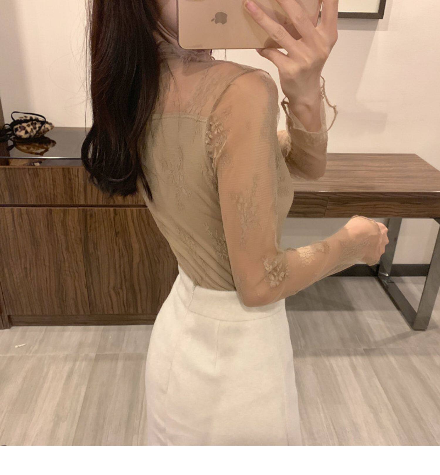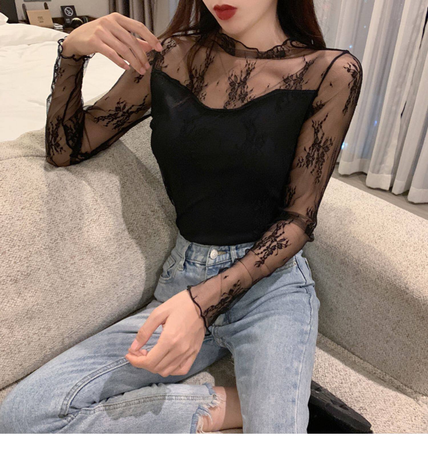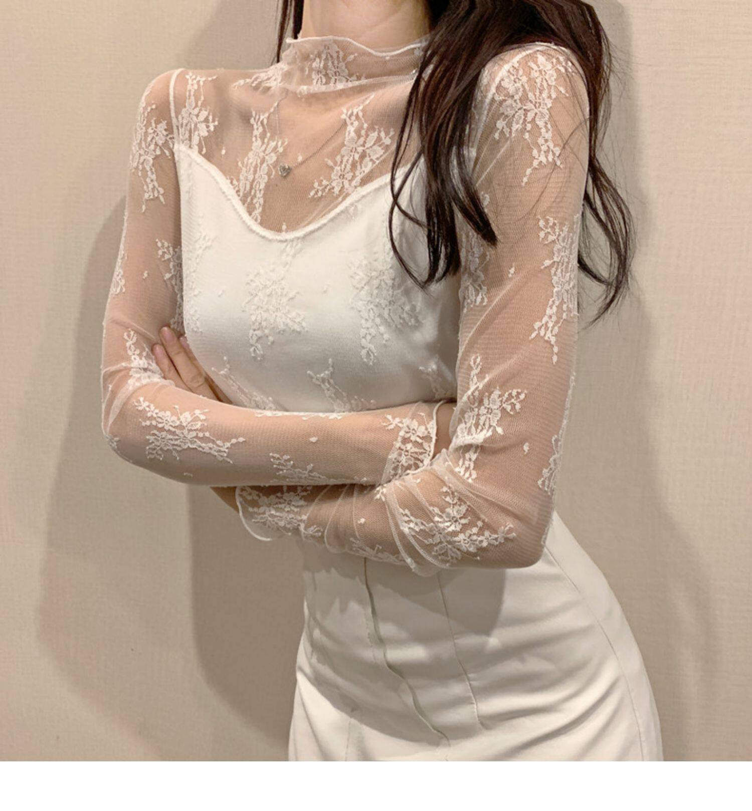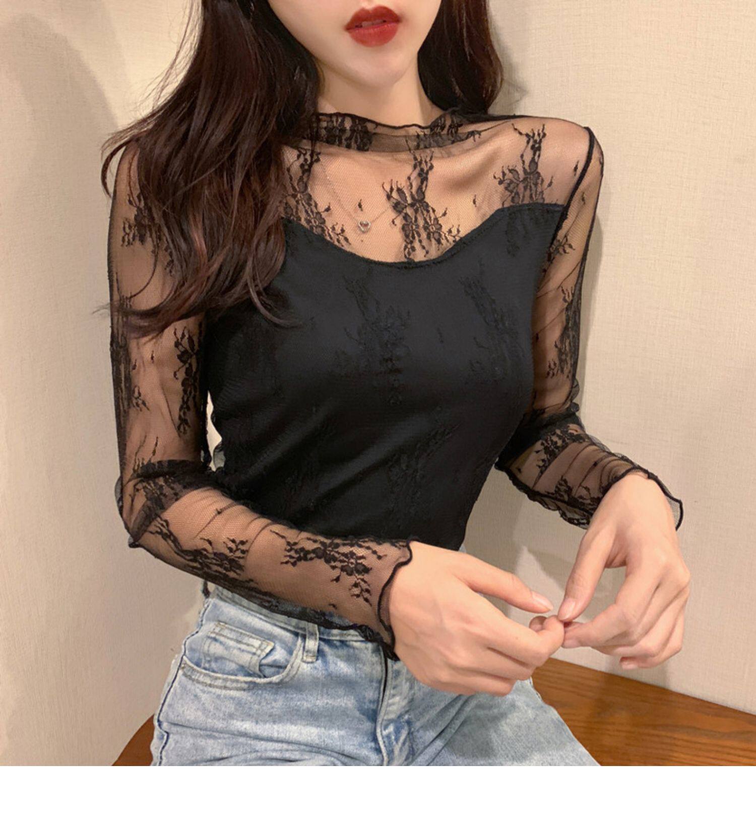 Кружевая базовая рубашка для женщин с рубашкой из французского стиля тюля на весну, осень, зима, Dev Velvet осень -новая сетка.