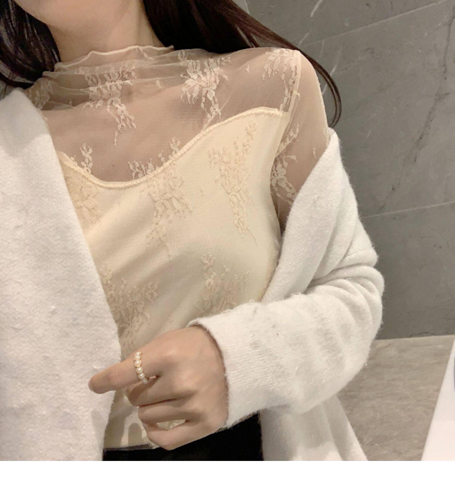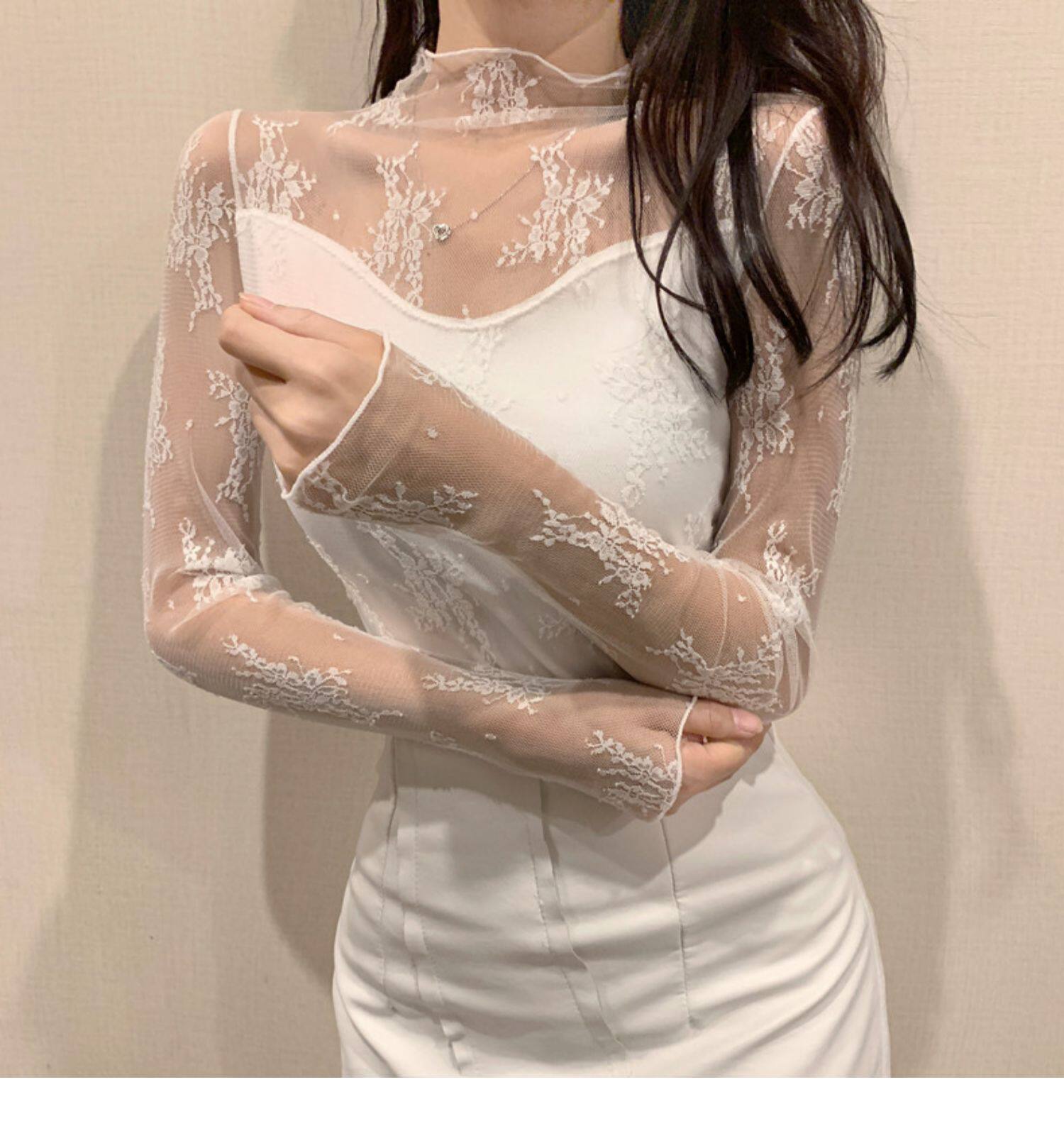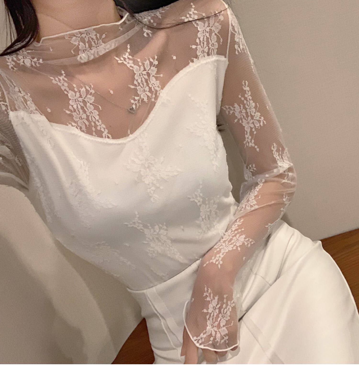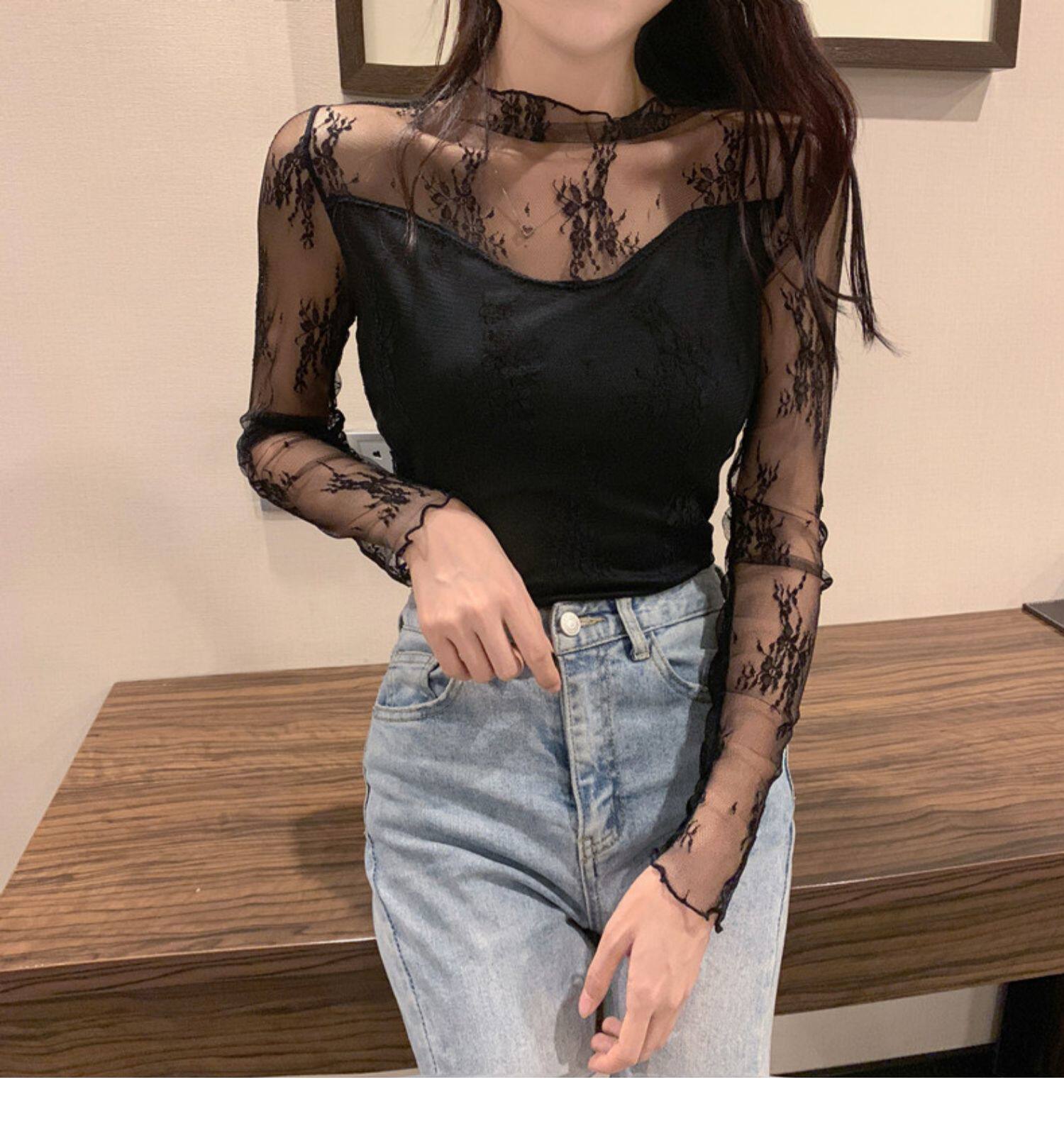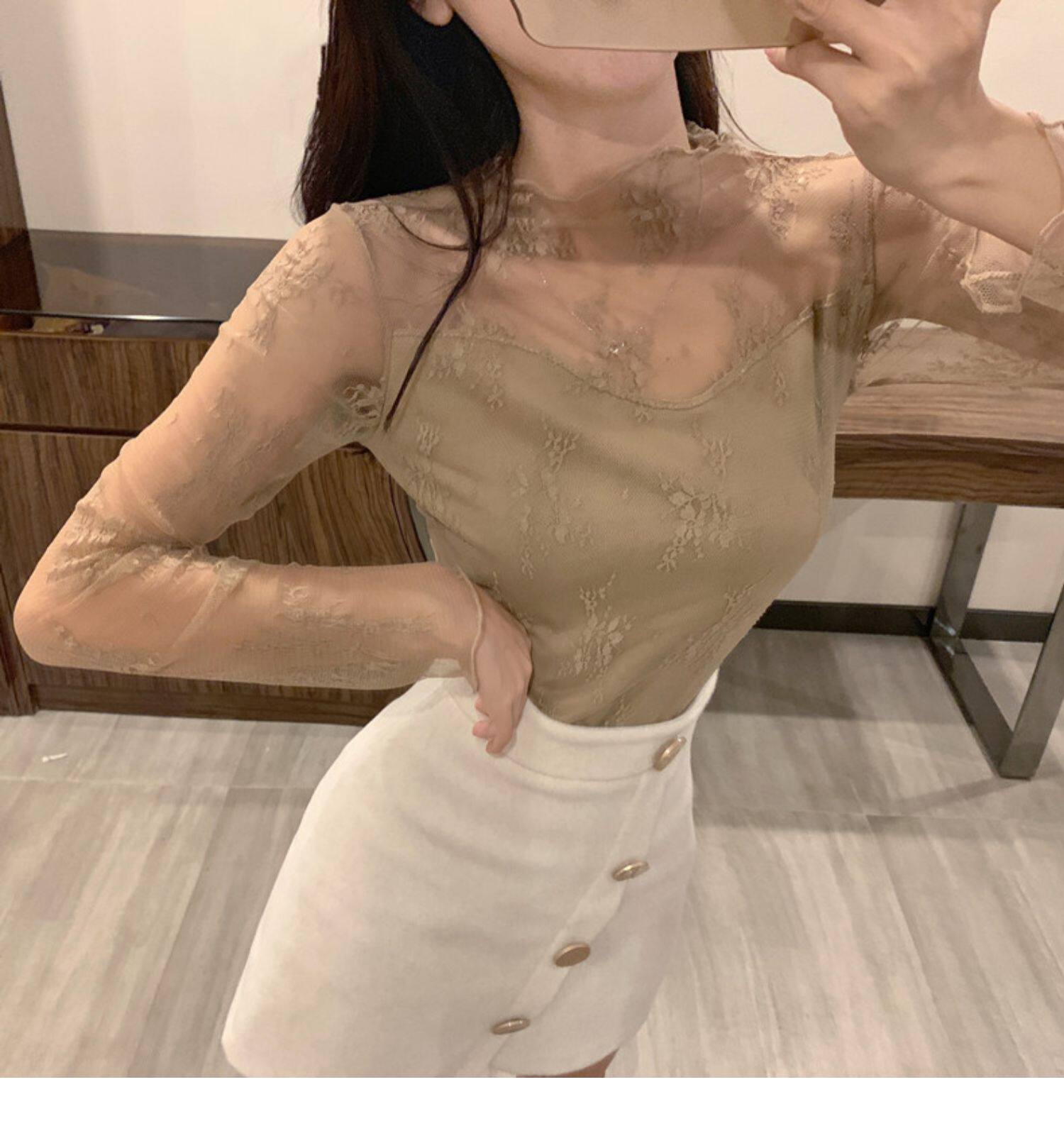 Кружевая базовая рубашка для женщин с рубашкой из французского стиля тюля на весну, осень, зима, Dev Velvet осень -новая сетка.