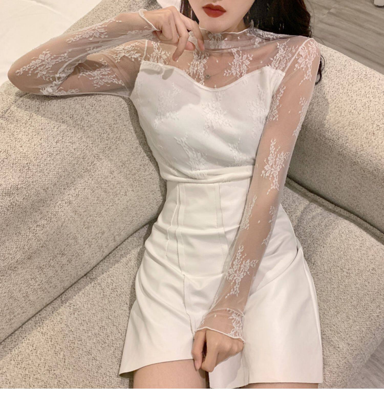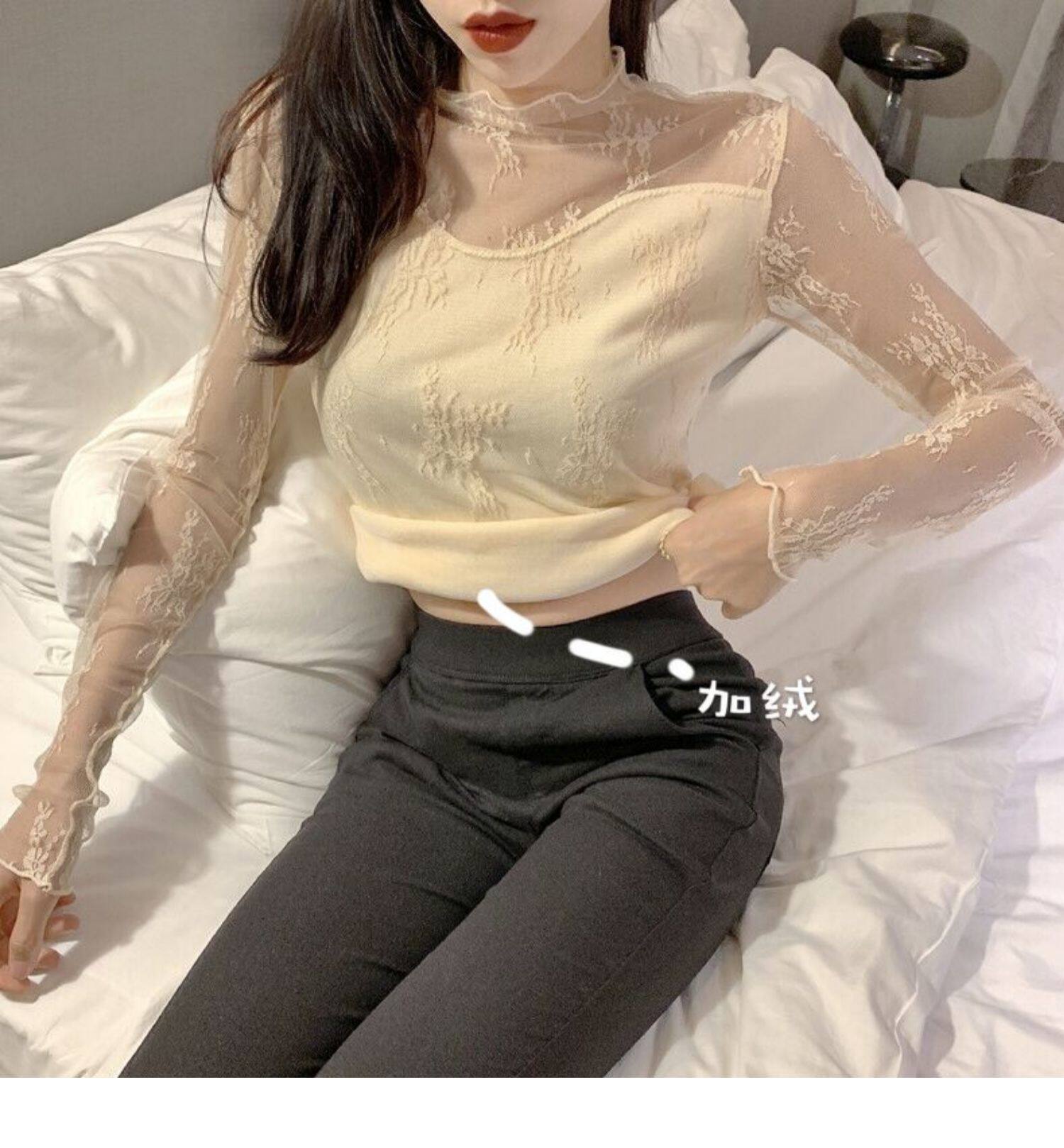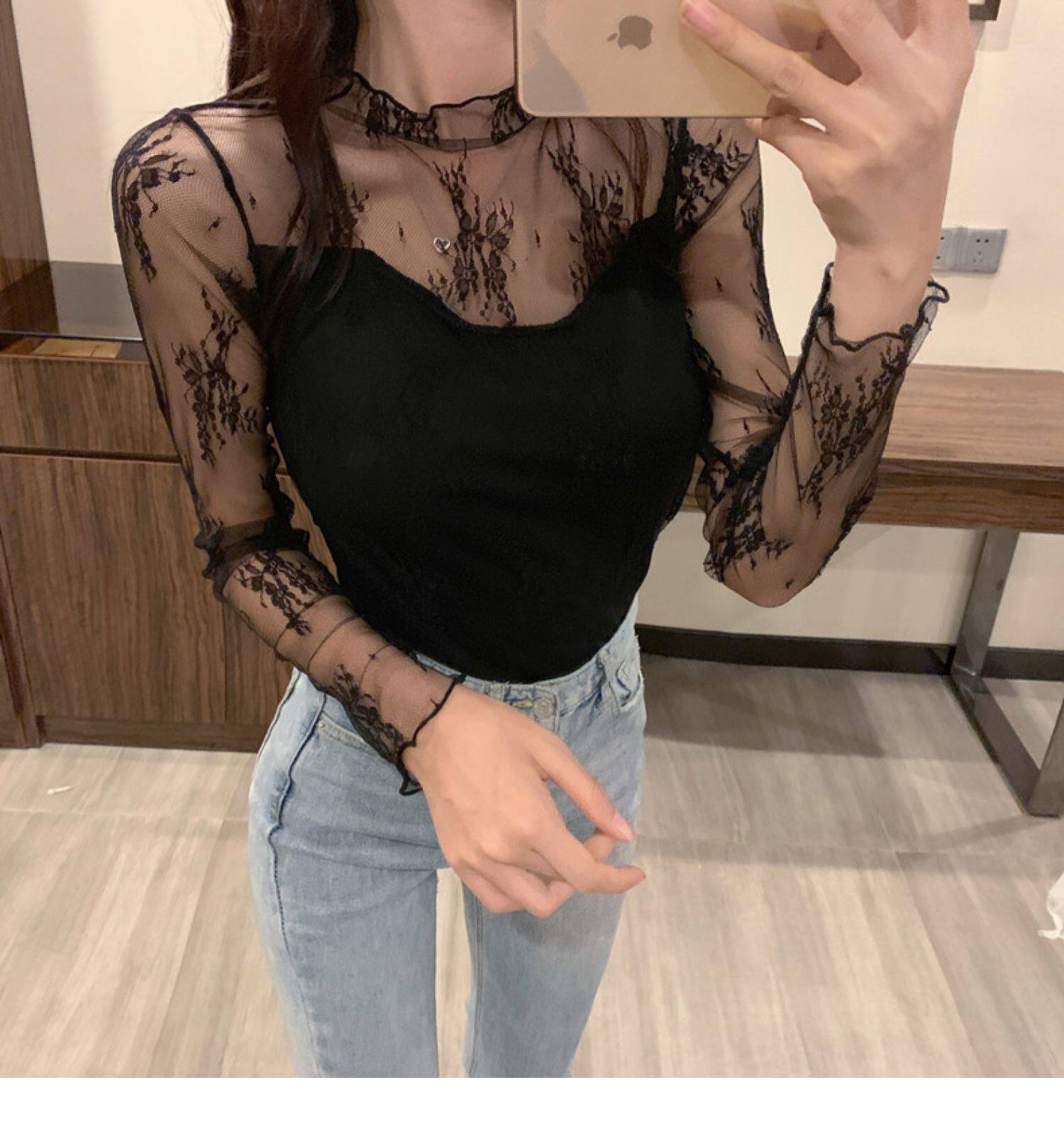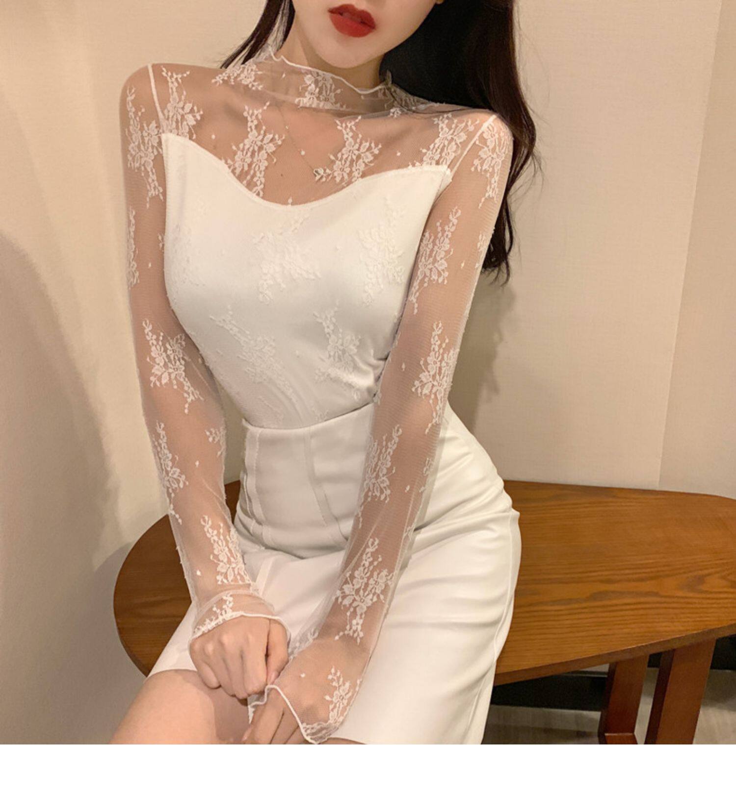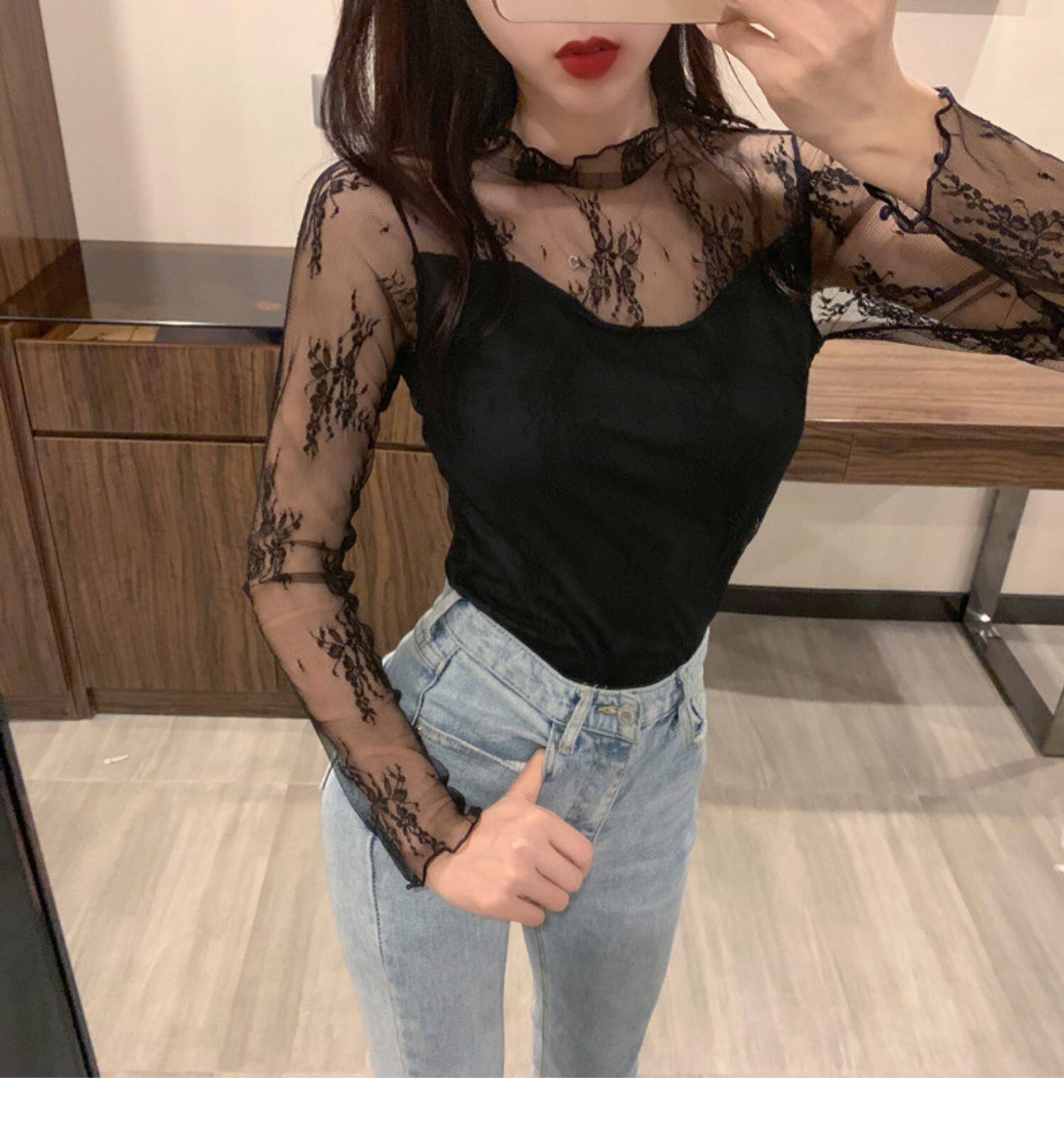 Кружевая базовая рубашка для женщин с рубашкой из французского стиля тюля на весну, осень, зима, Dev Velvet осень -новая сетка.