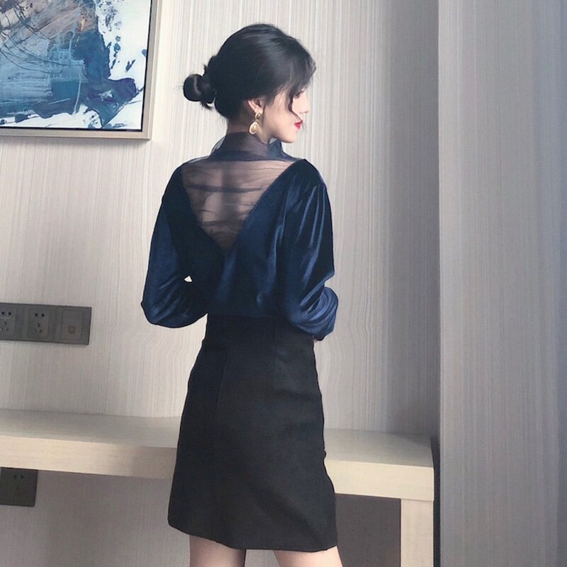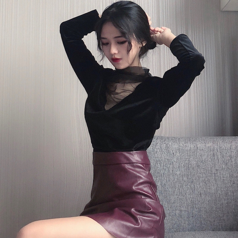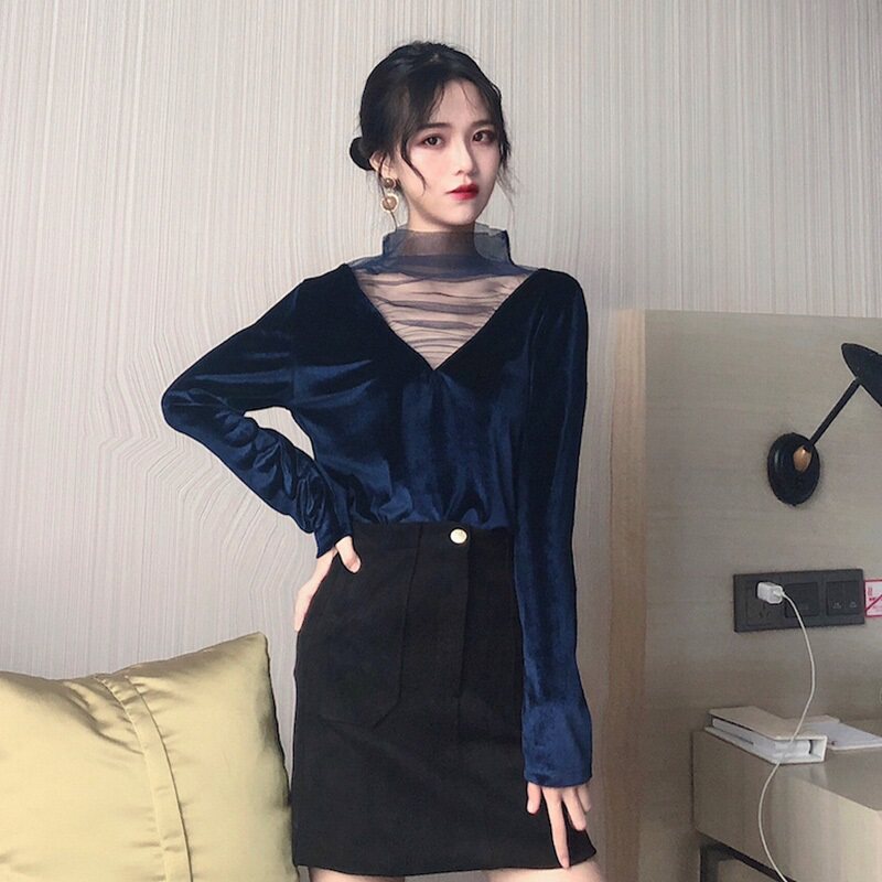 Базовый приятный телу осенний утепленный бархатный лонгслив, в западном стиле