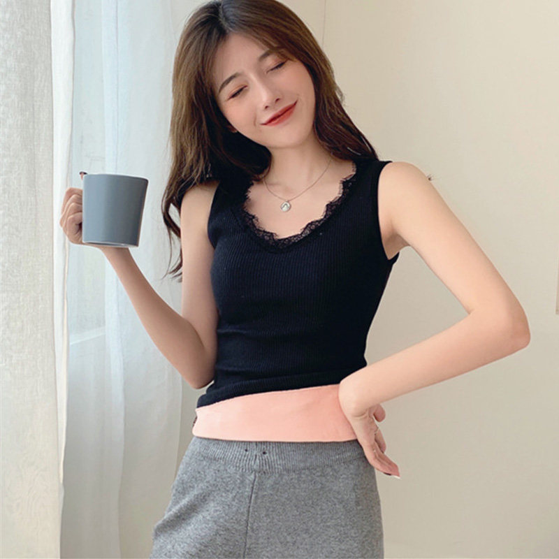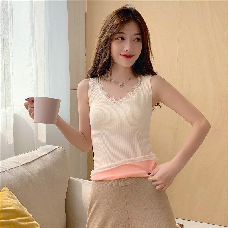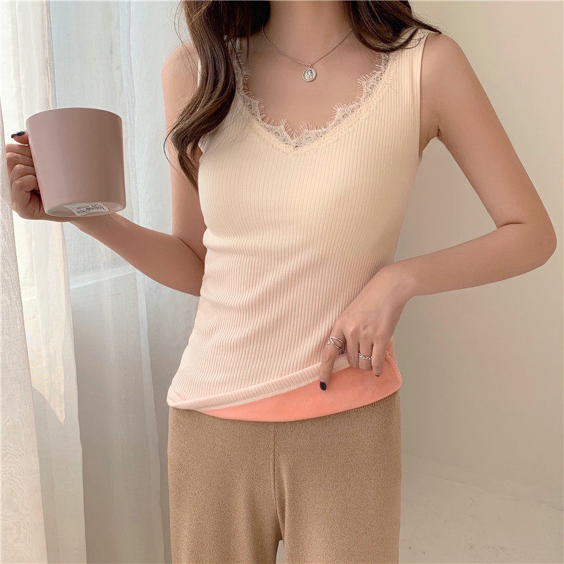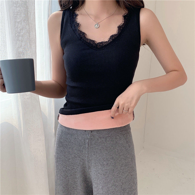 Демисезонная утепленная майка топ, утепленный базовый приятный телу трикотажный костюм, в обтяжку