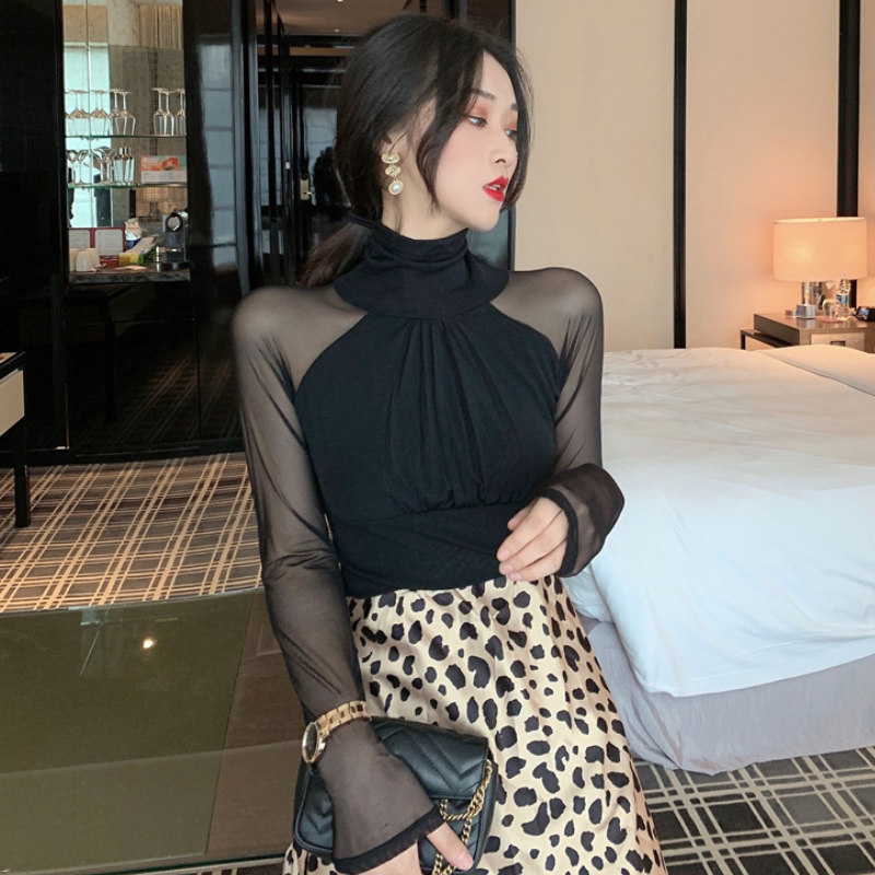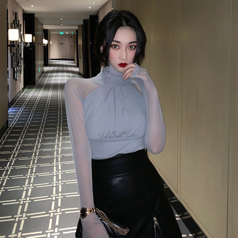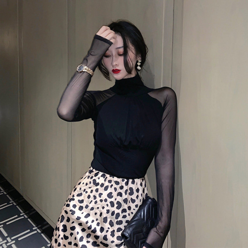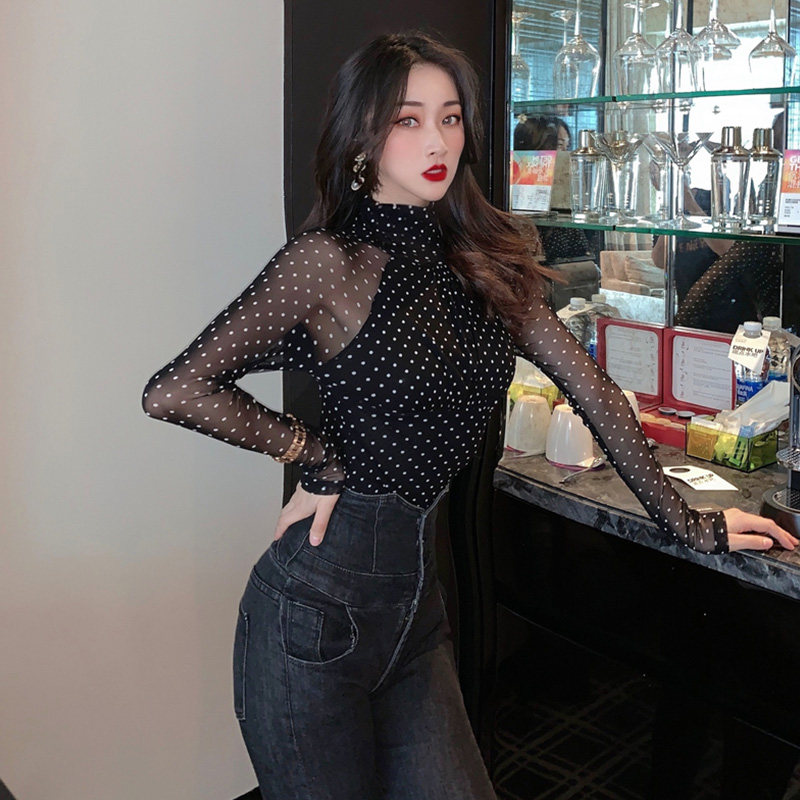 Сетчатая базовая рубашка для женщин с осенью и зимой 2019 Новая модная и модная рубашка для сексуального тела и полного кружева