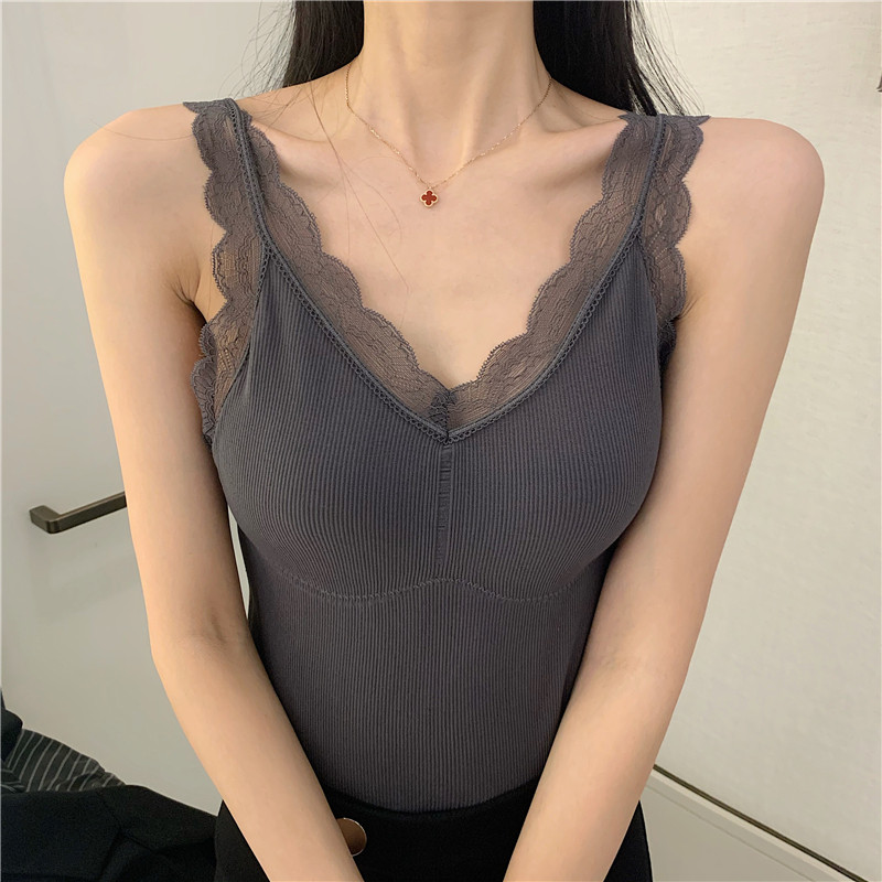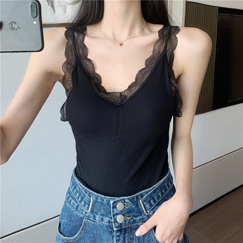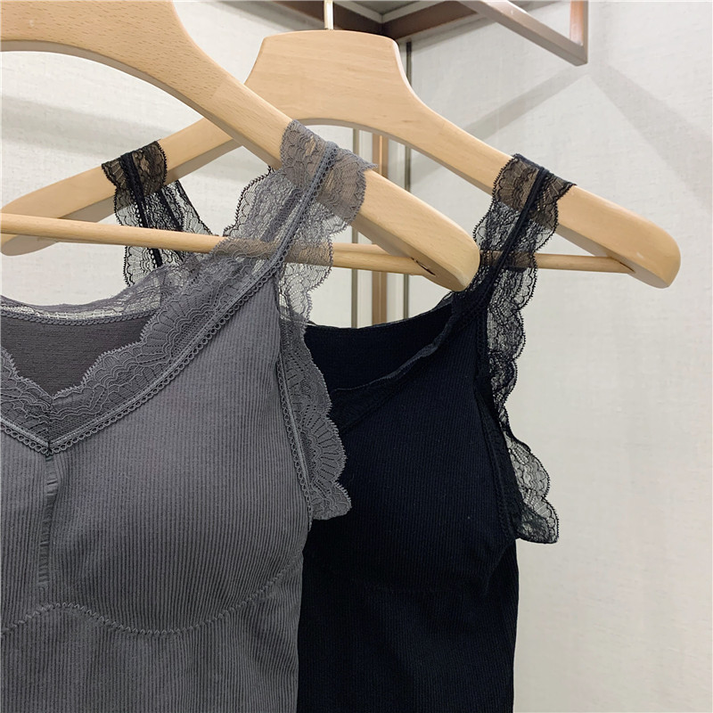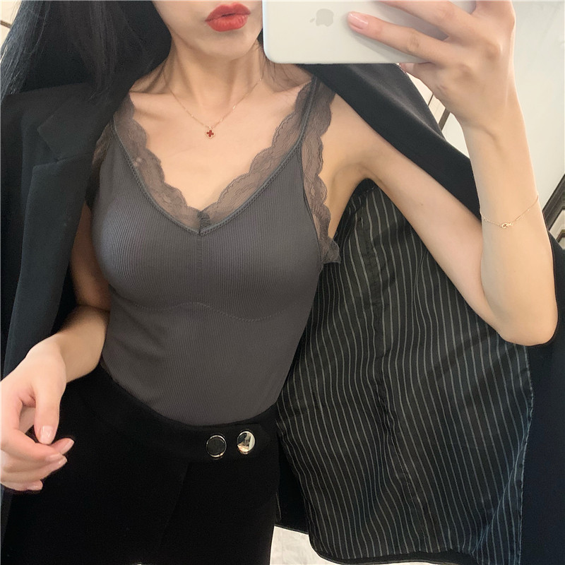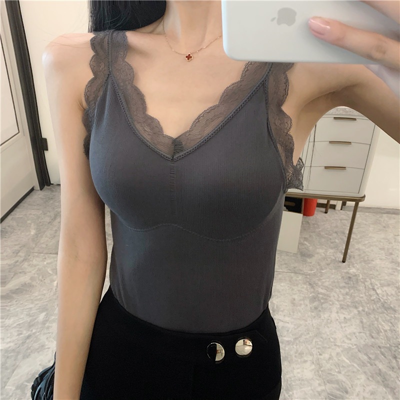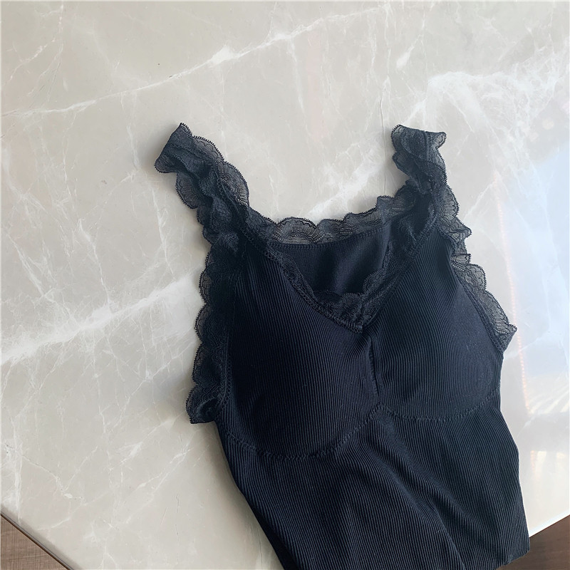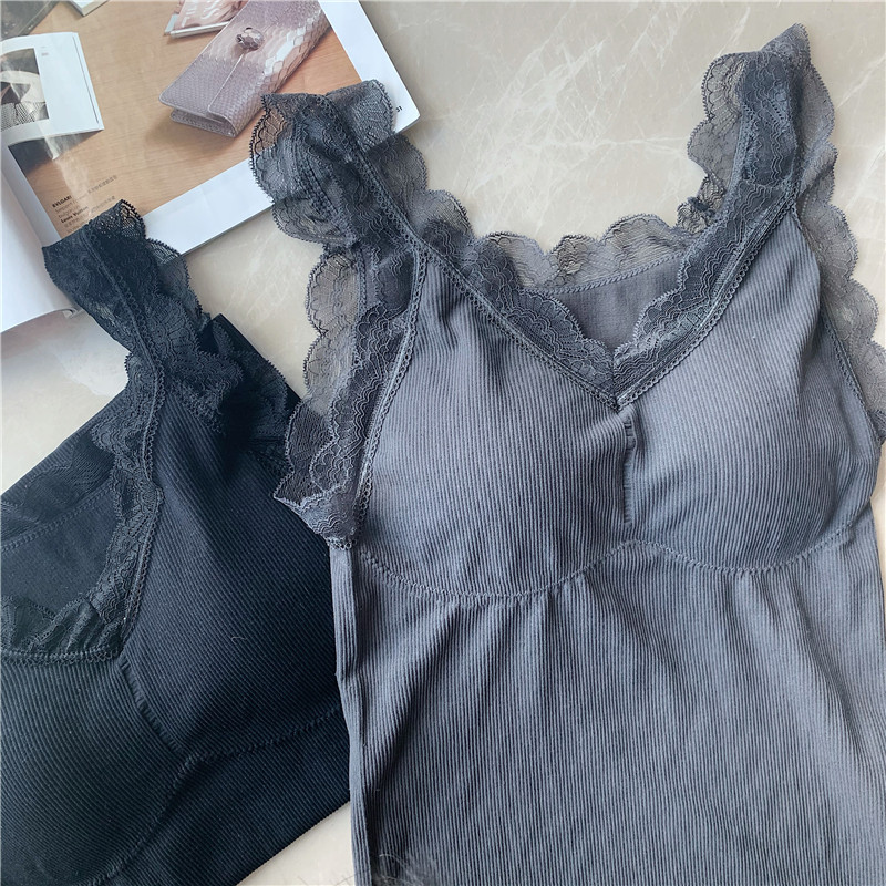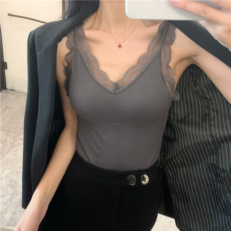 Демисезонная майка топ, утепленный топ с чашечками, кружевной шелковый костюм без рукавов
