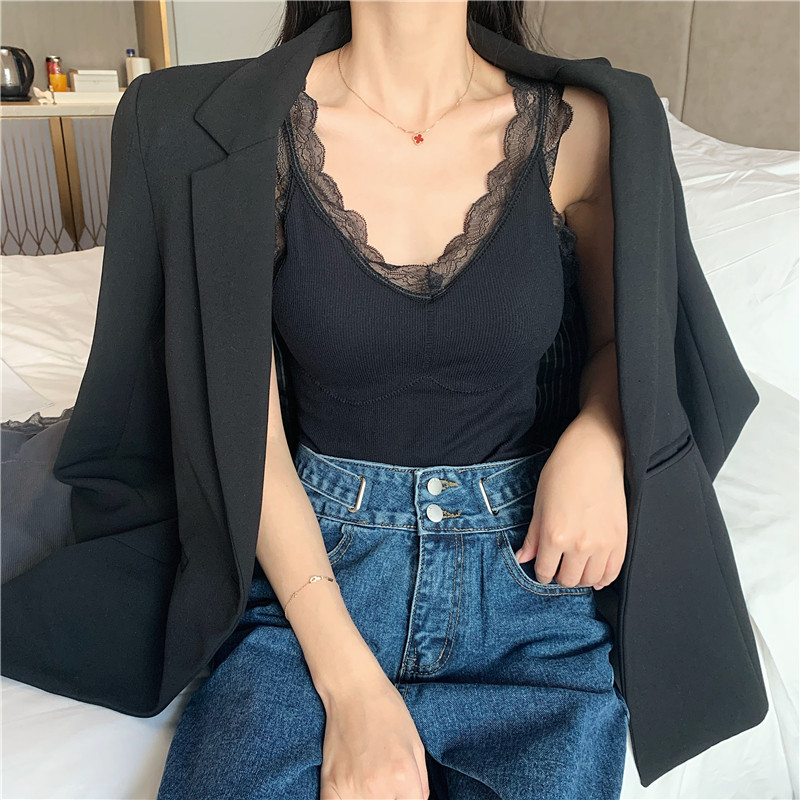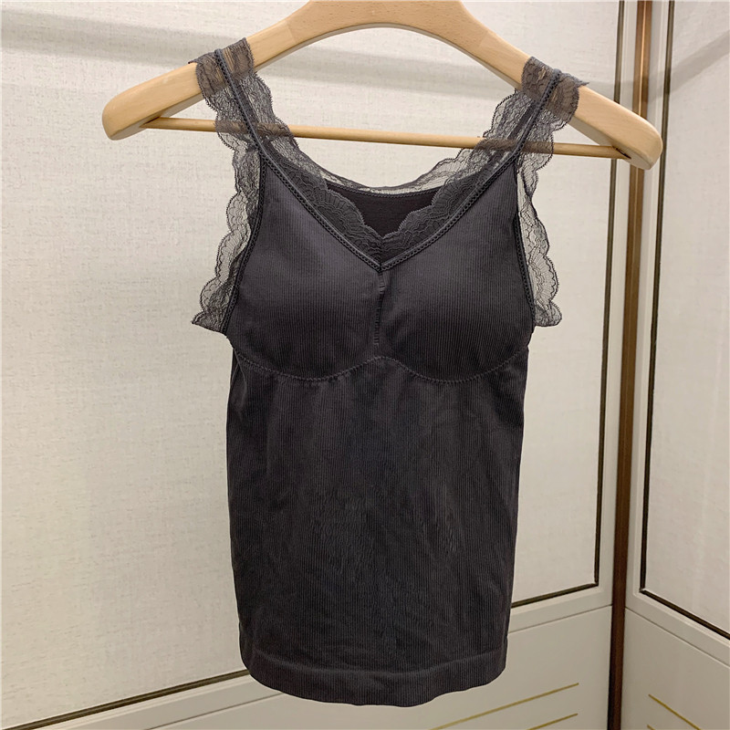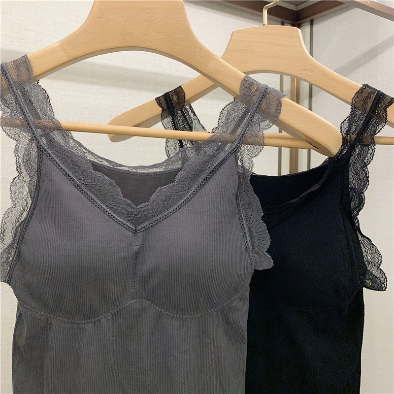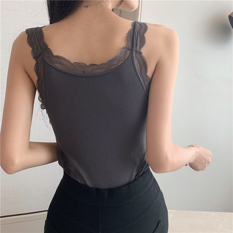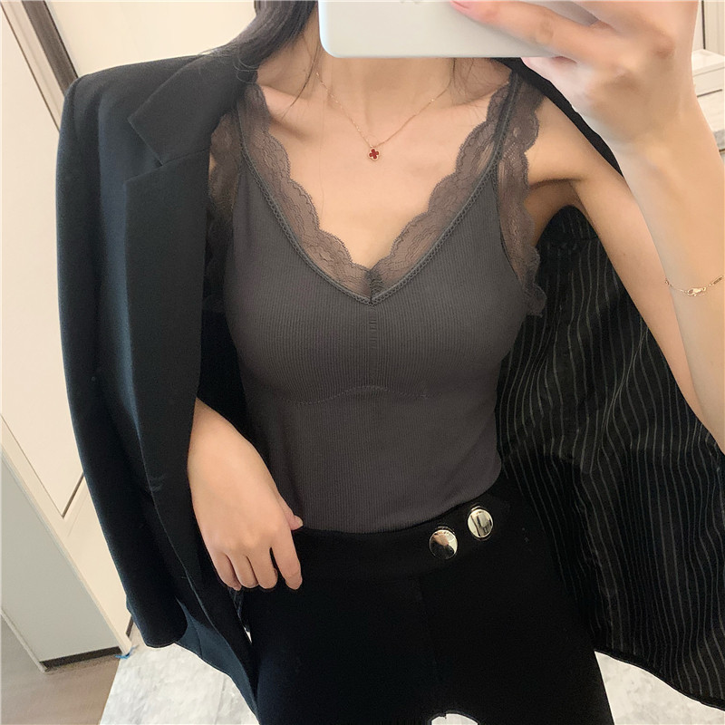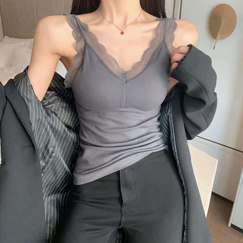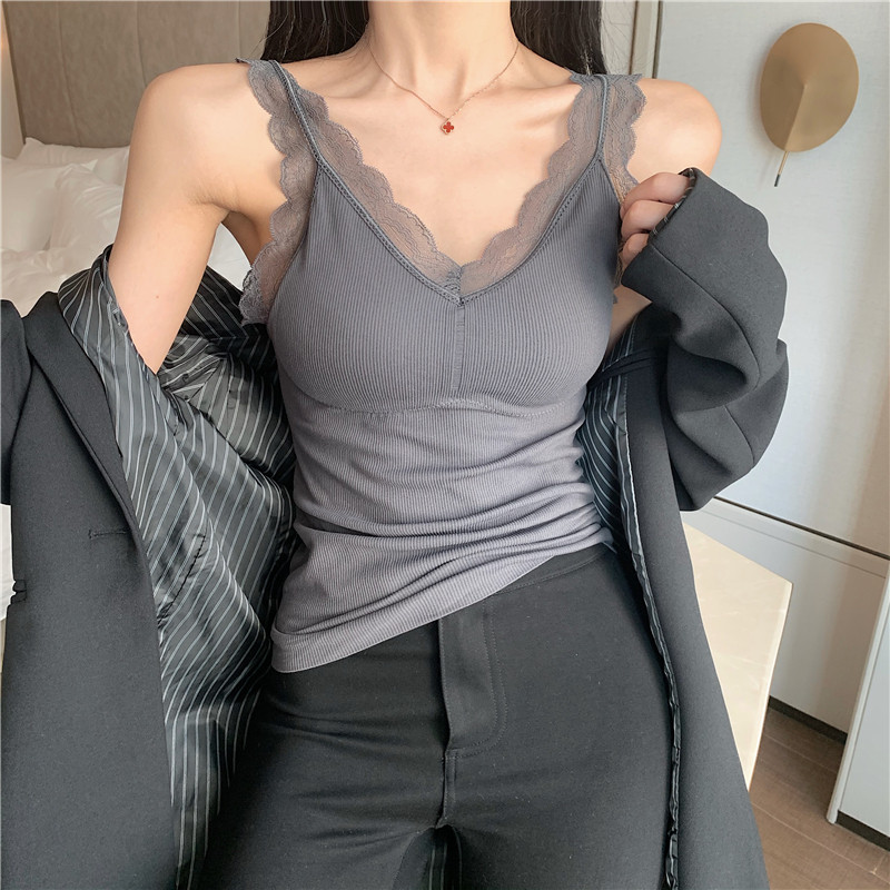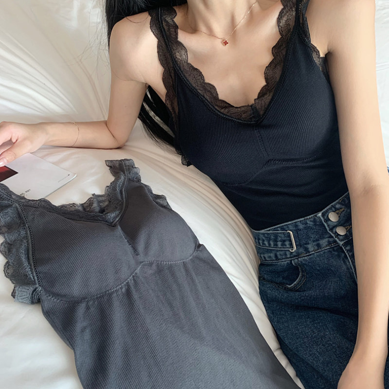 Демисезонная майка топ, утепленный топ с чашечками, кружевной шелковый костюм без рукавов