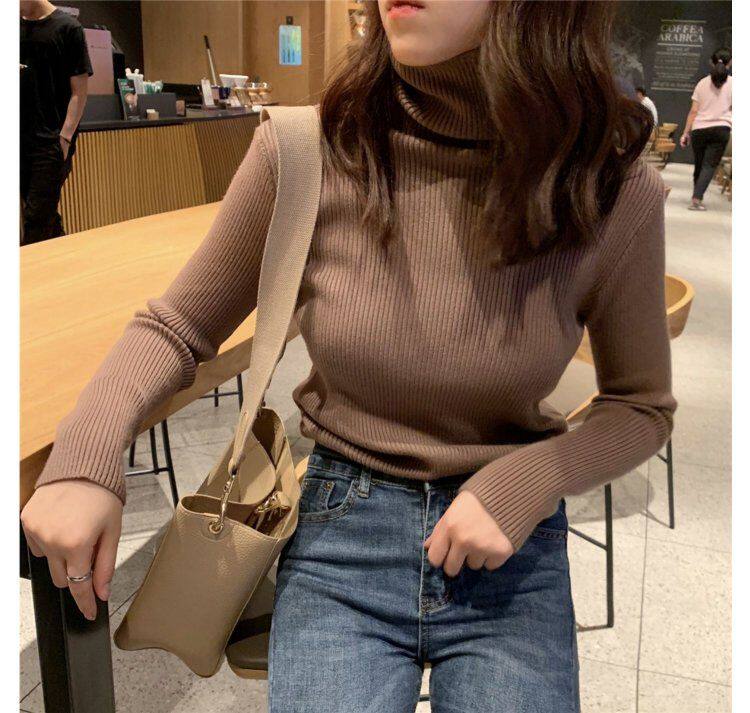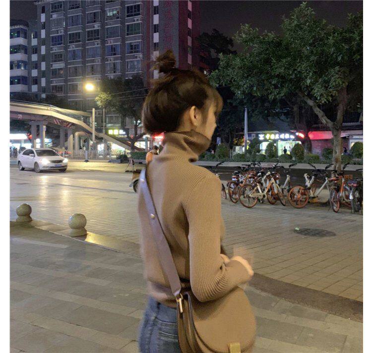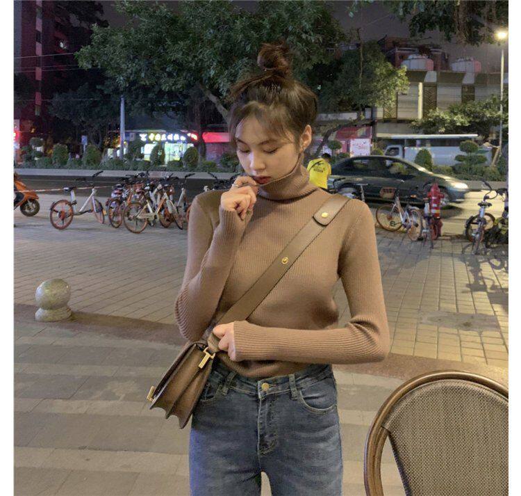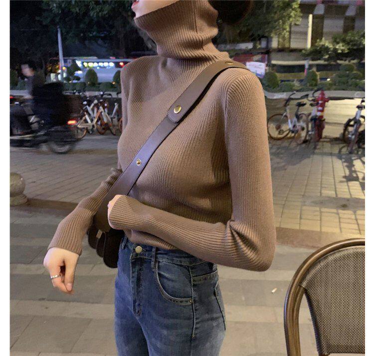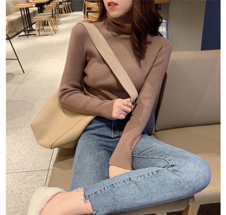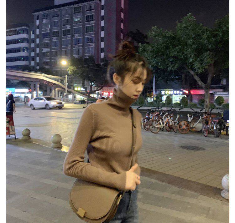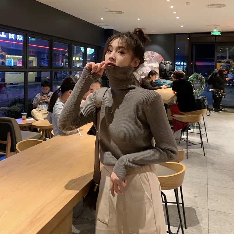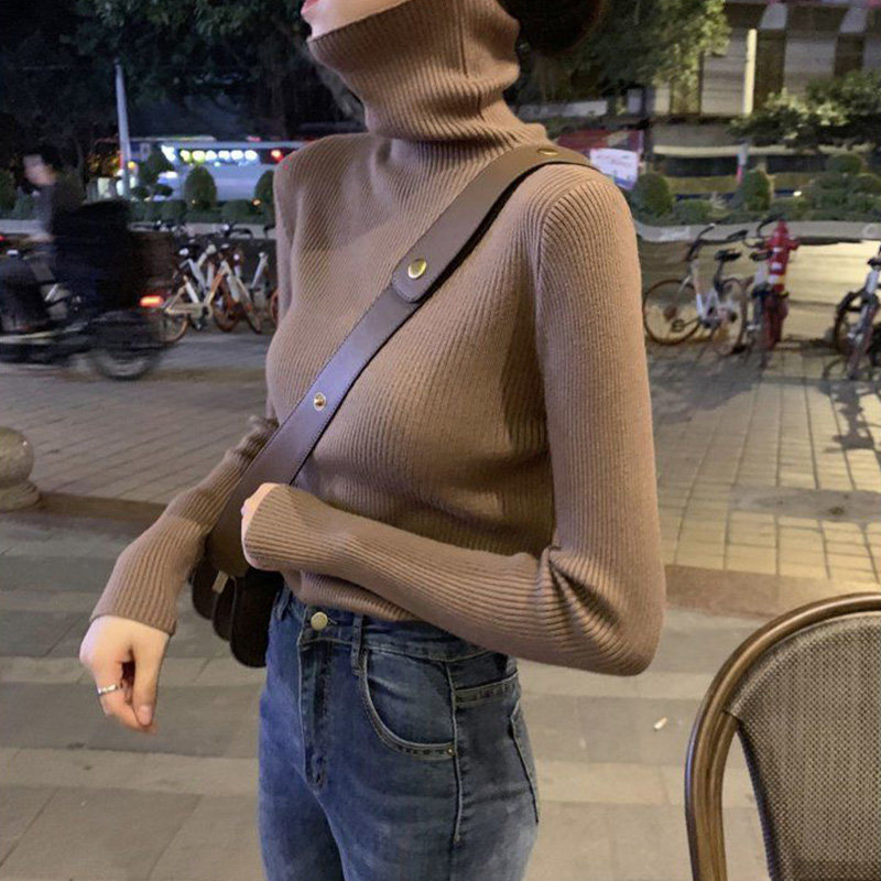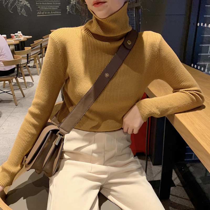 Демисезонный изысканный утепленный цветной трикотажный свитер, 2019, облегающий крой, в западном стиле