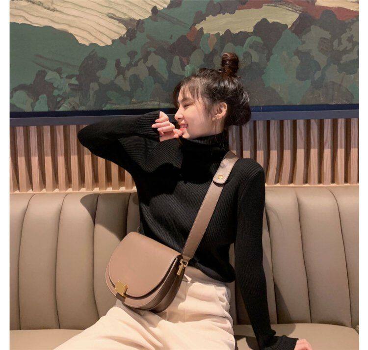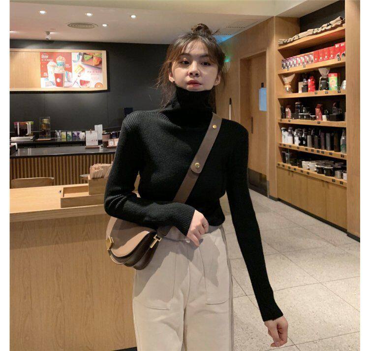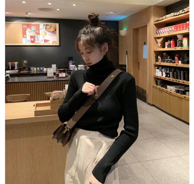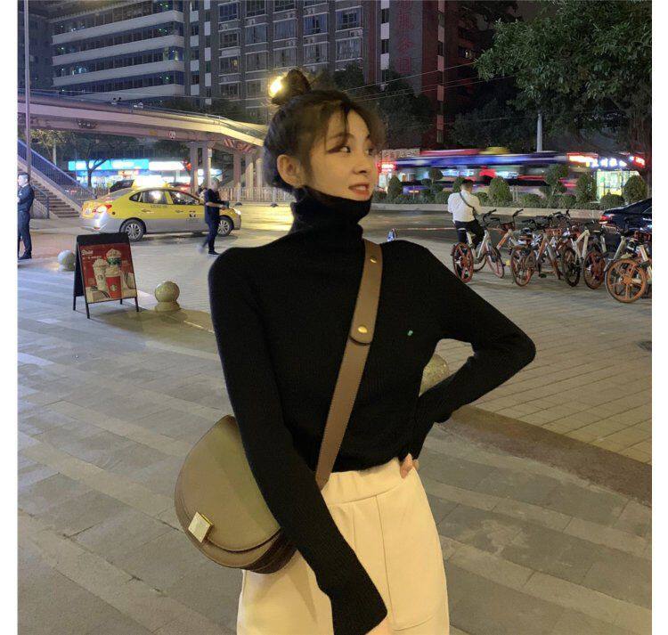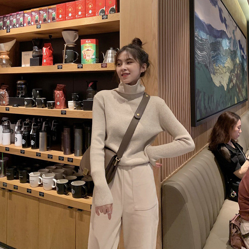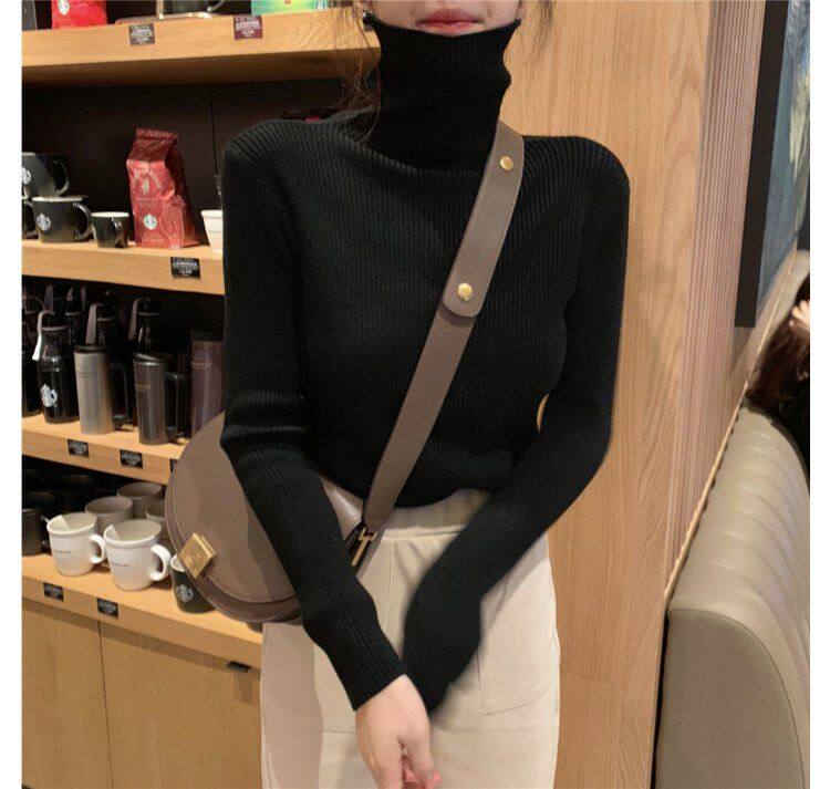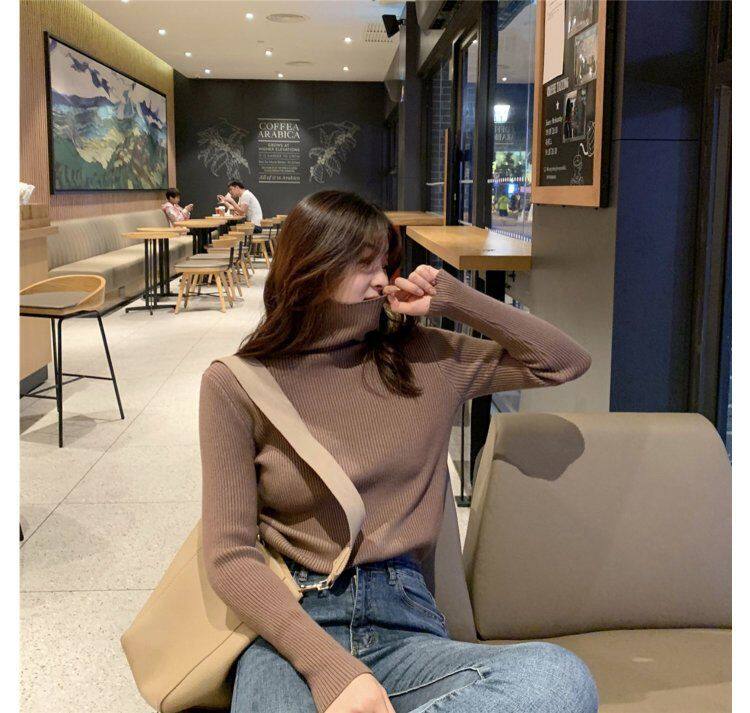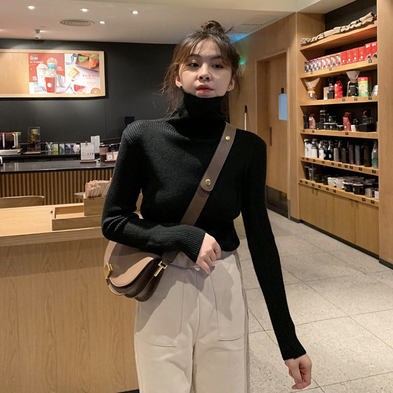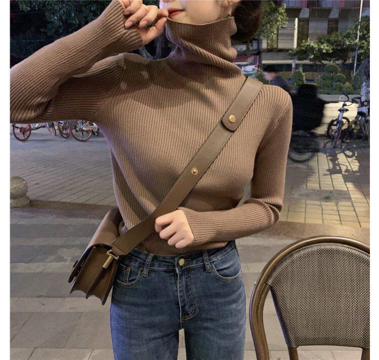 Демисезонный изысканный утепленный цветной трикотажный свитер, 2019, облегающий крой, в западном стиле