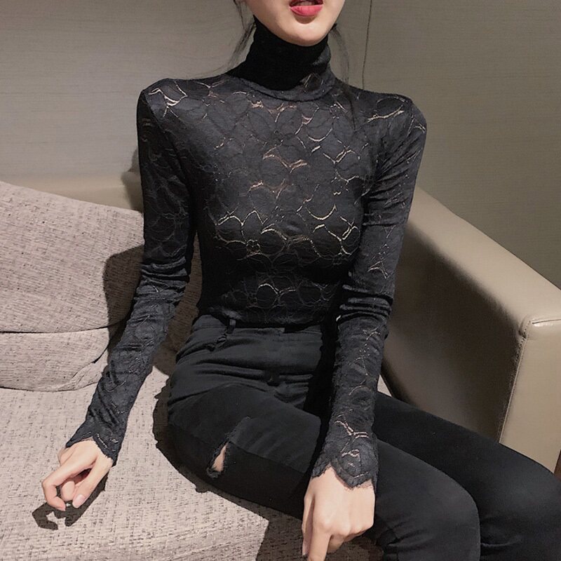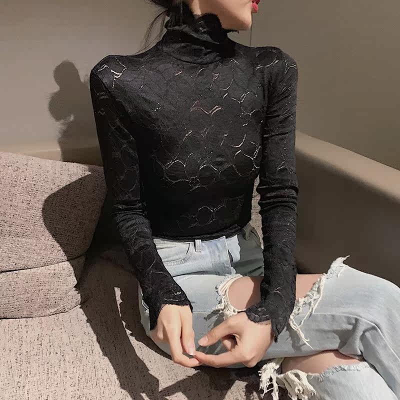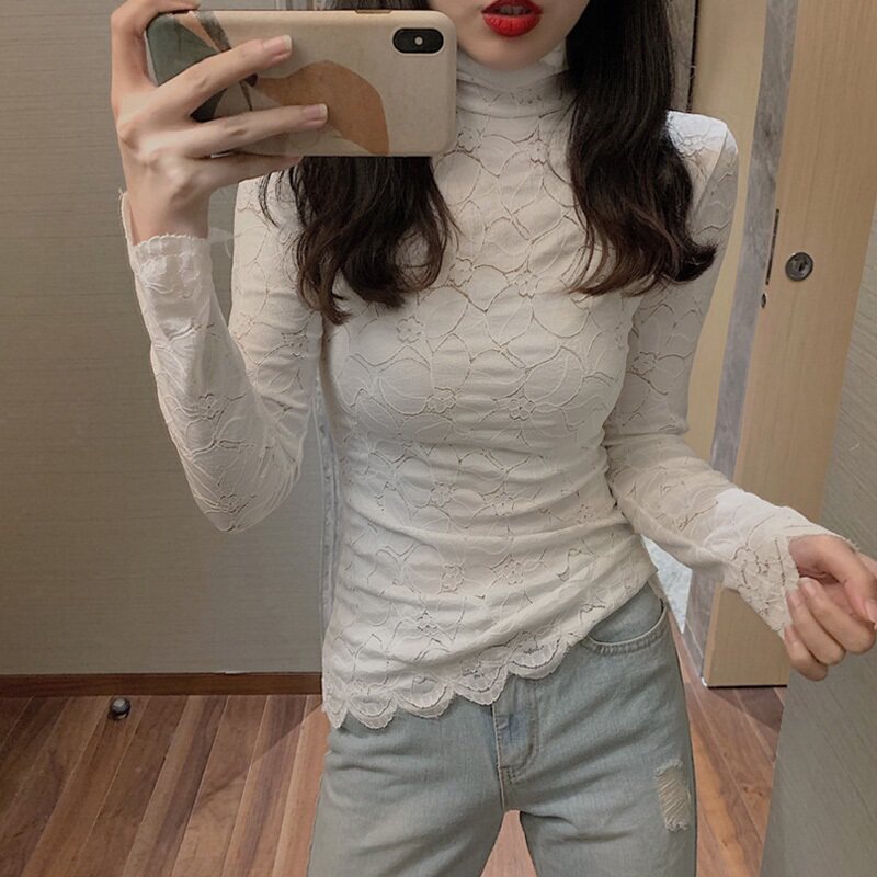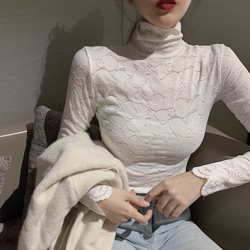 Кружевая базовая рубашка для женщин с бархатным утолщенным модным внутренним ношением изысканная осень и зима 2019 г.