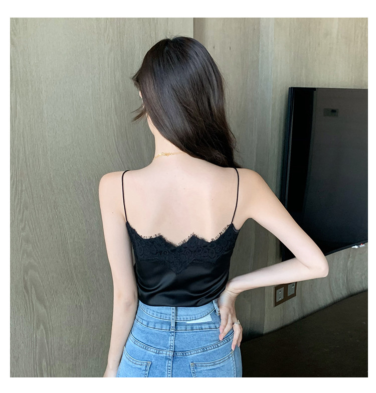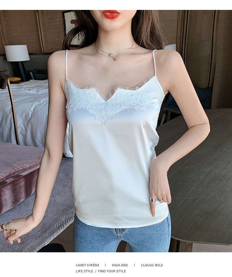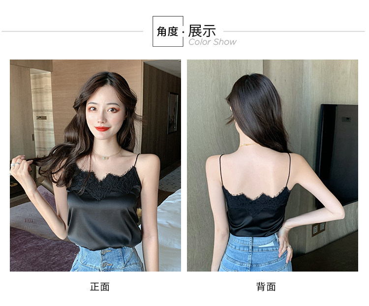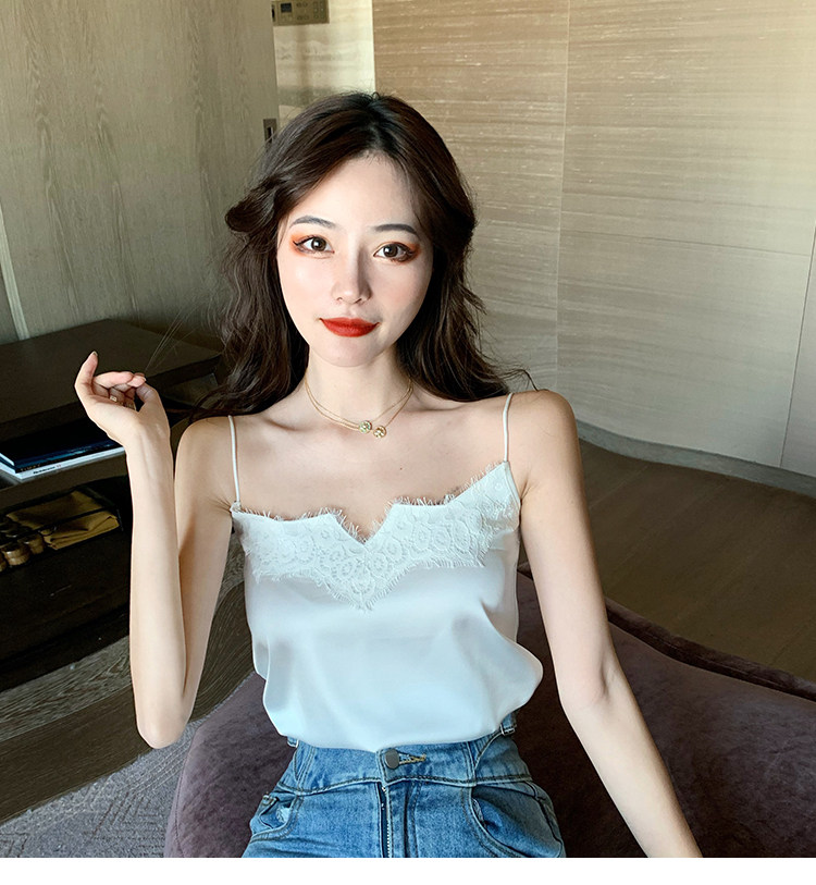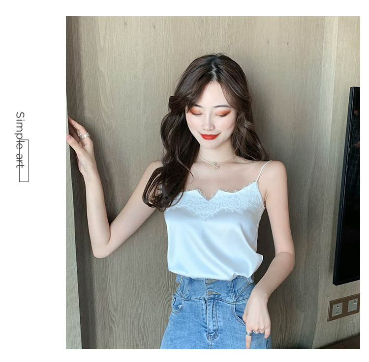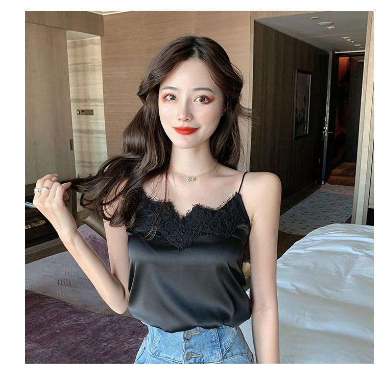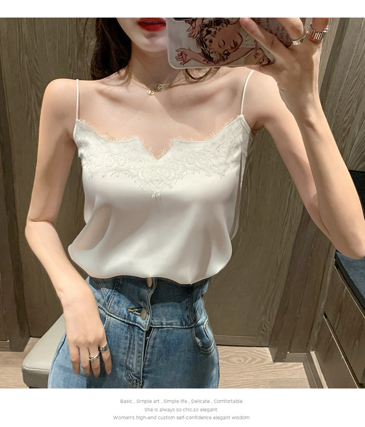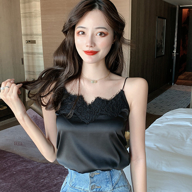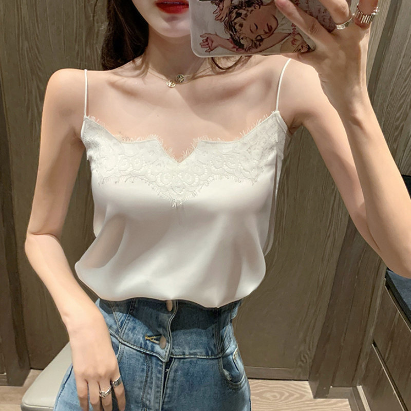 Майка топ, базовый шелковый кружевной костюм, французский стиль