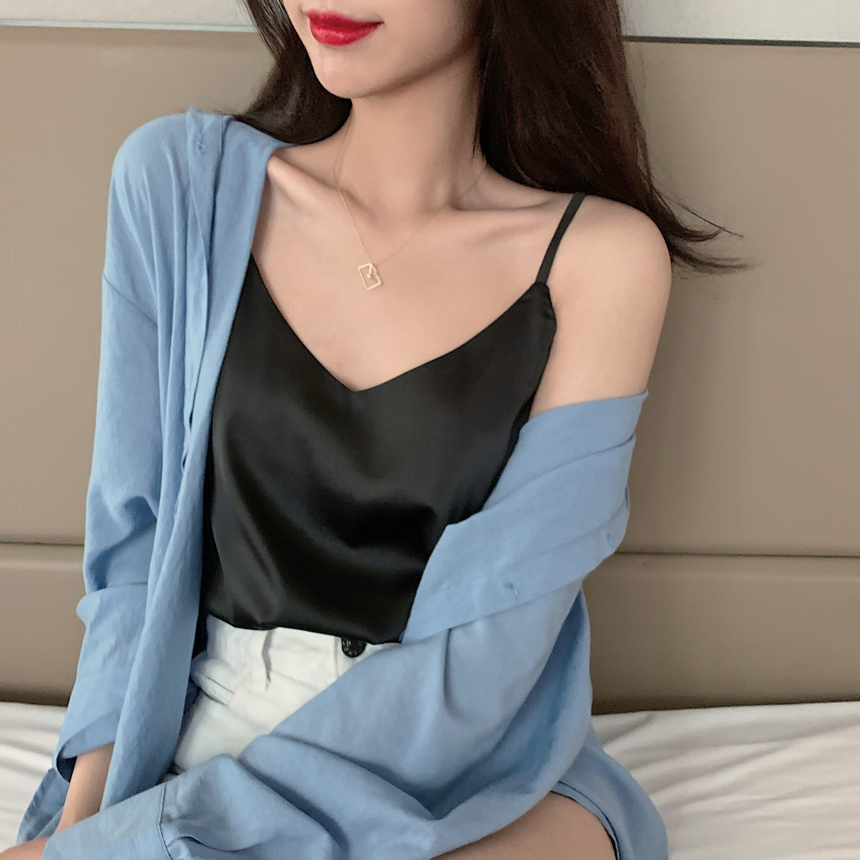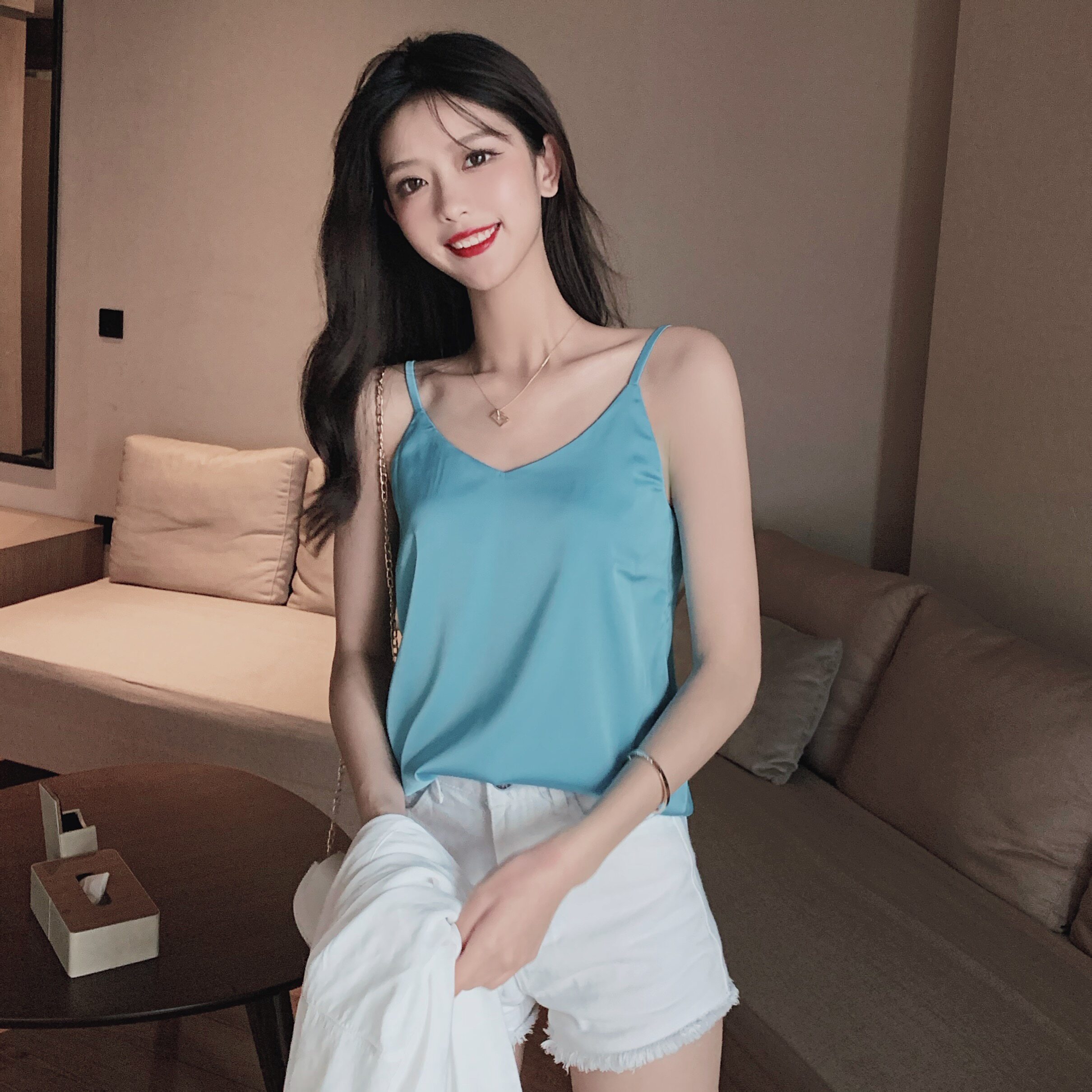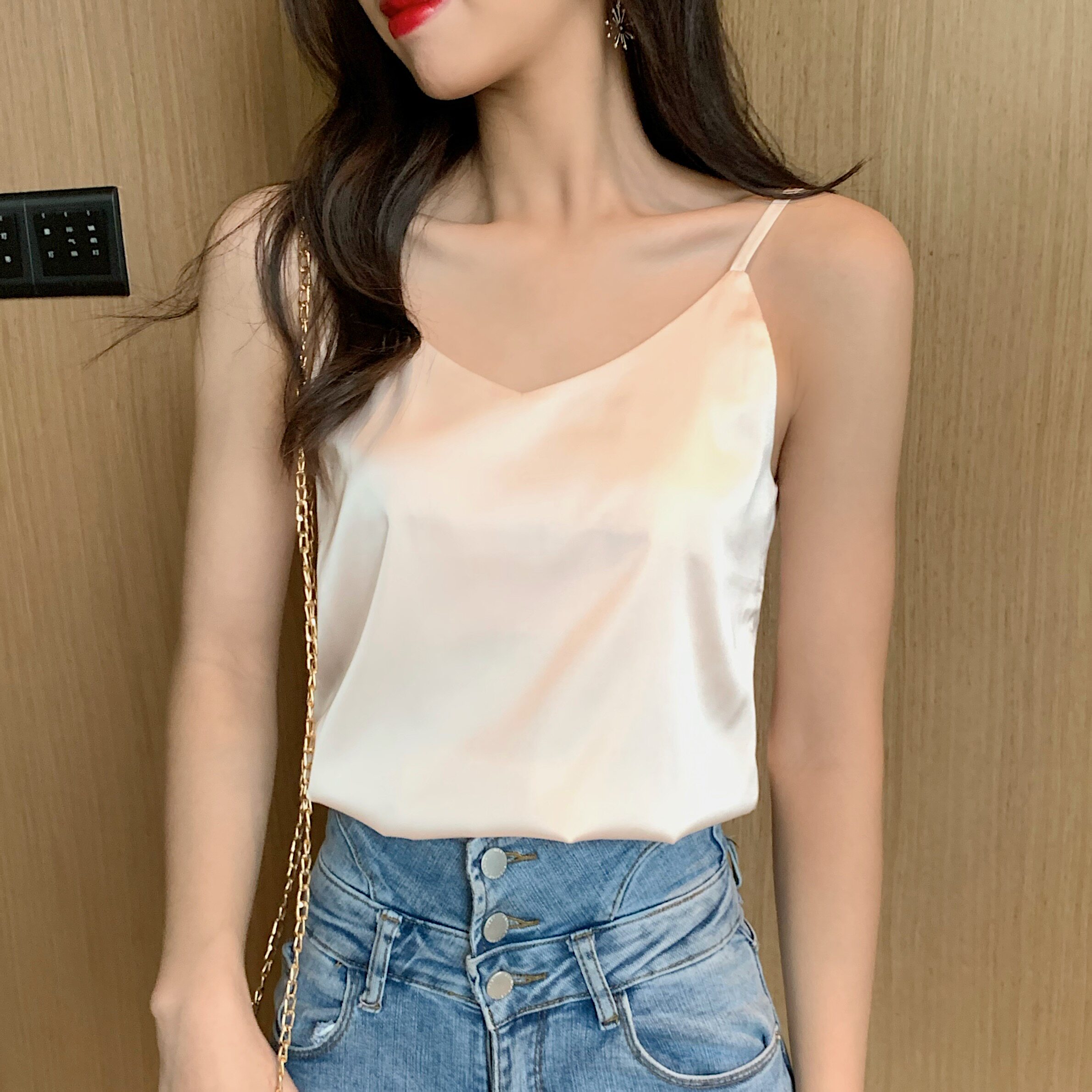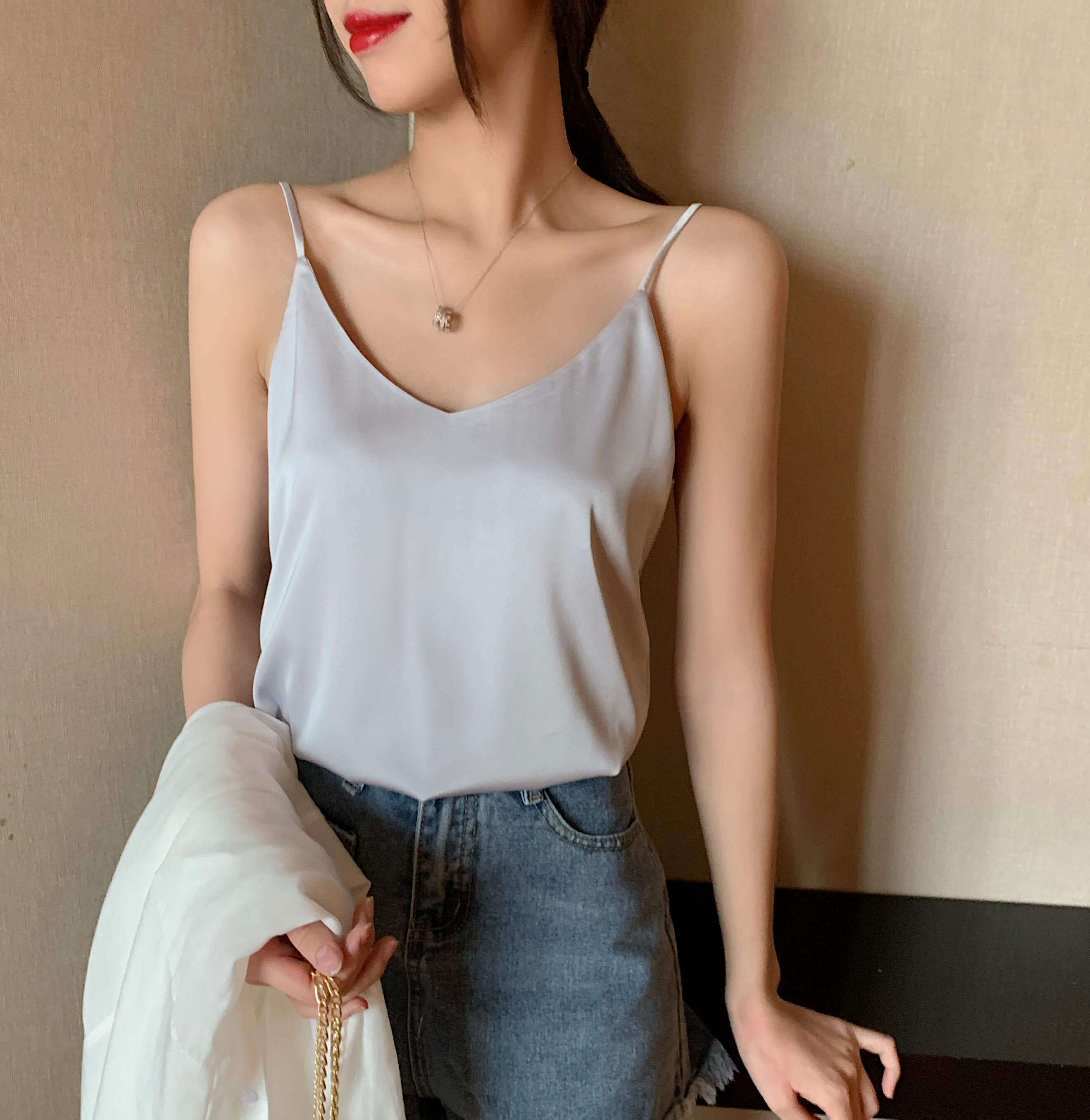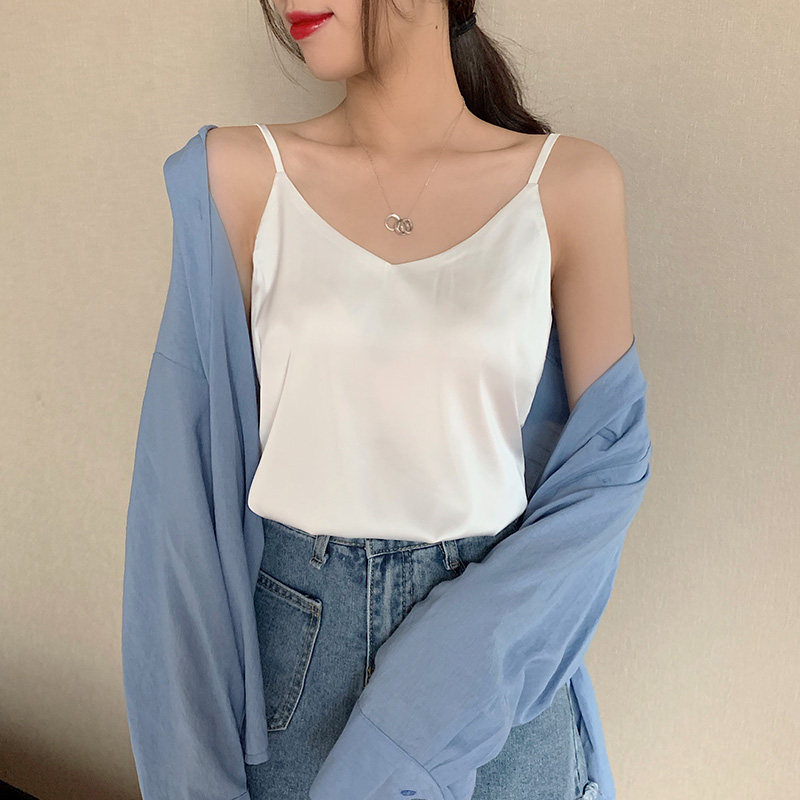 Майка топ, базовый шелковый костюм, популярно в интернете, красивая спина