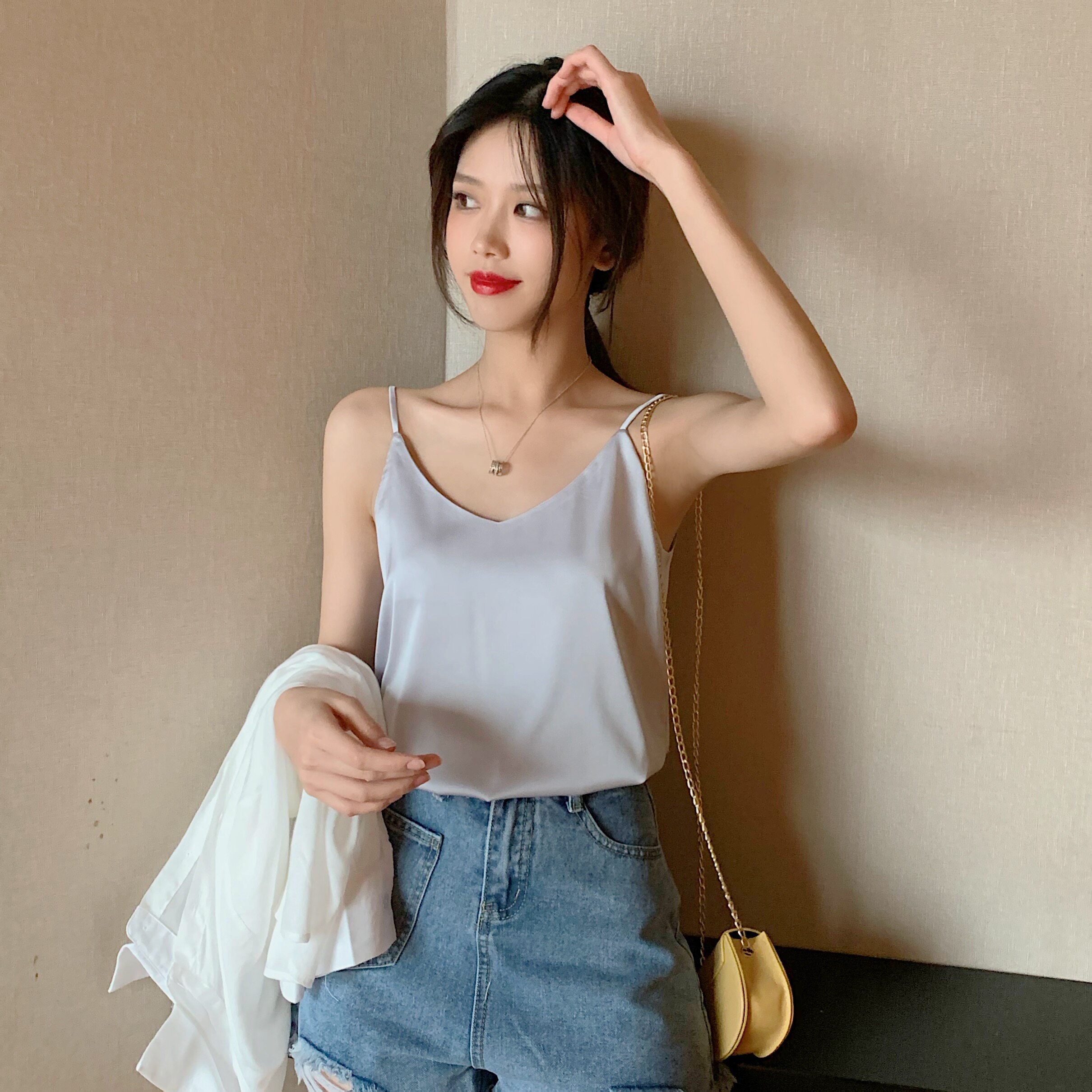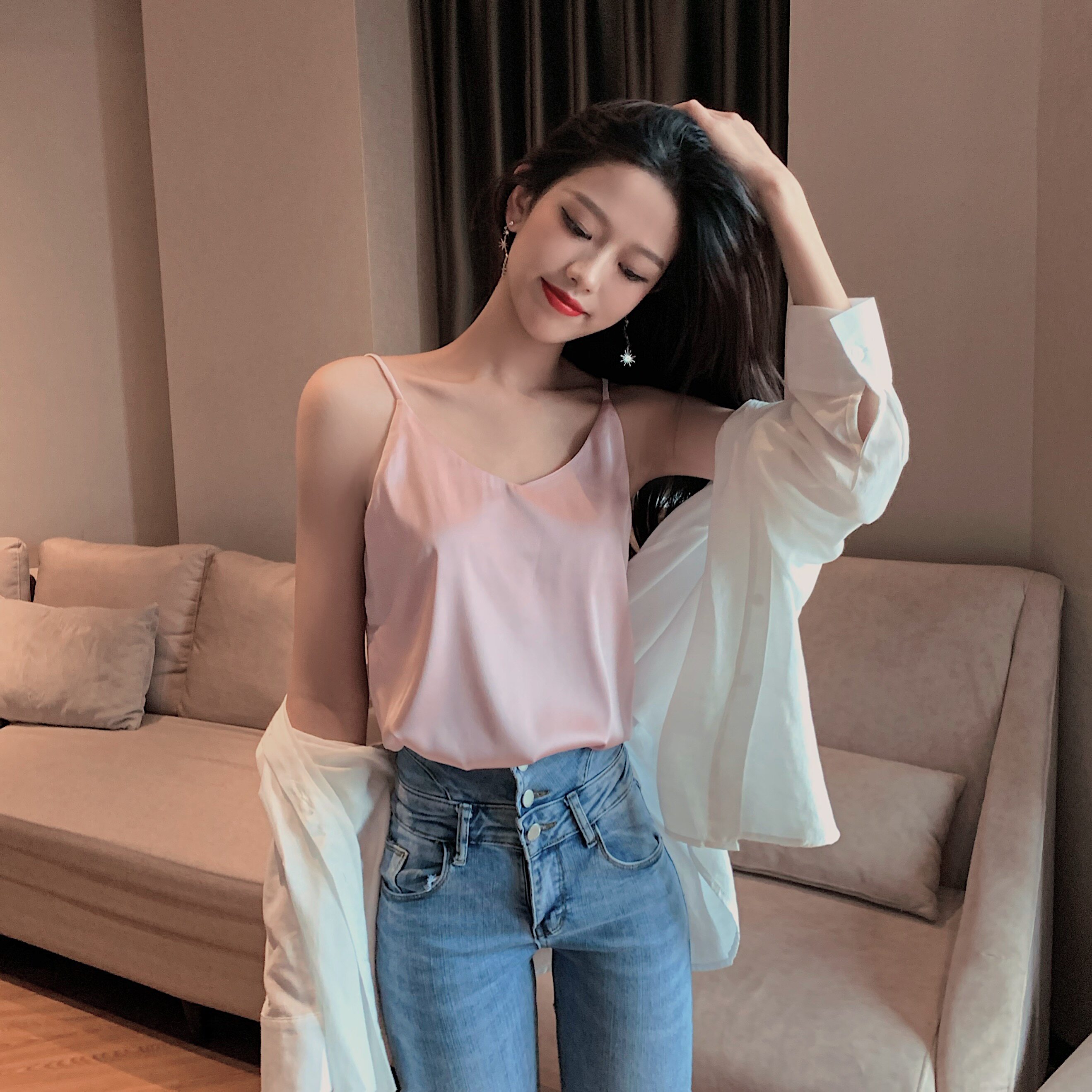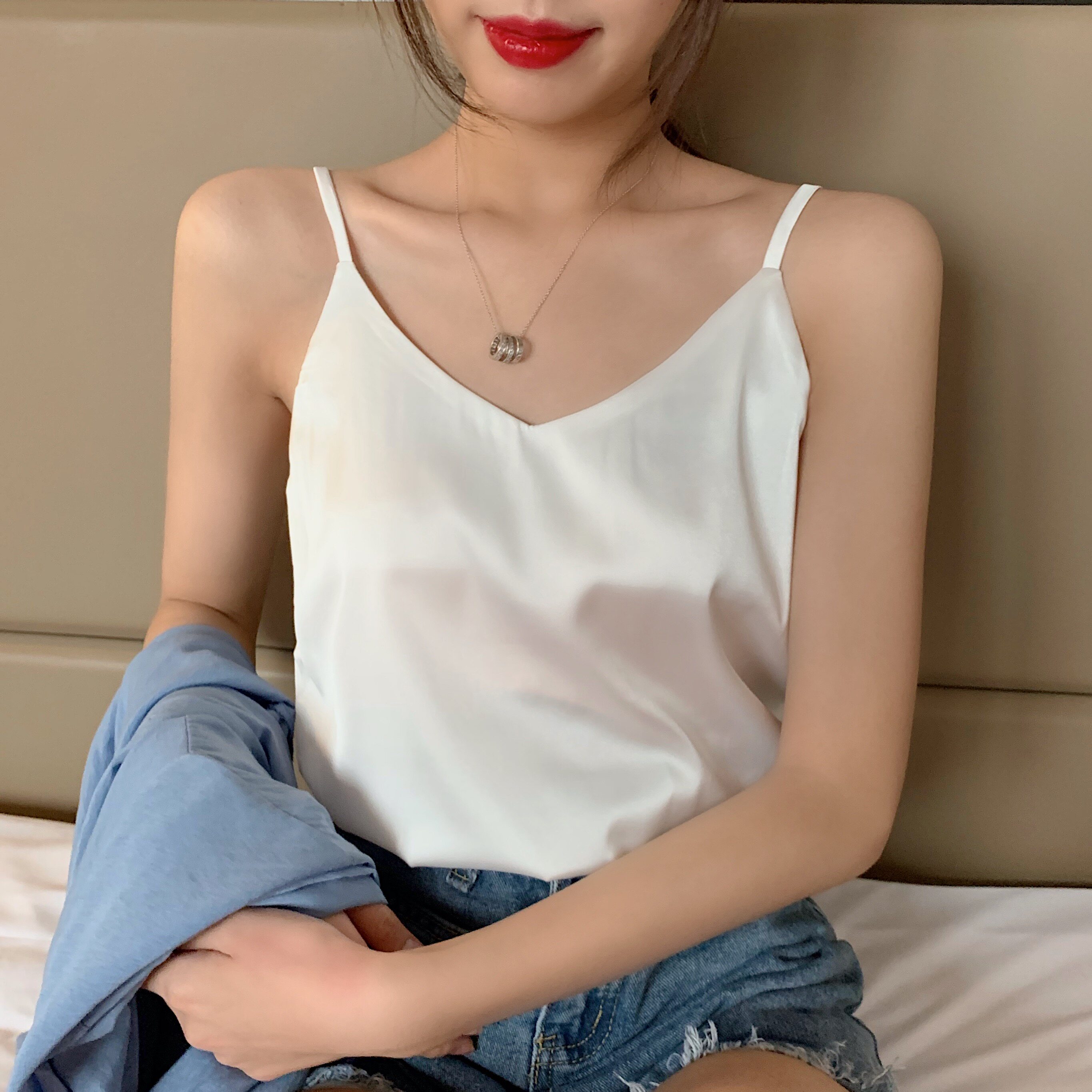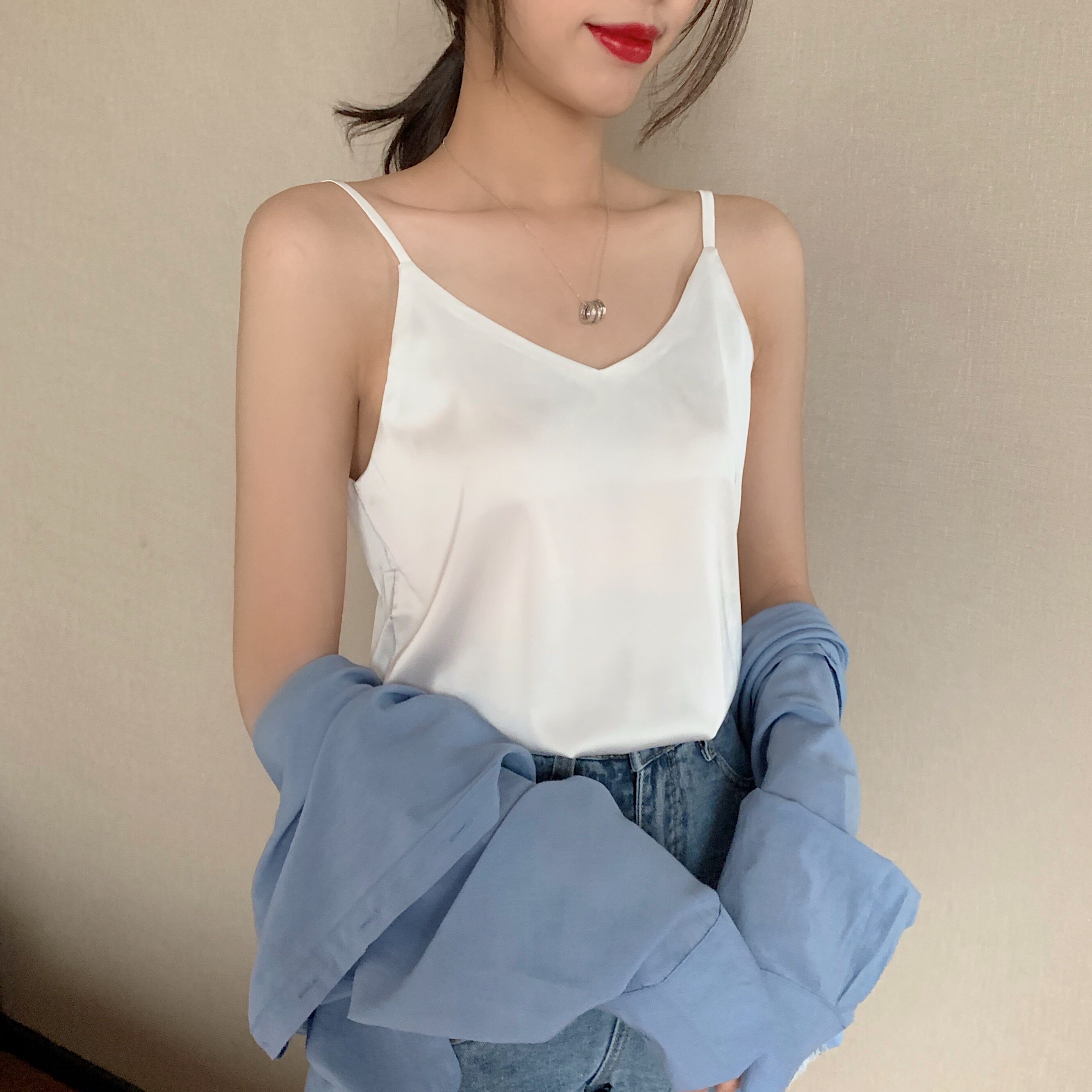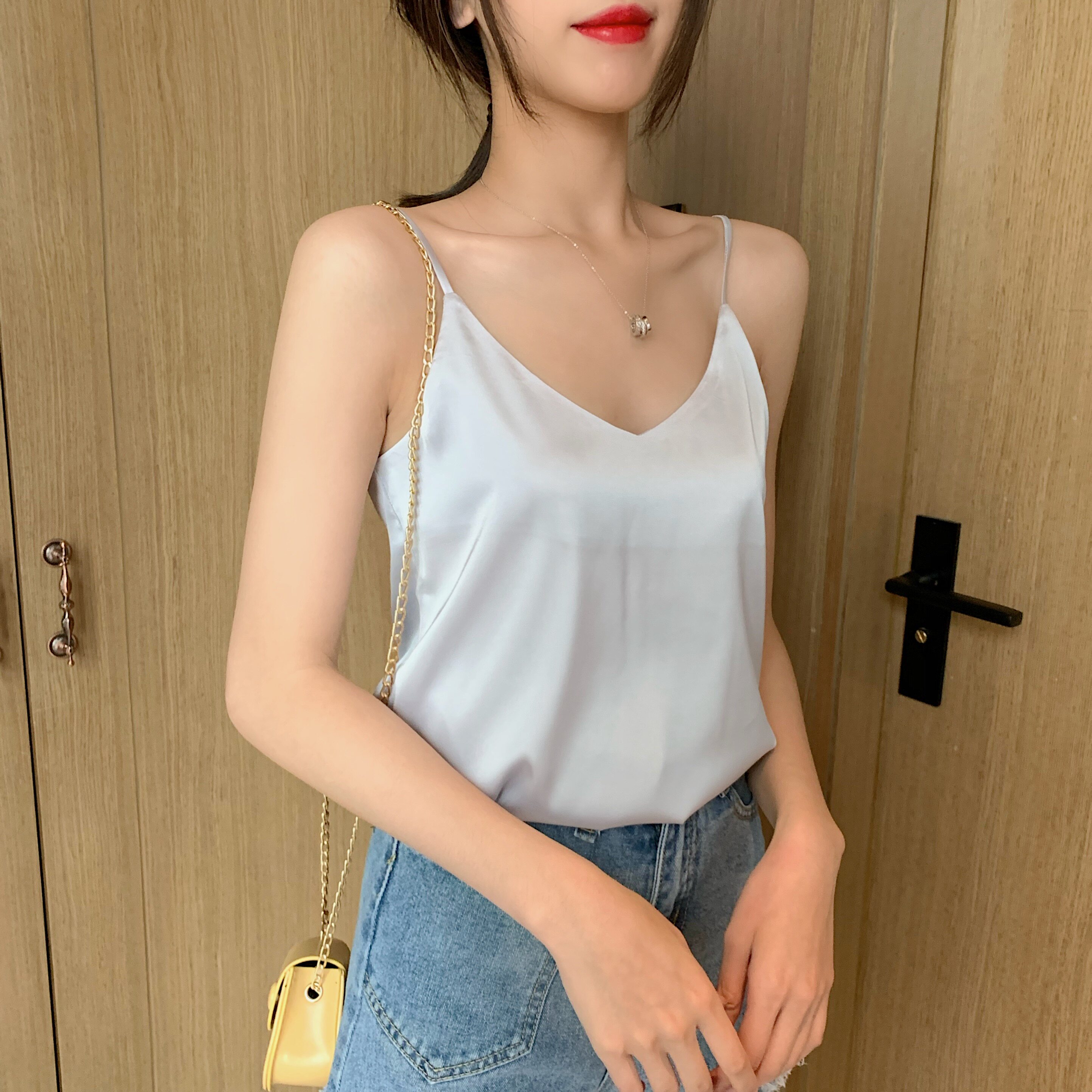 Майка топ, базовый шелковый костюм, популярно в интернете, красивая спина