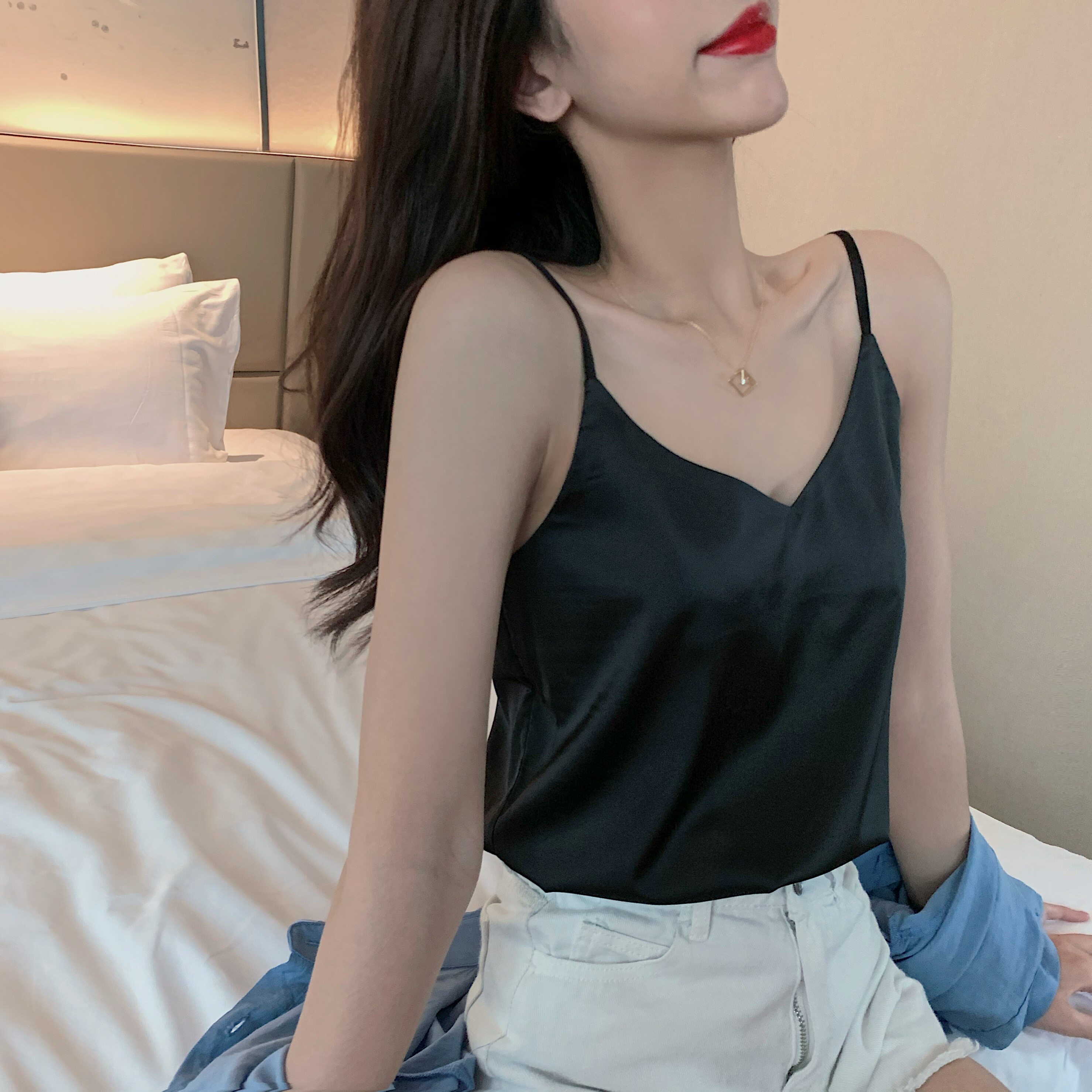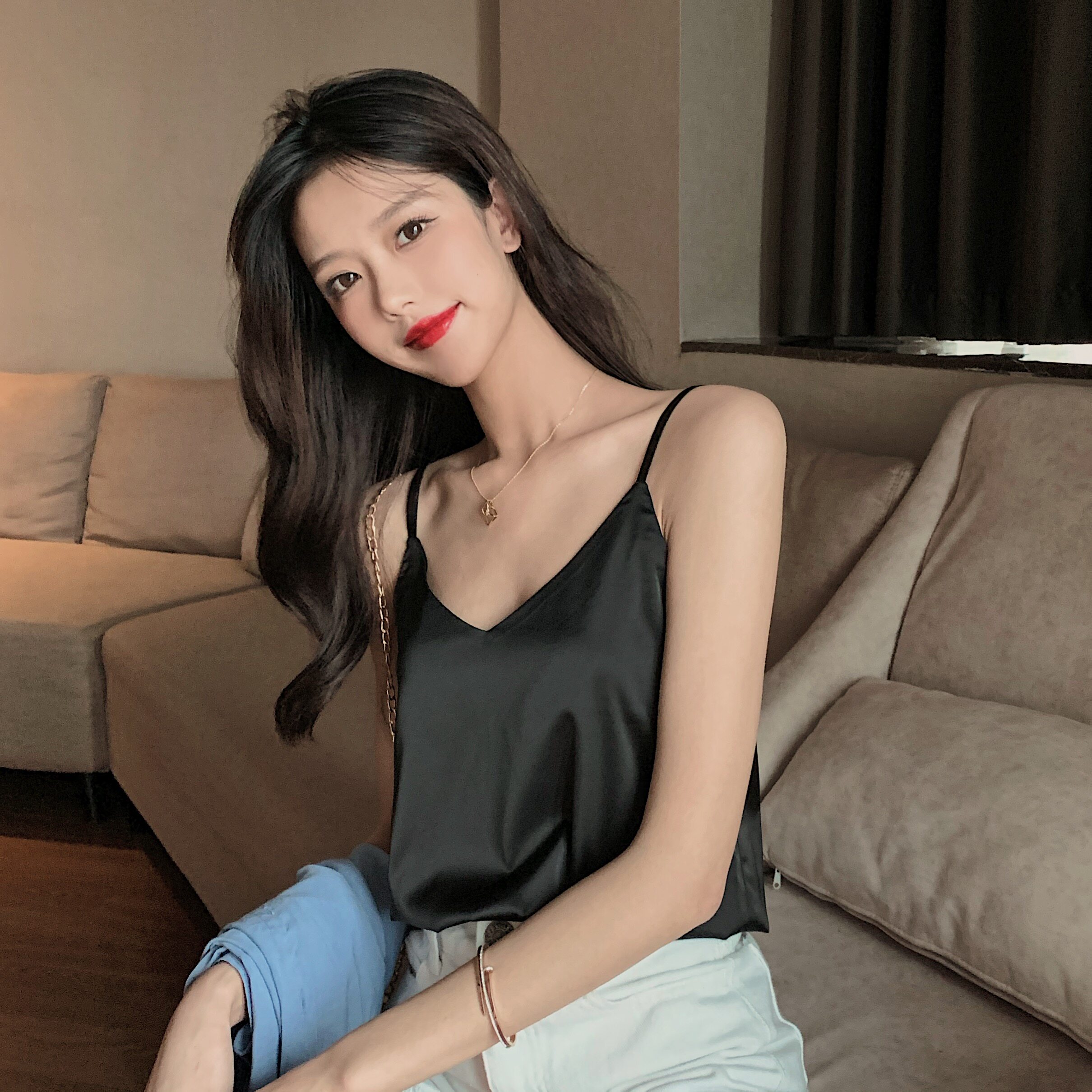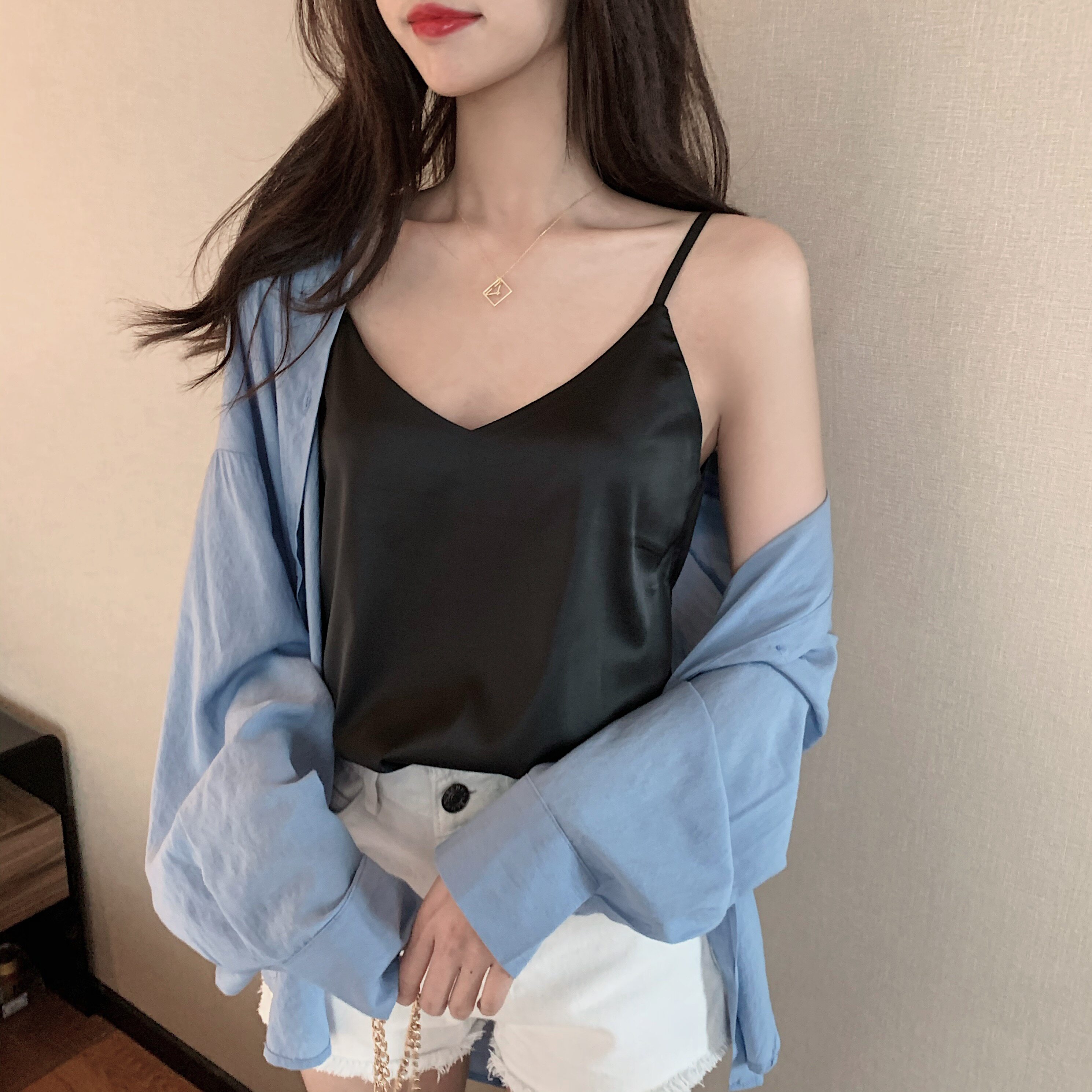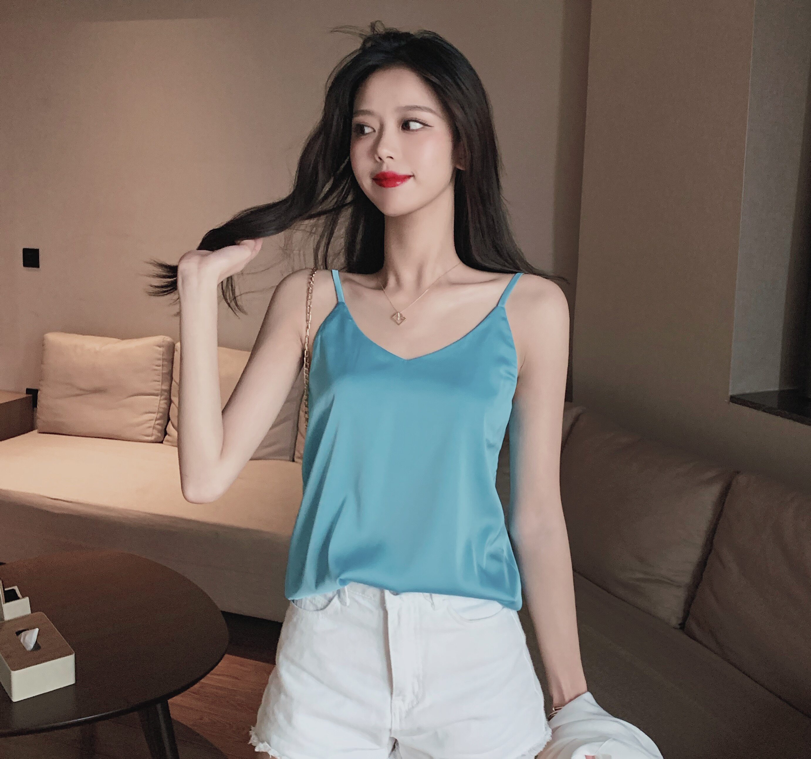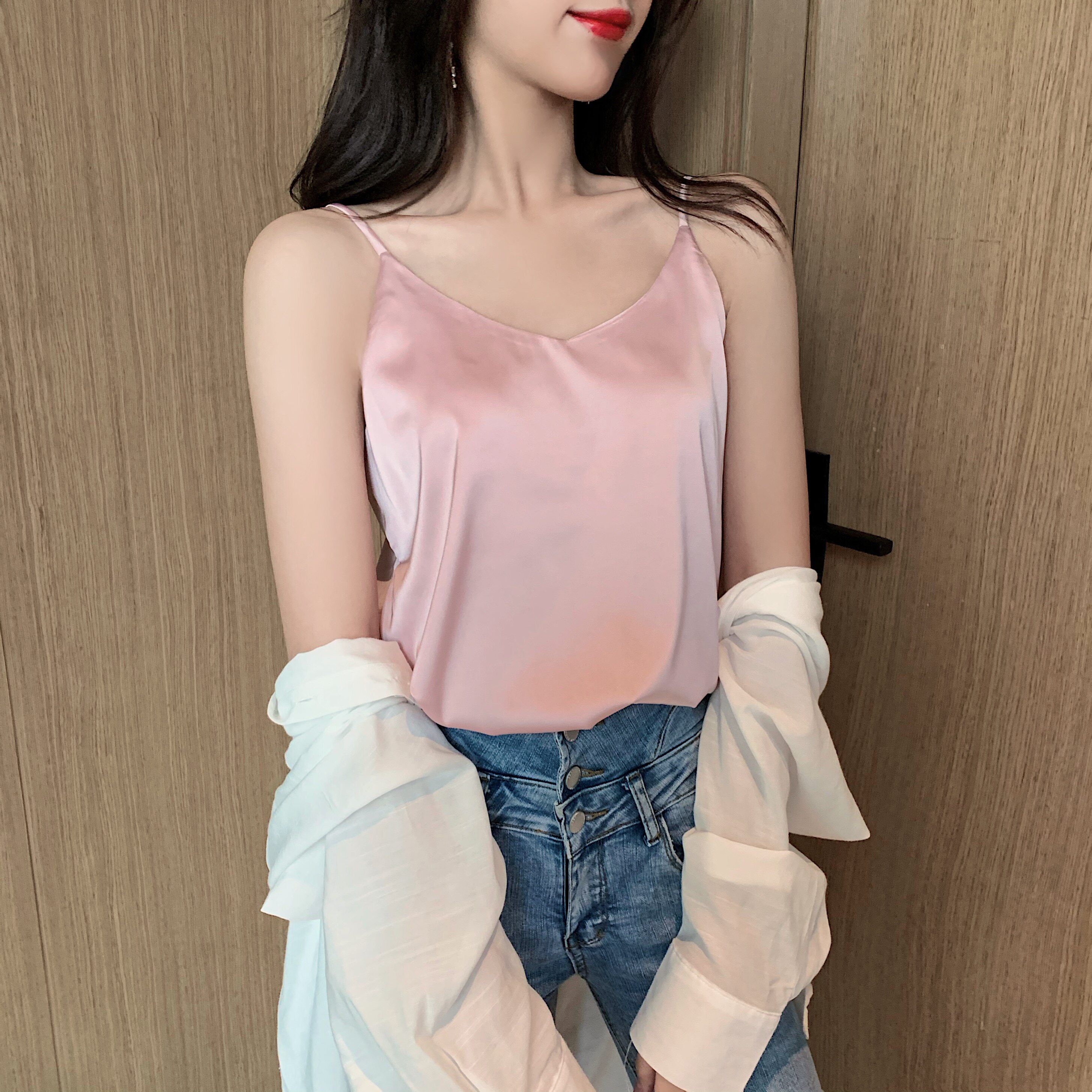 Майка топ, базовый шелковый костюм, популярно в интернете, красивая спина