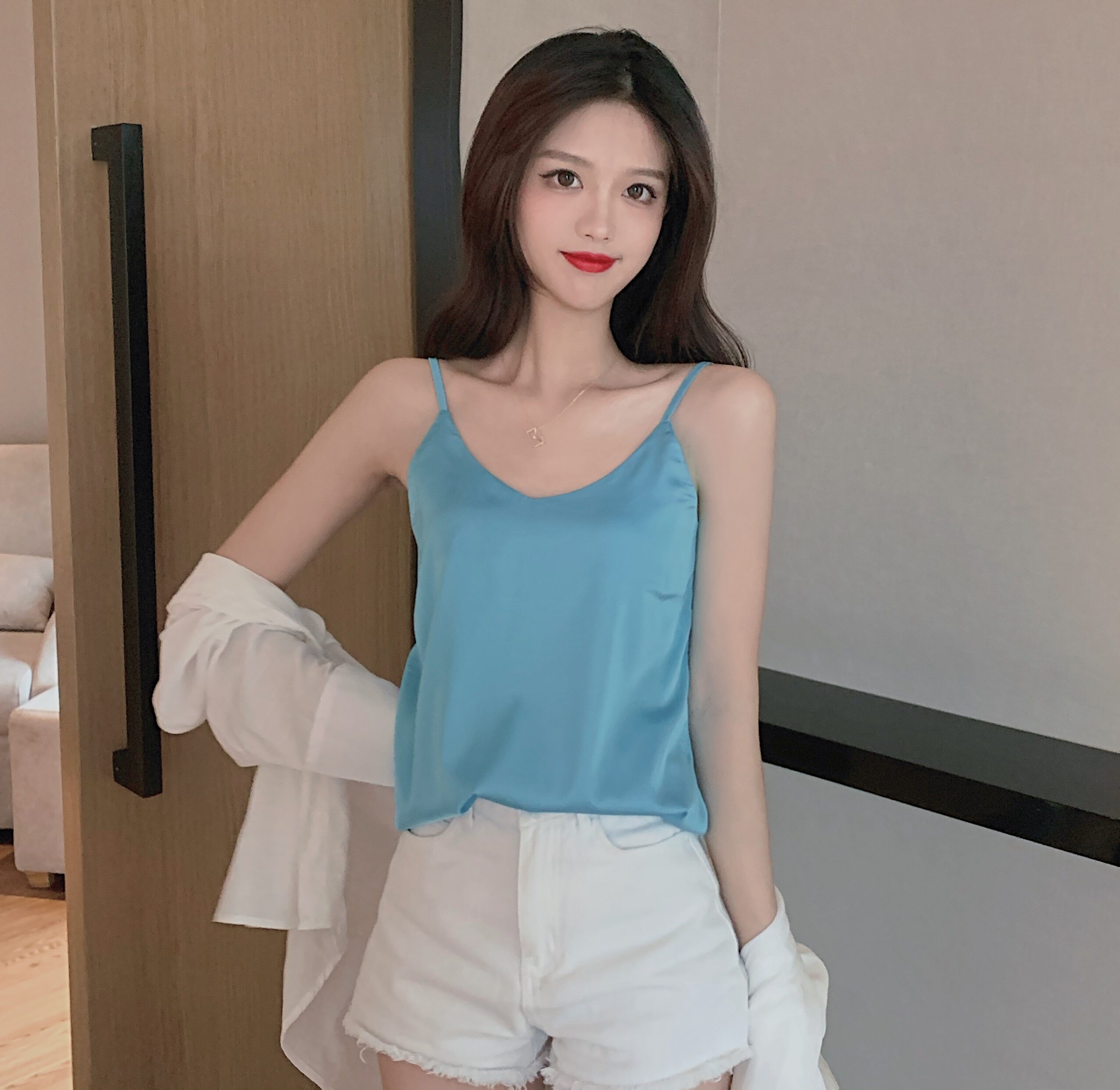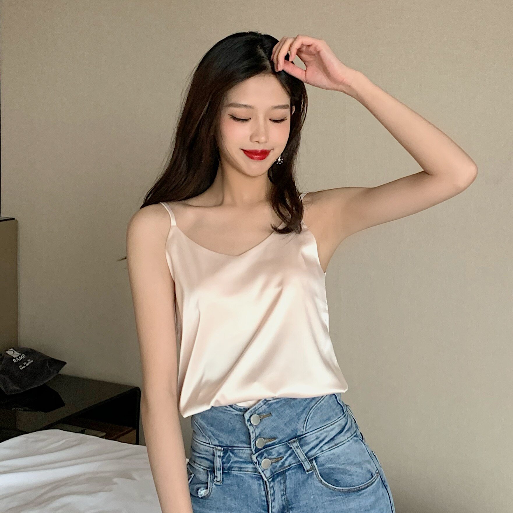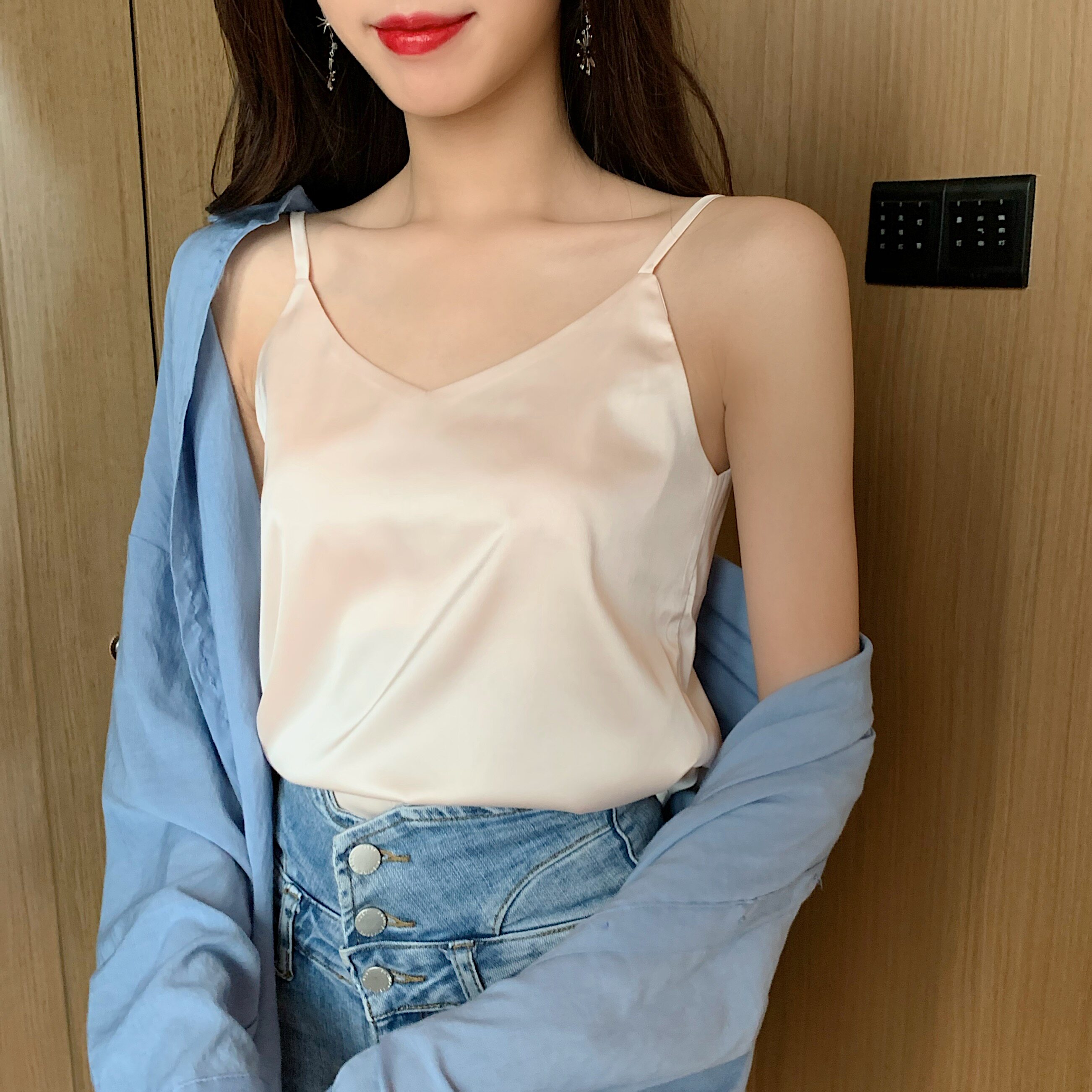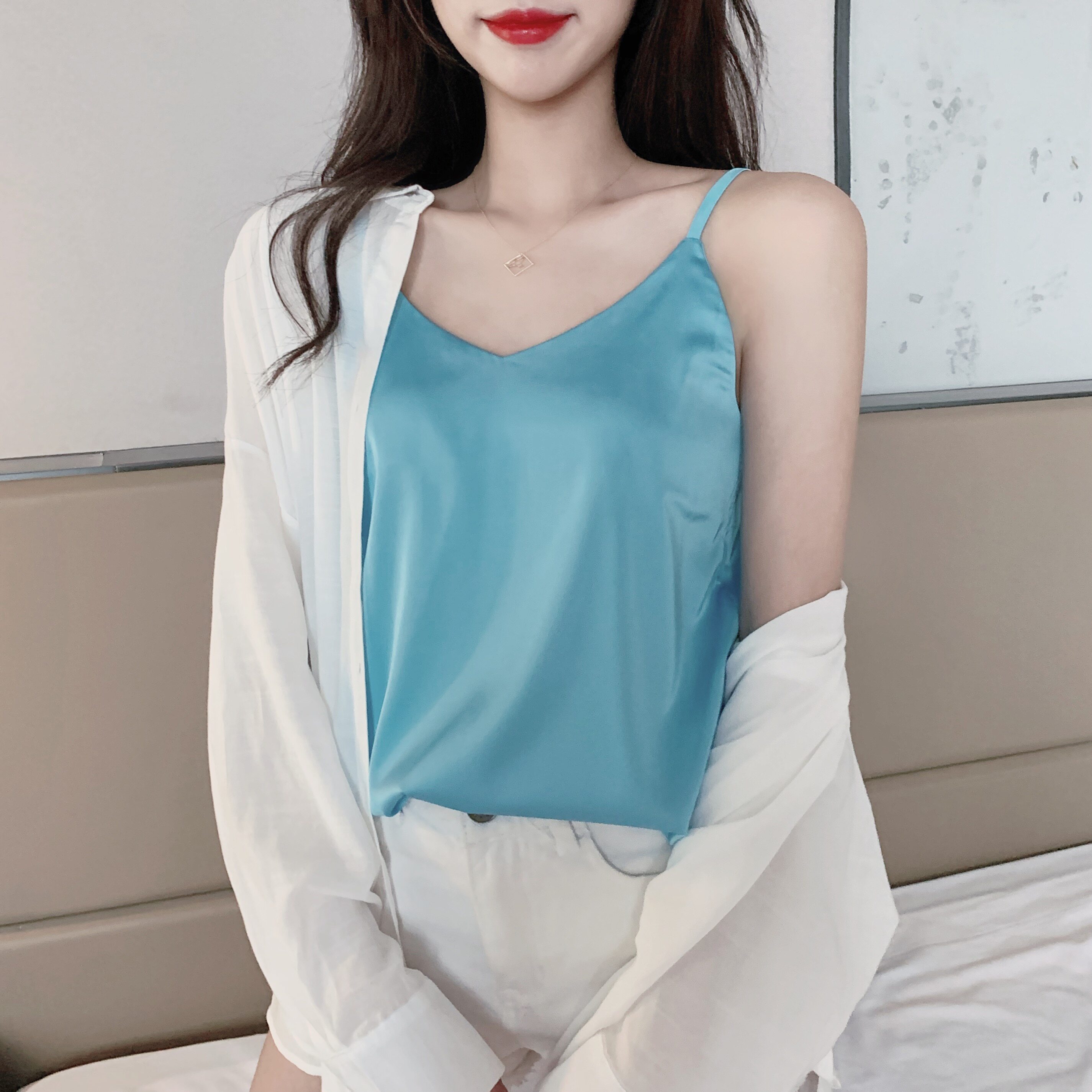 Майка топ, базовый шелковый костюм, популярно в интернете, красивая спина