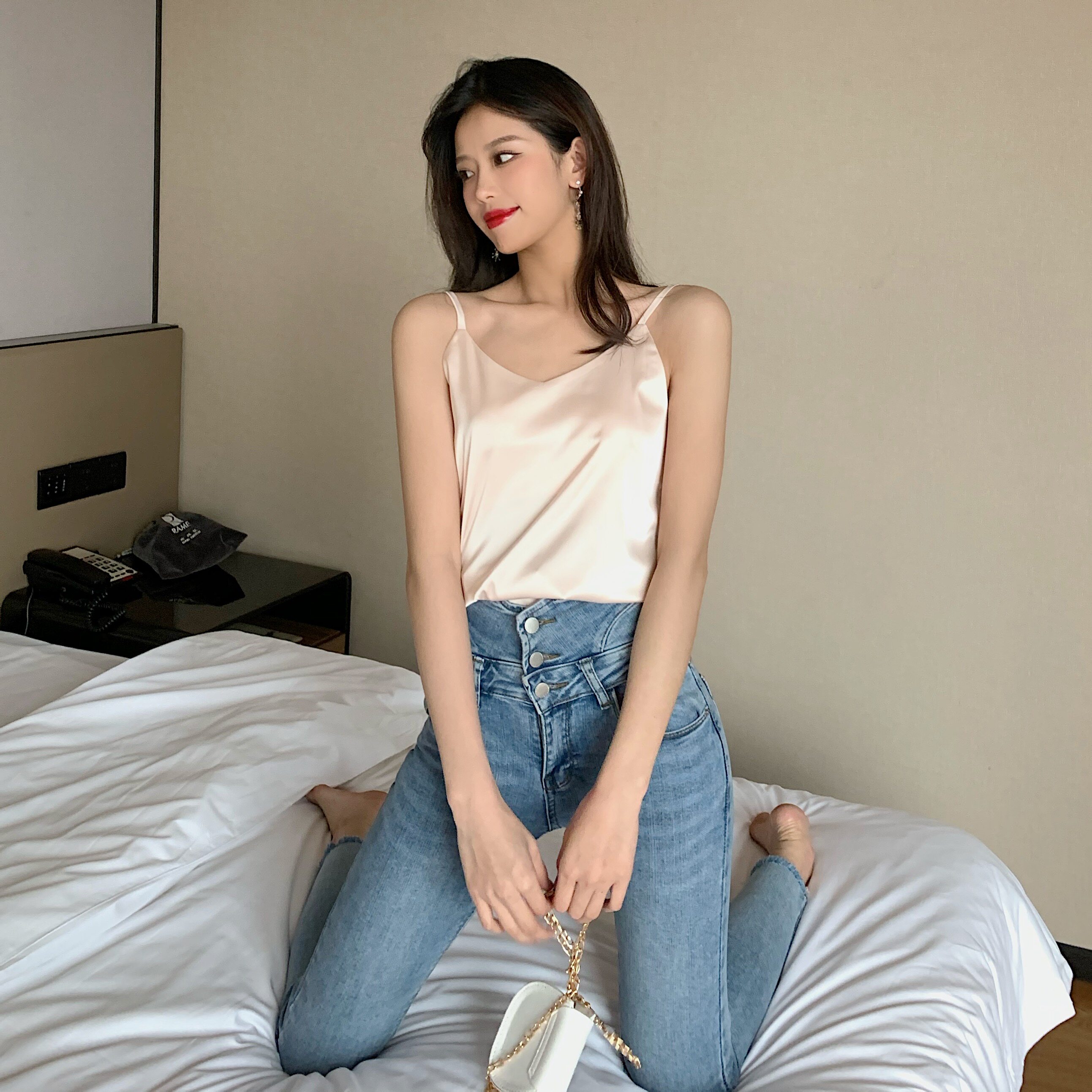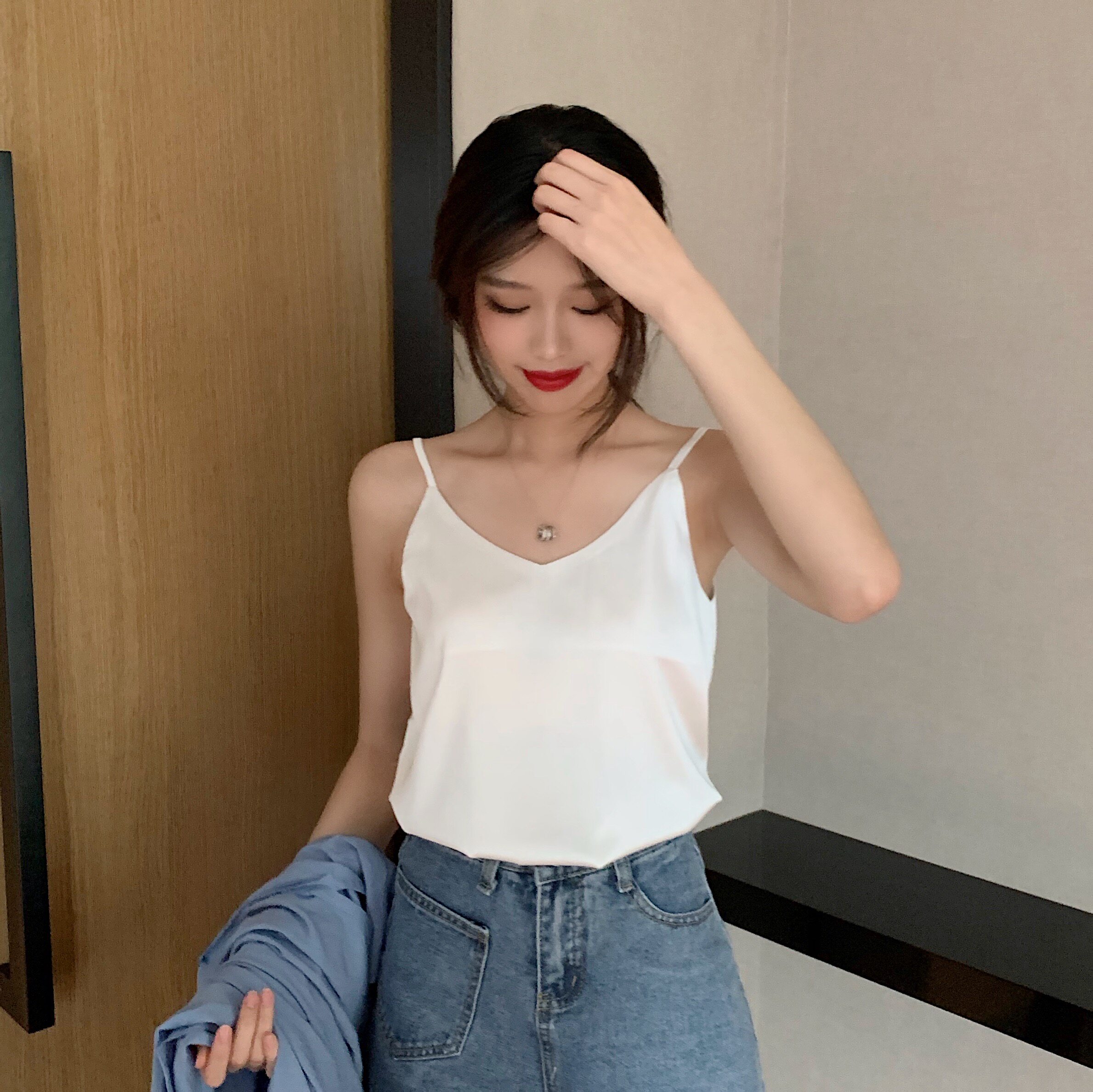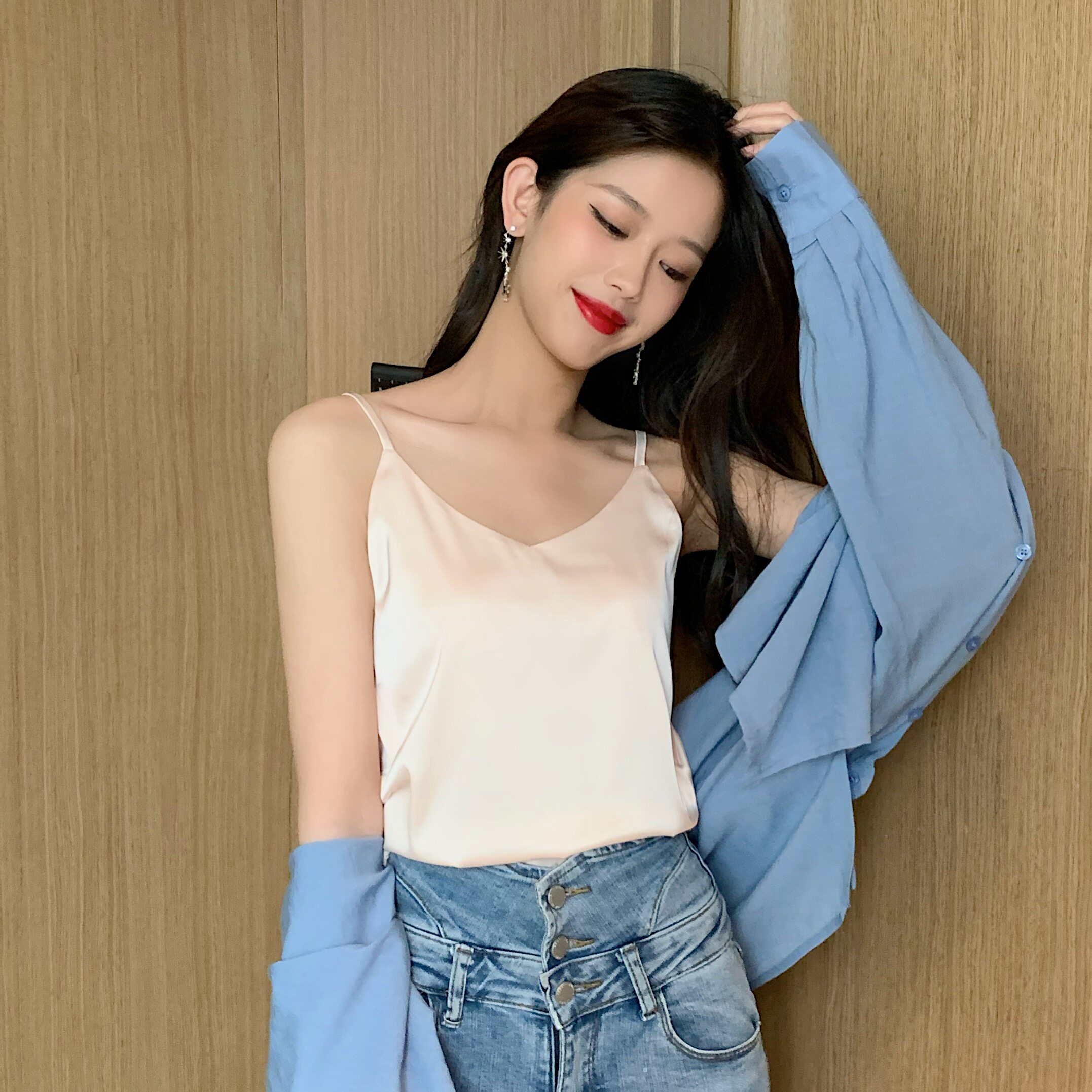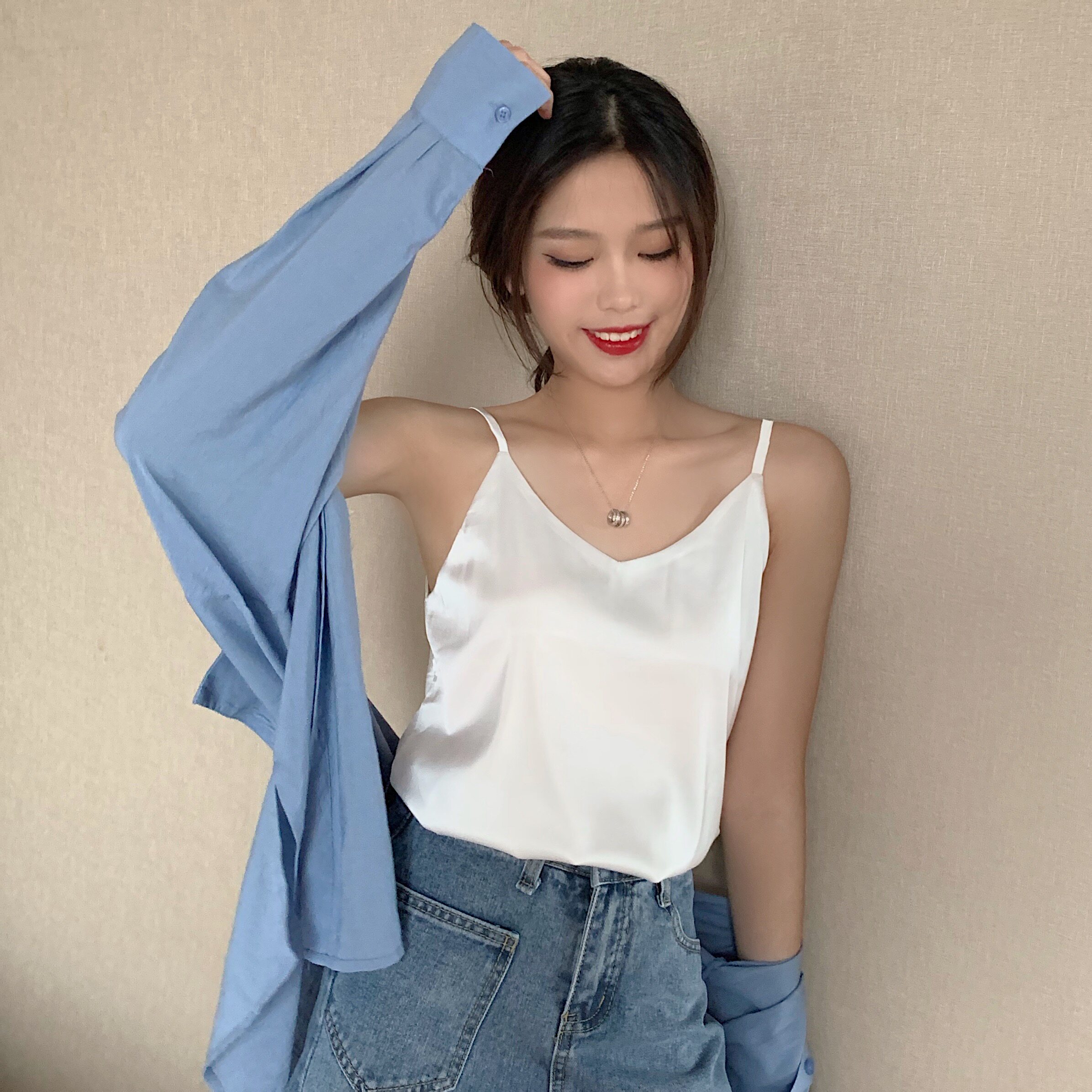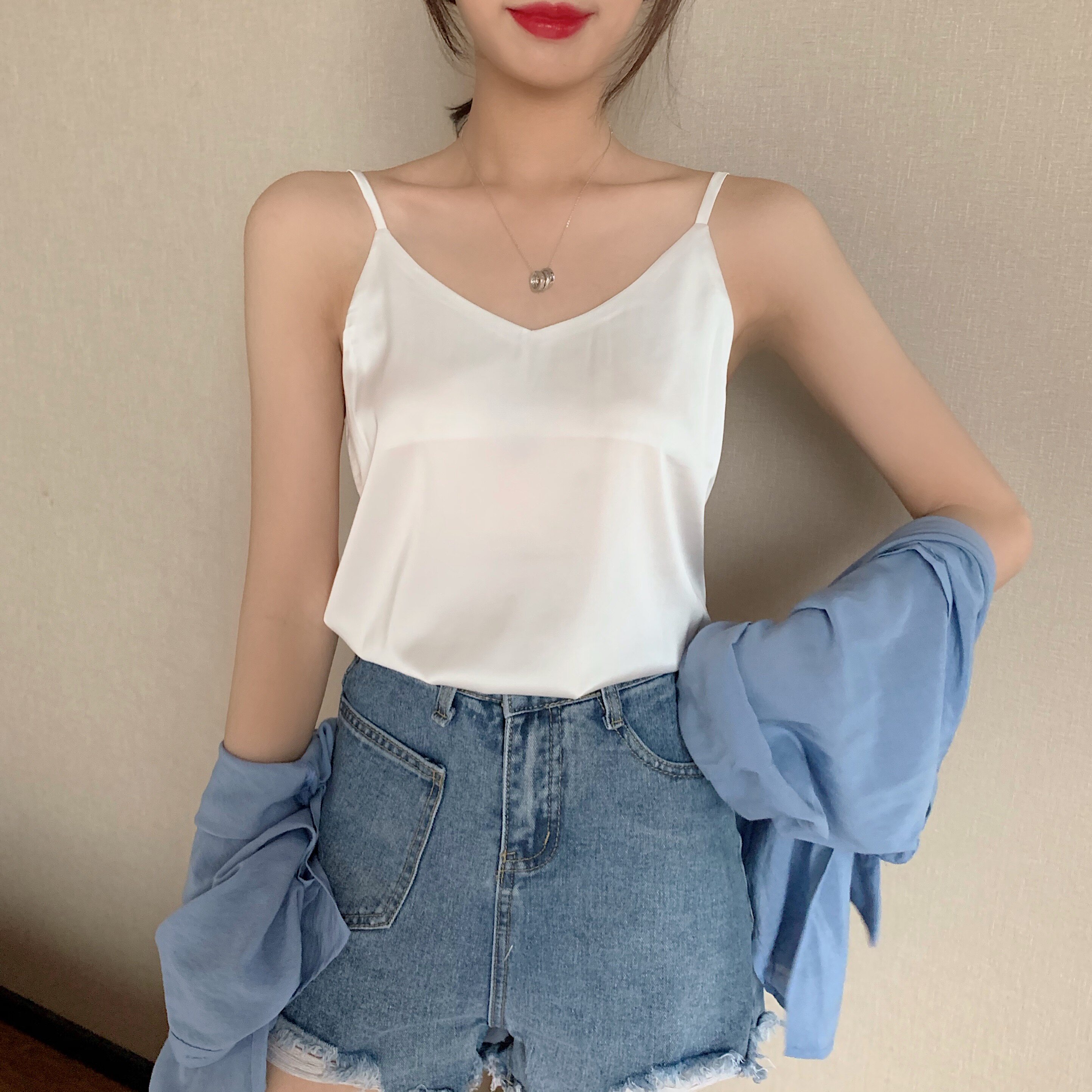 Майка топ, базовый шелковый костюм, популярно в интернете, красивая спина