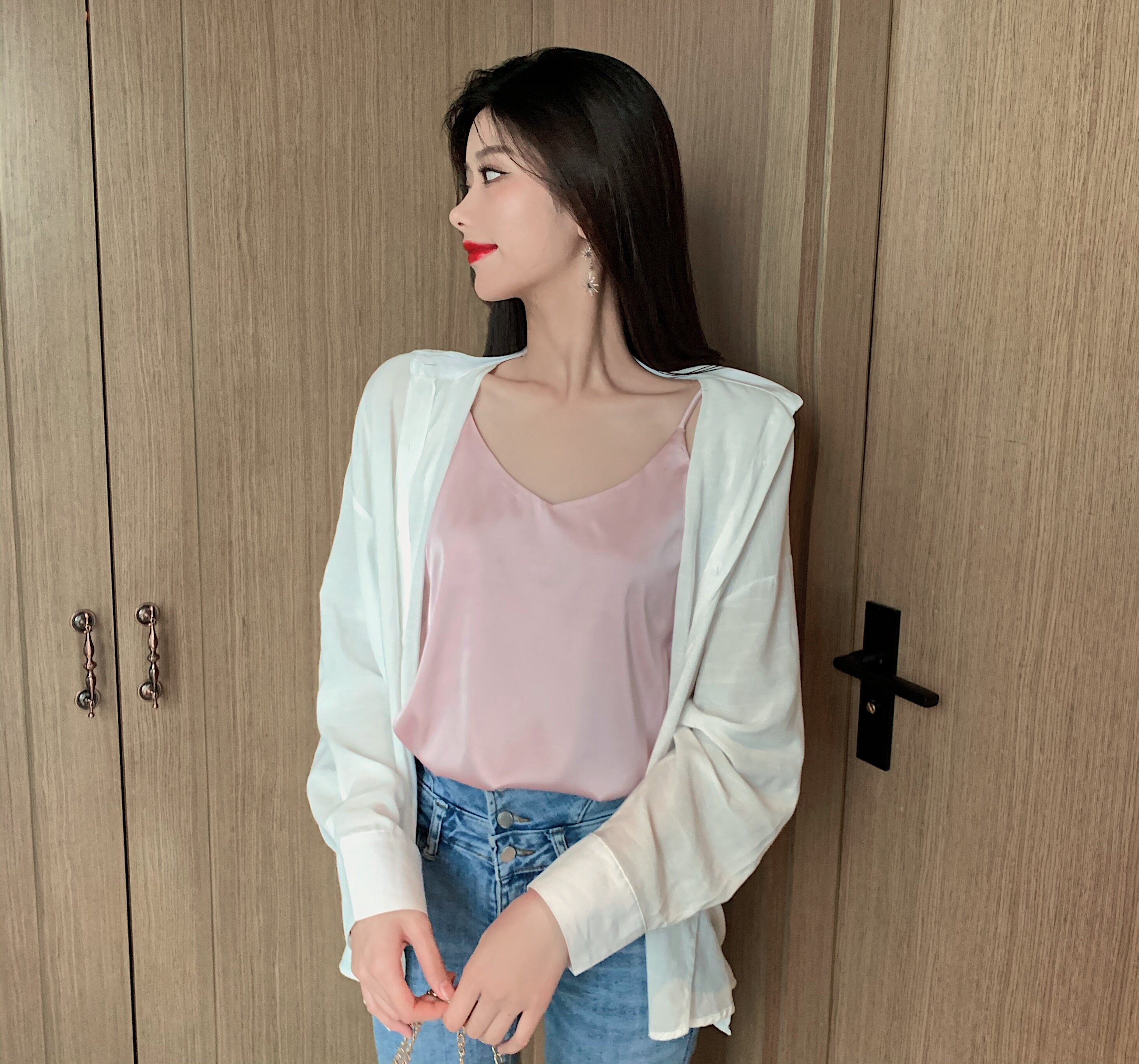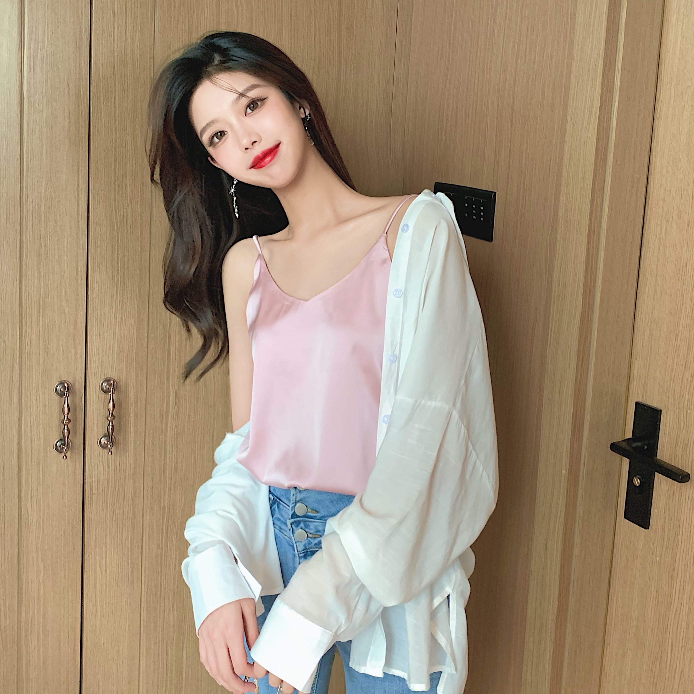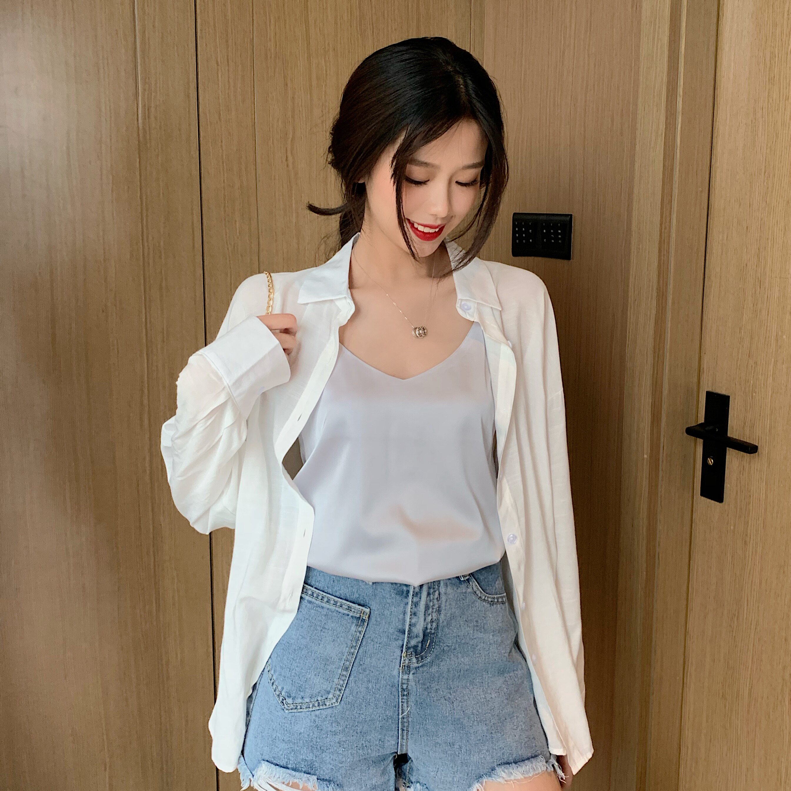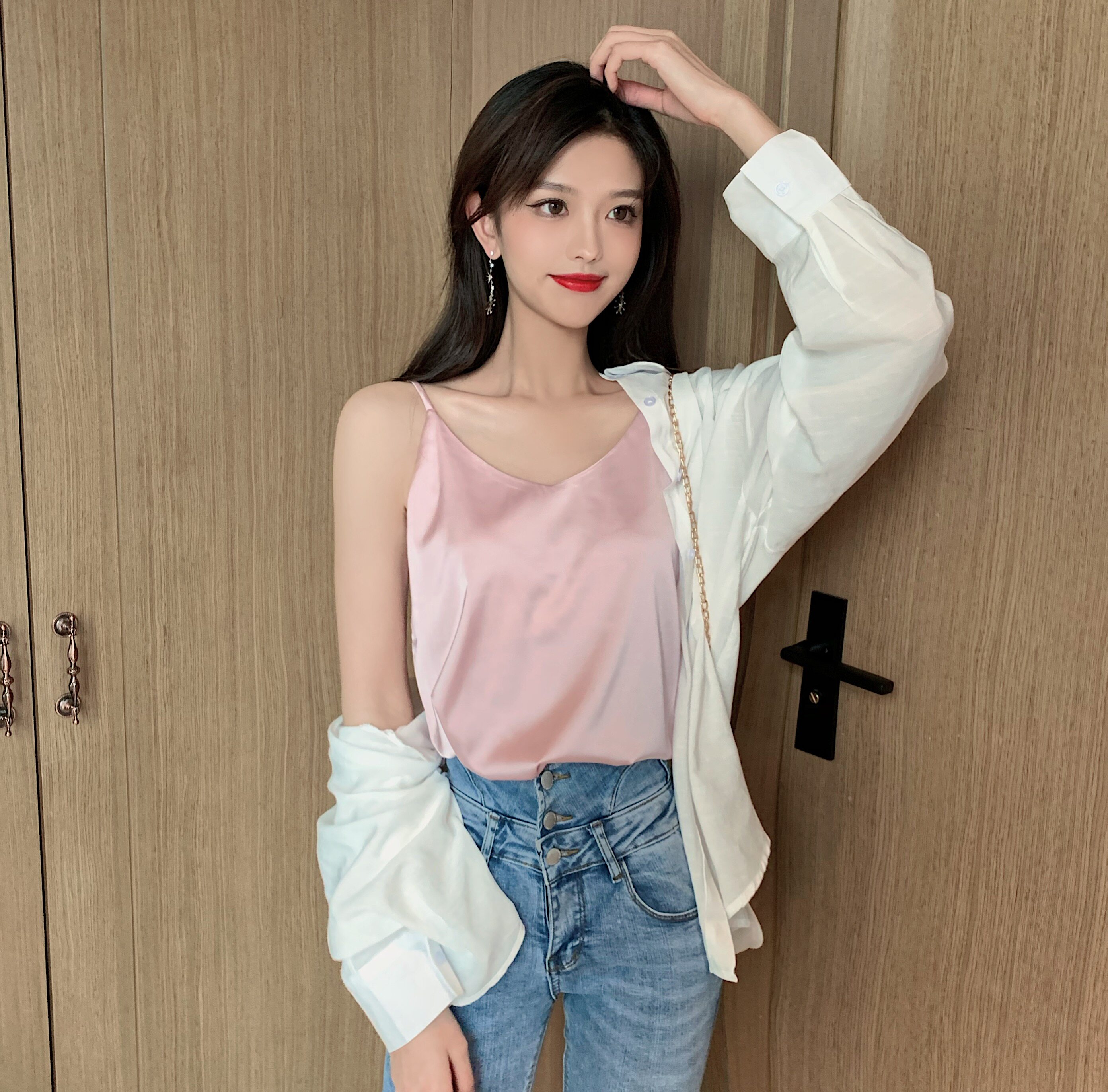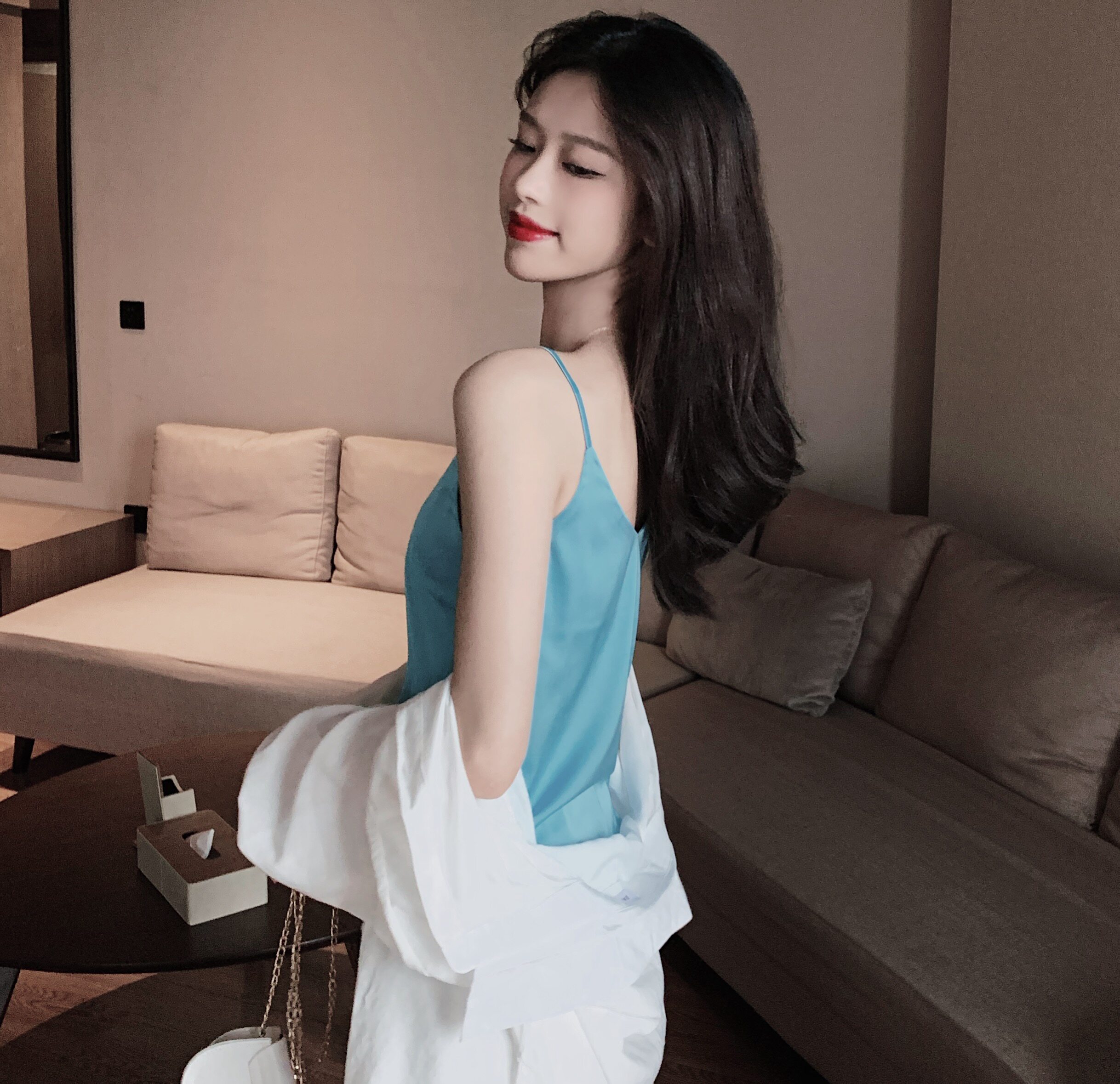 Майка топ, базовый шелковый костюм, популярно в интернете, красивая спина