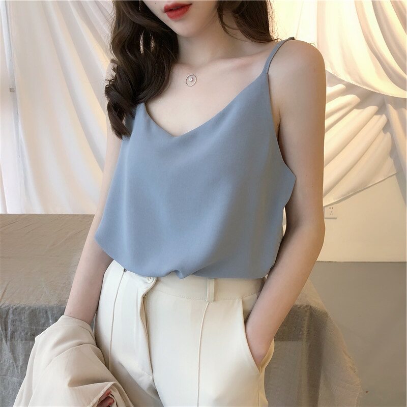 Майка топ, сексуальный базовый шифоновый костюм, французский стиль
